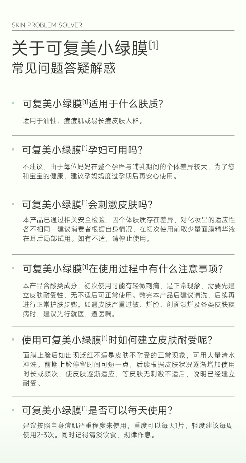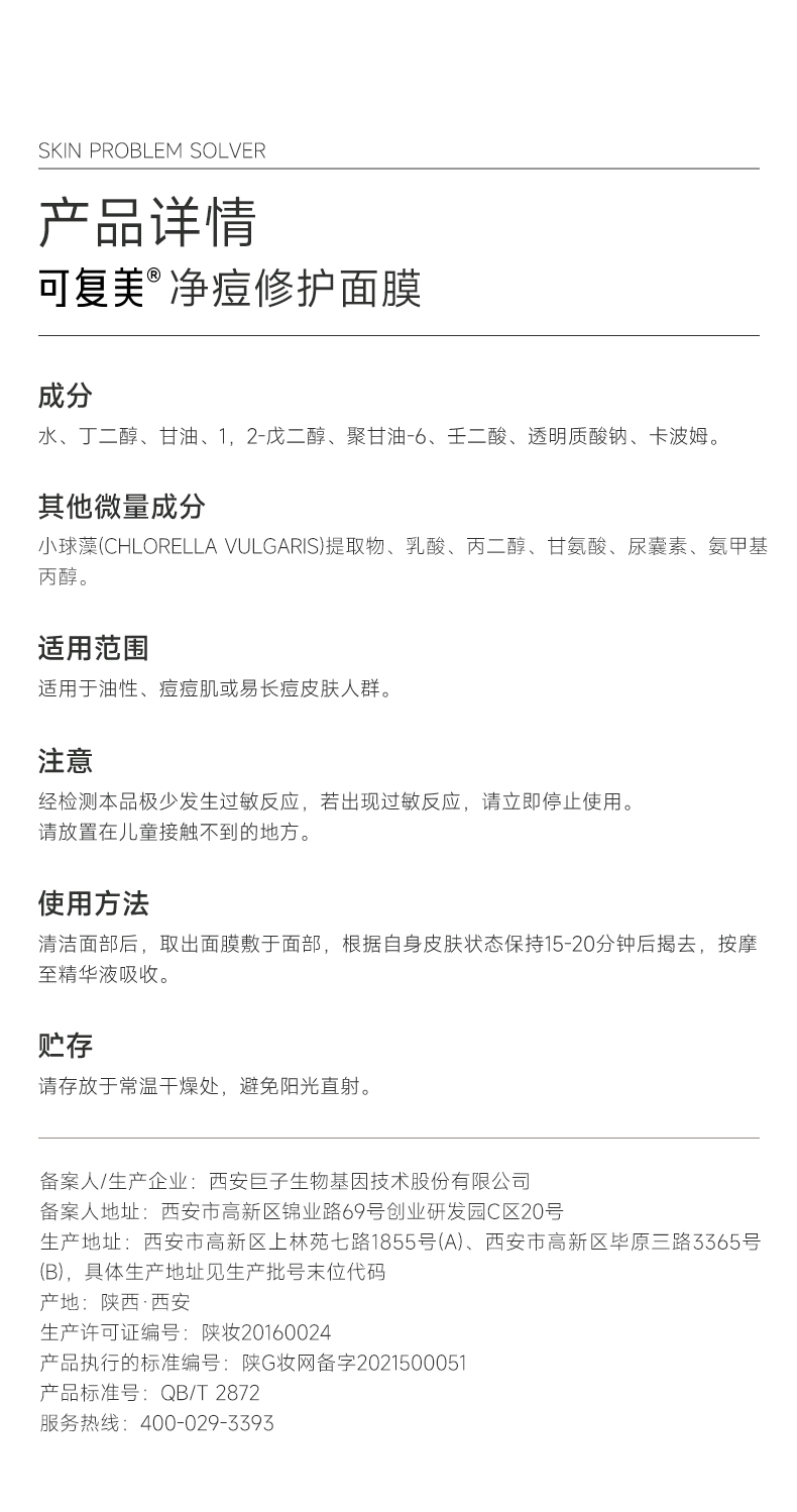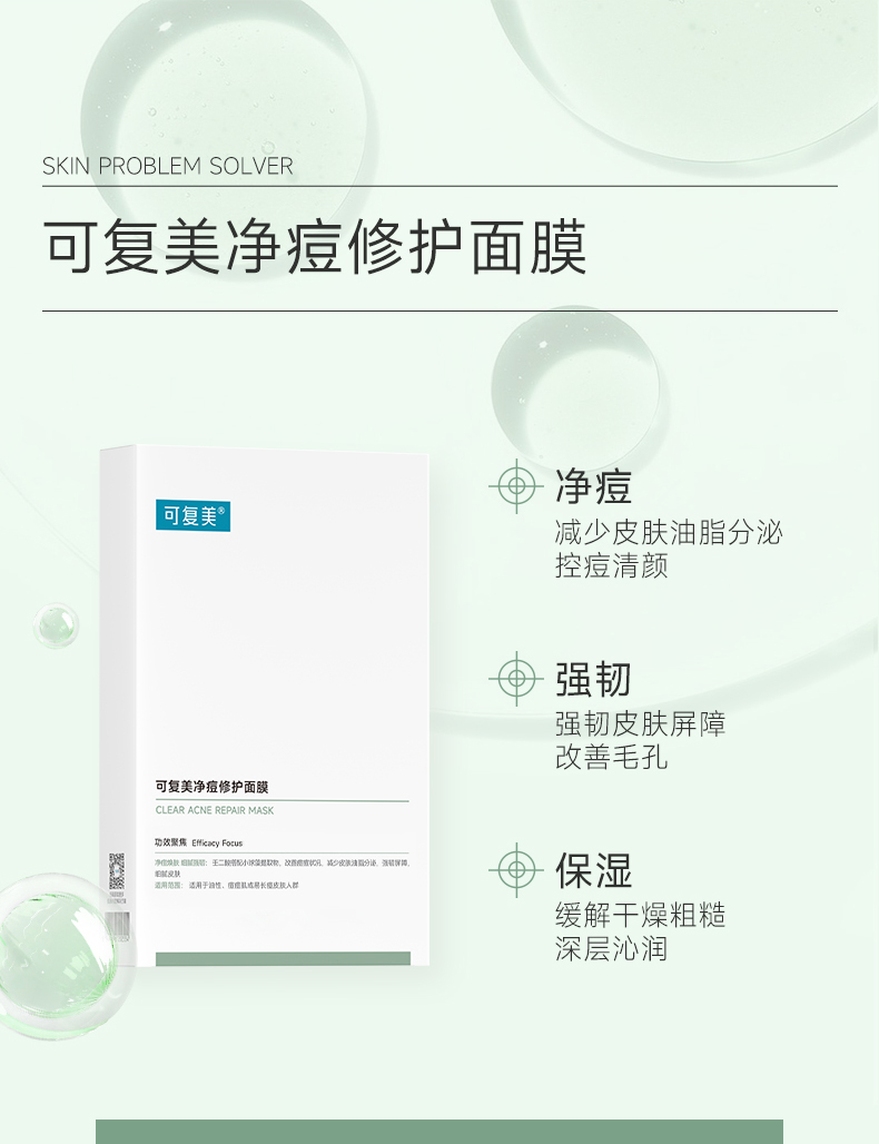 可复美净痘小绿膜面膜修护皮肤屏障保湿控油润肤净痘面膜