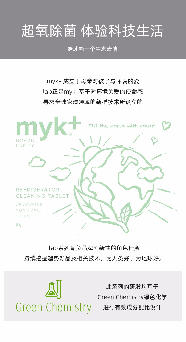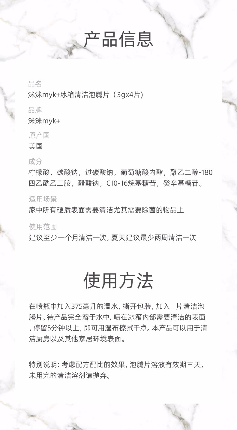 洣洣myk+冰箱多功能清洁剂泡腾片超氧除清洗剂除异味臭味家用 3gx4【洣洣】