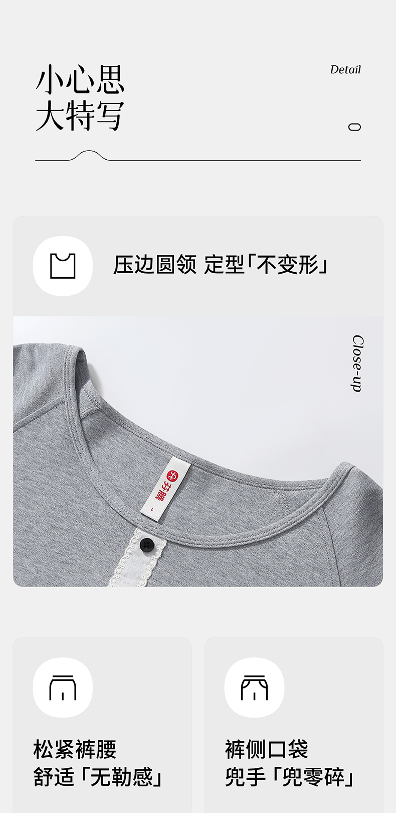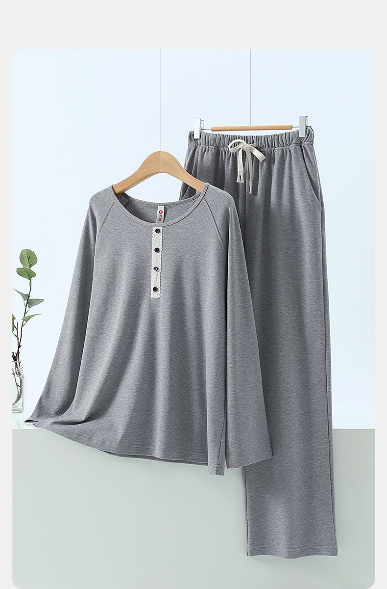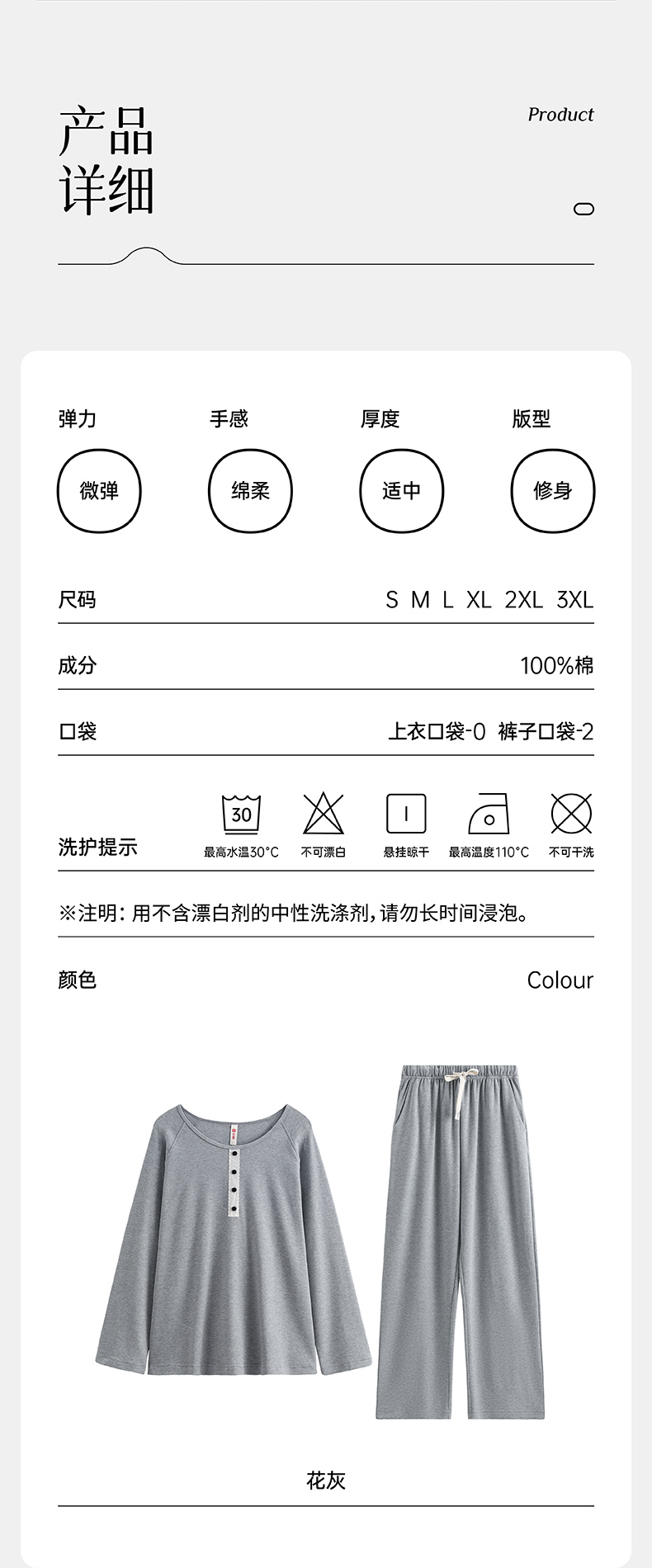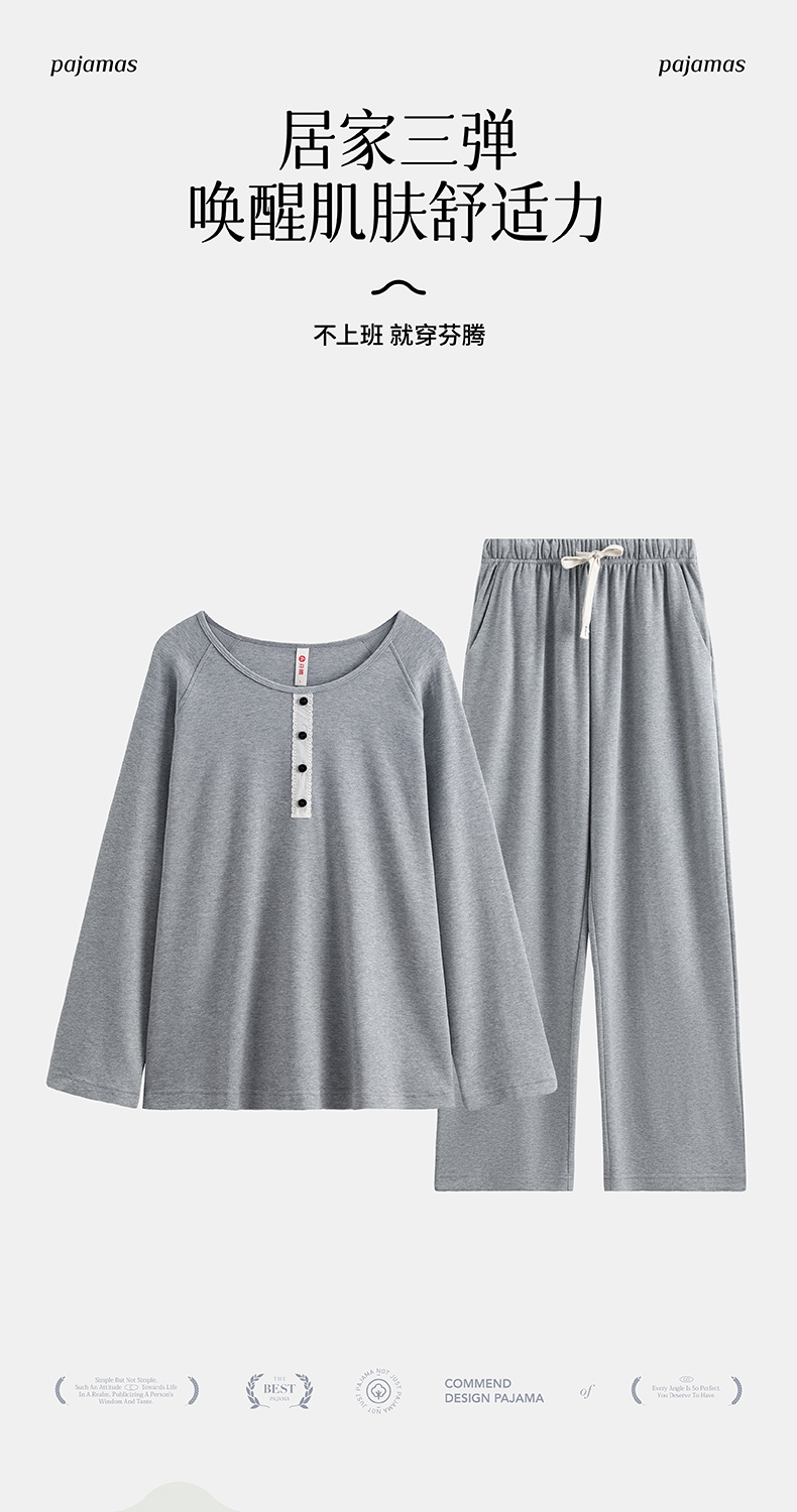 芬腾春秋季长袖套头圆领可外穿女款100%全棉家居服套装 A-5195 芬腾