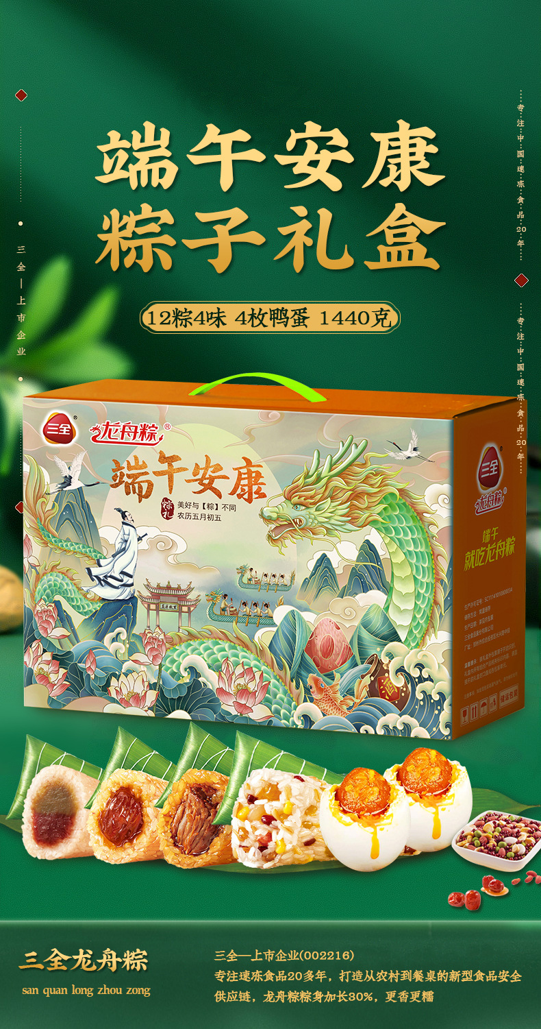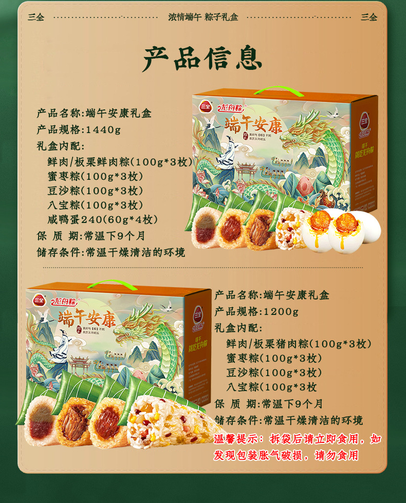 【端午佳节,享受美食盛宴~】三全礼盒装肉粽1200g 蜜枣粽子 正宗嘉兴风味早餐 真空包装 端午礼盒