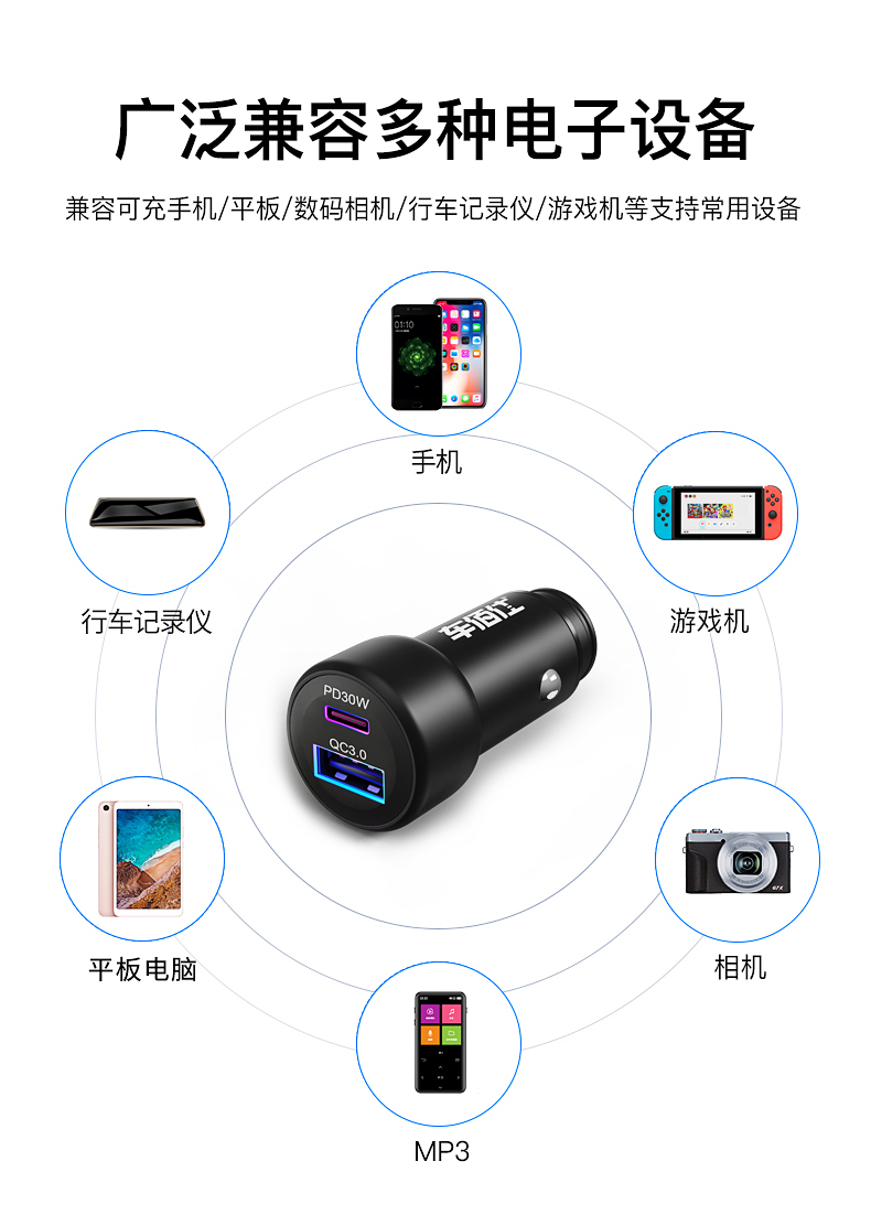 车载快充充电器一拖三usb闪充大功率车充汽车点烟器转换插头