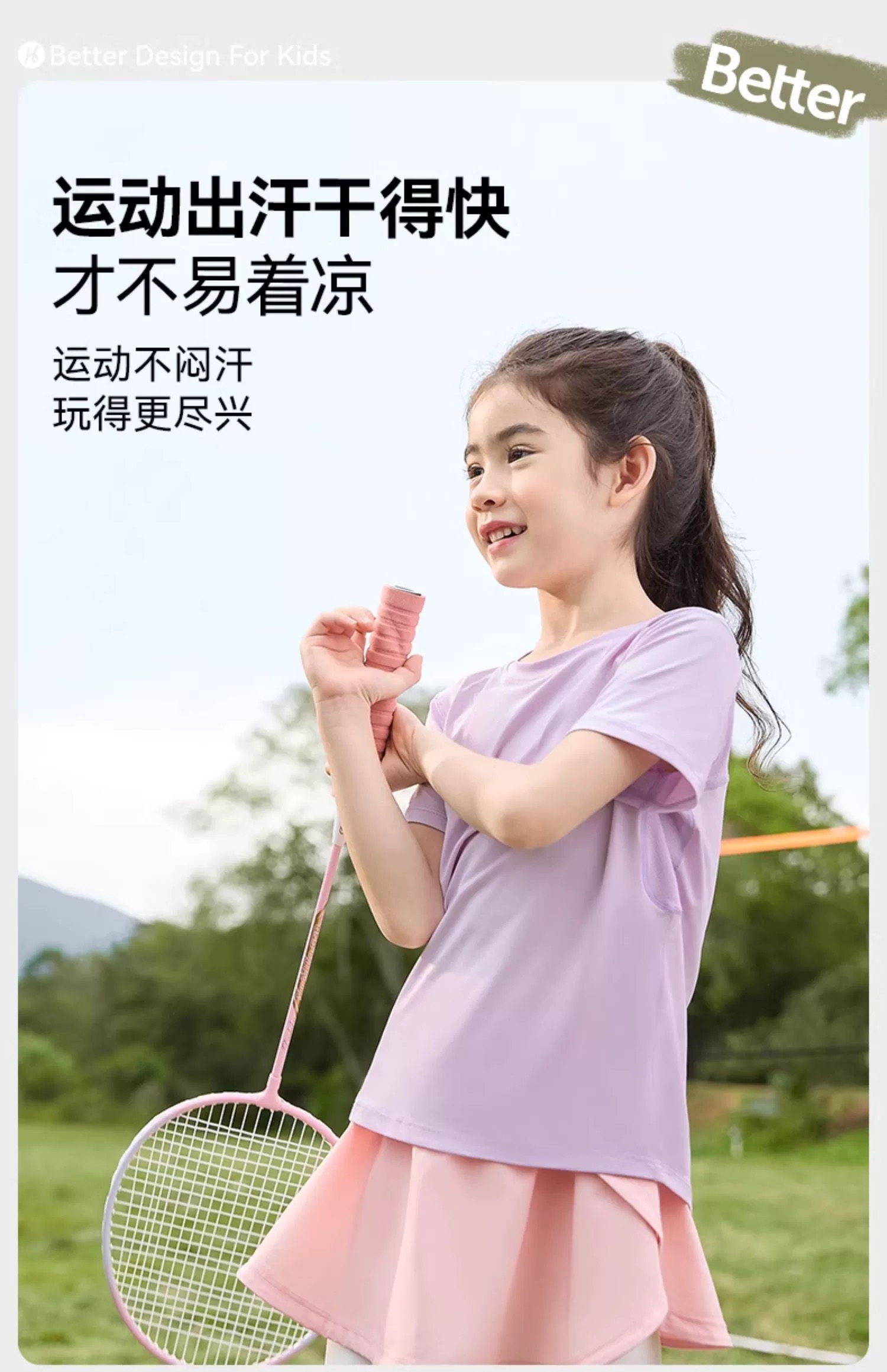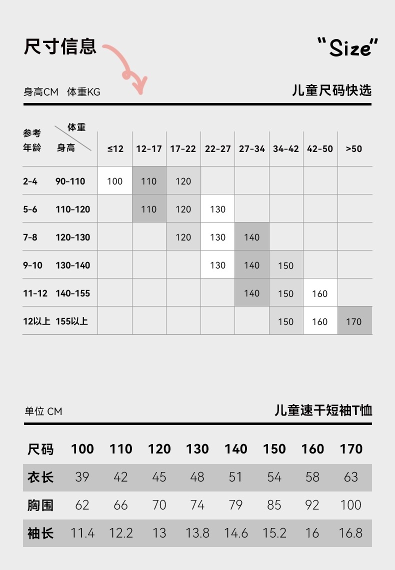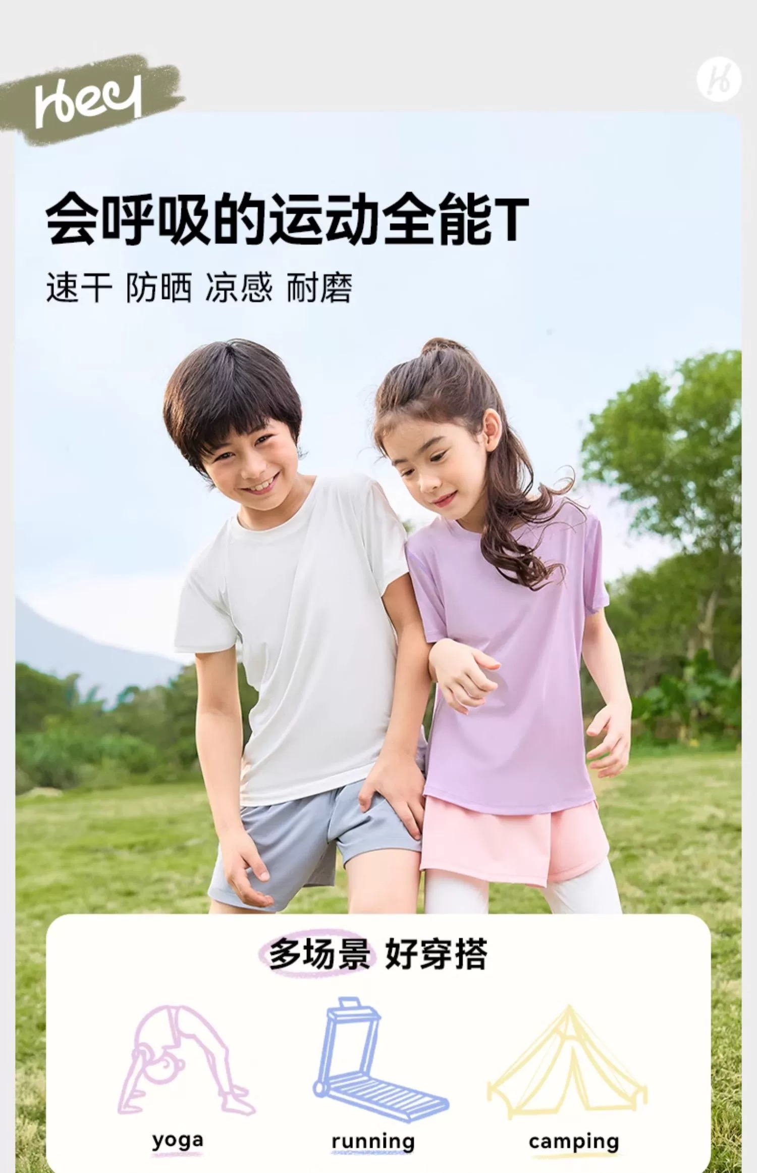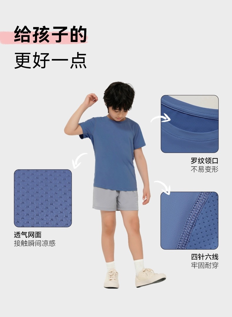 儿童速干短袖T恤 运动速干透气吸湿排汗 凉感耐磨 舒适有弹力 日常户外男女童同款