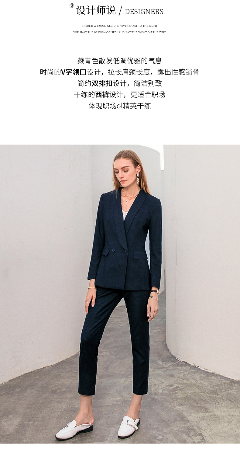 法小曼*子珍专款/高端蕾丝花边黑西装女时尚职业装春秋西服微喇裤套装正装两件套