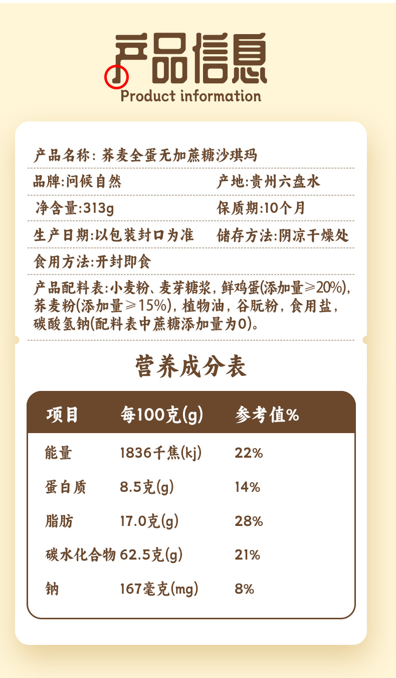 D问候自然荞麦全蛋无添加糖沙琪玛313g