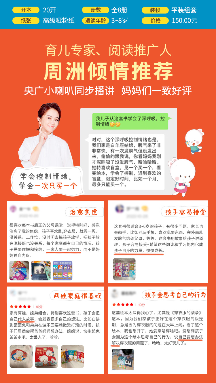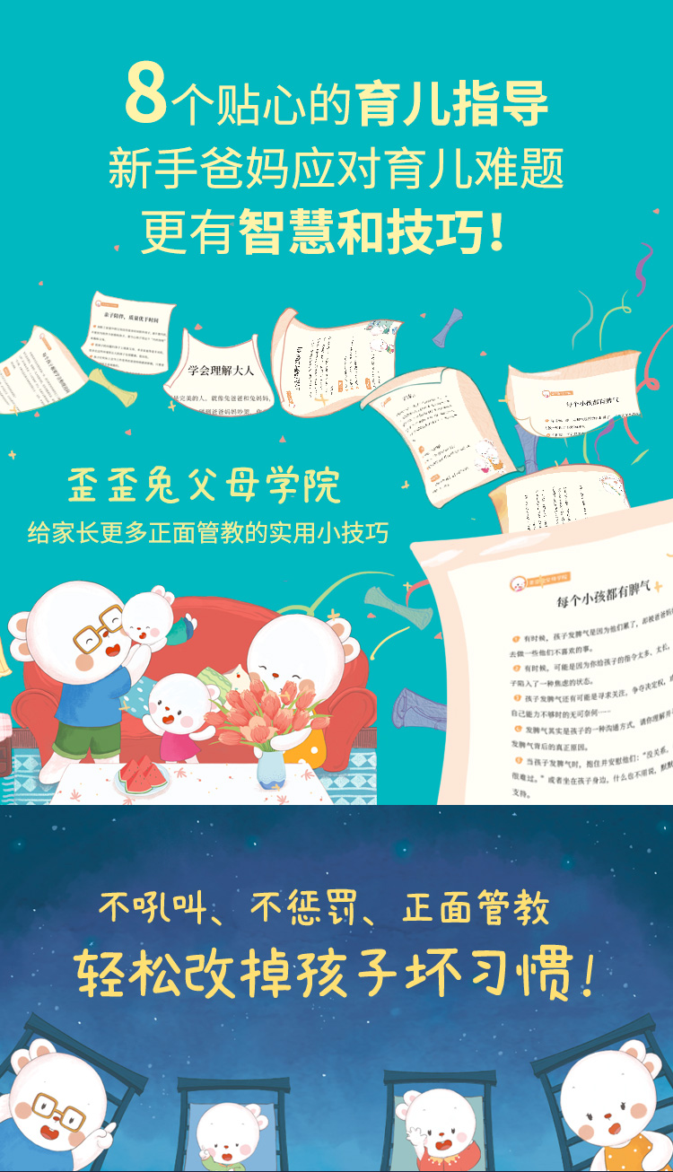 歪歪兔《亲子行为教育绘本》8册,不吼叫、不惩罚、正面管教孩子~解决8个现代中国家庭普遍问题(3-8岁)