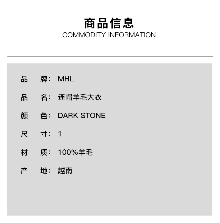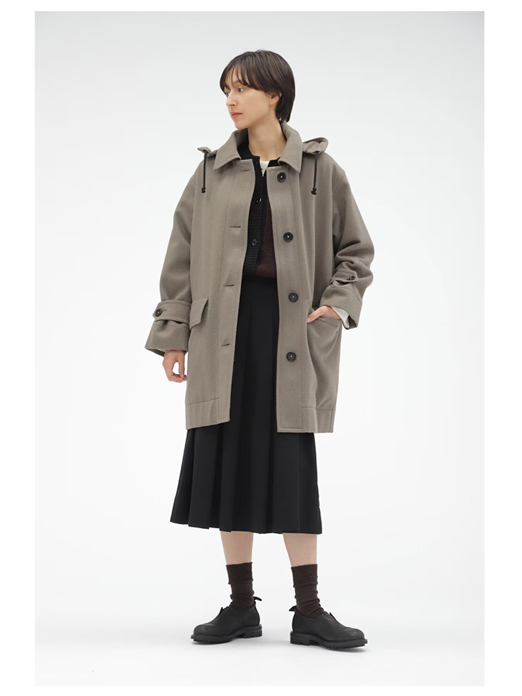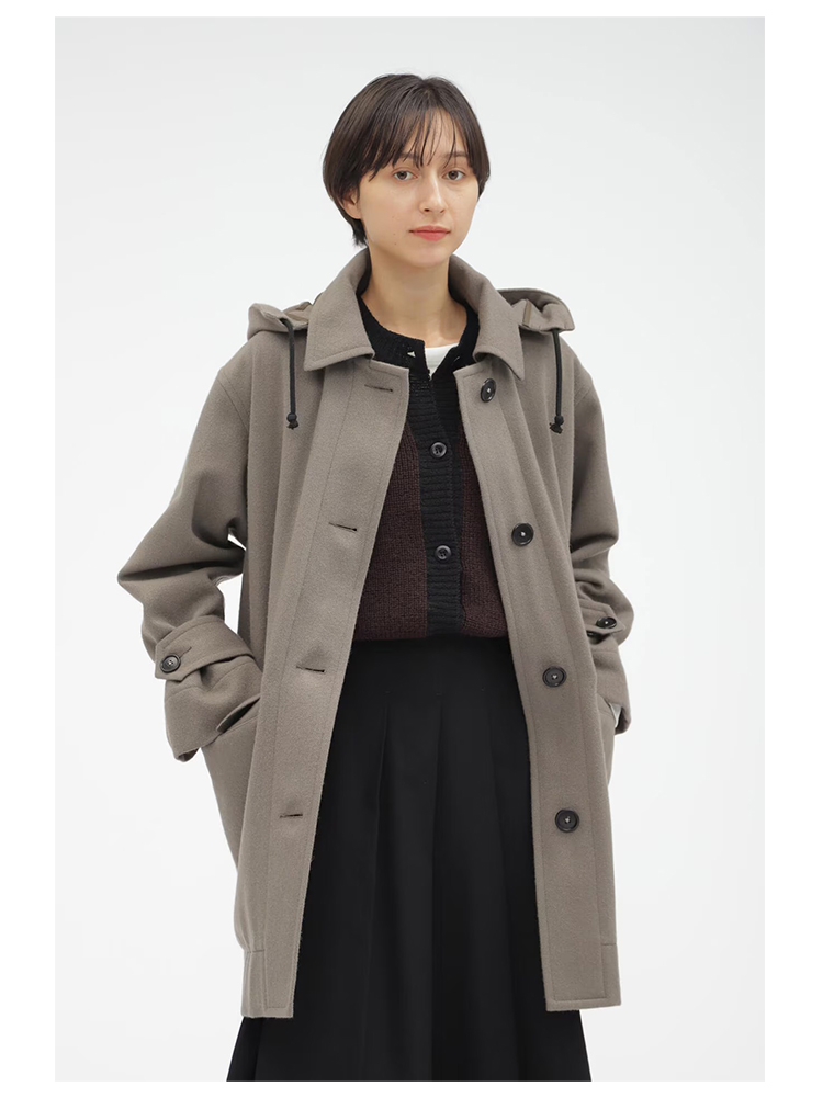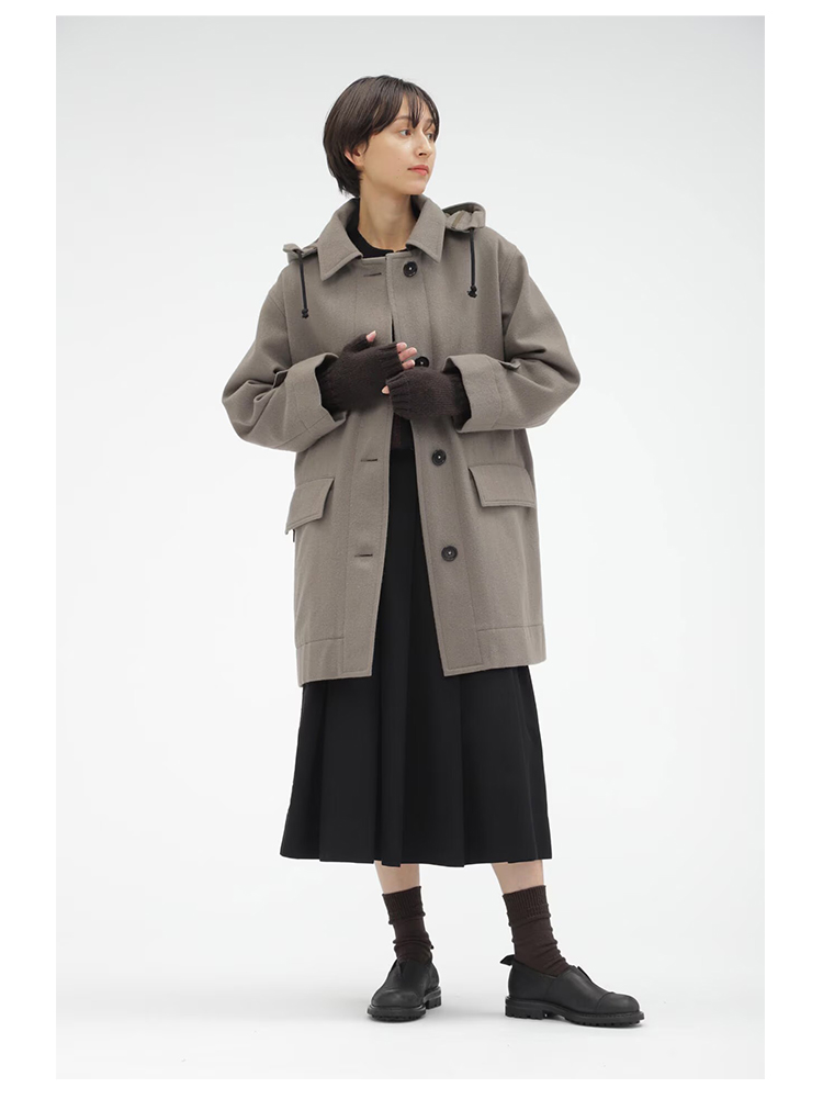 MHL BASIC WOOL MELTON 女式连帽羊毛大衣