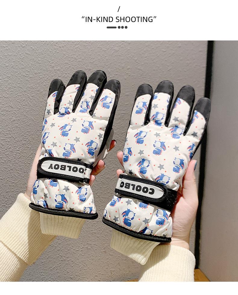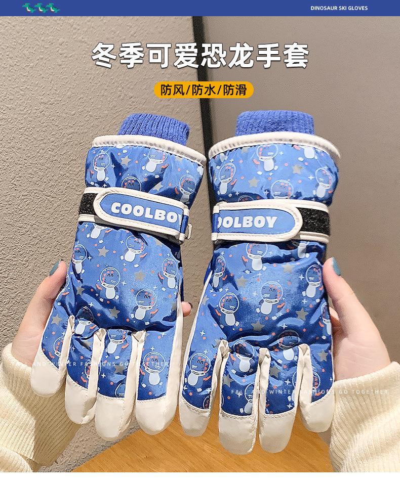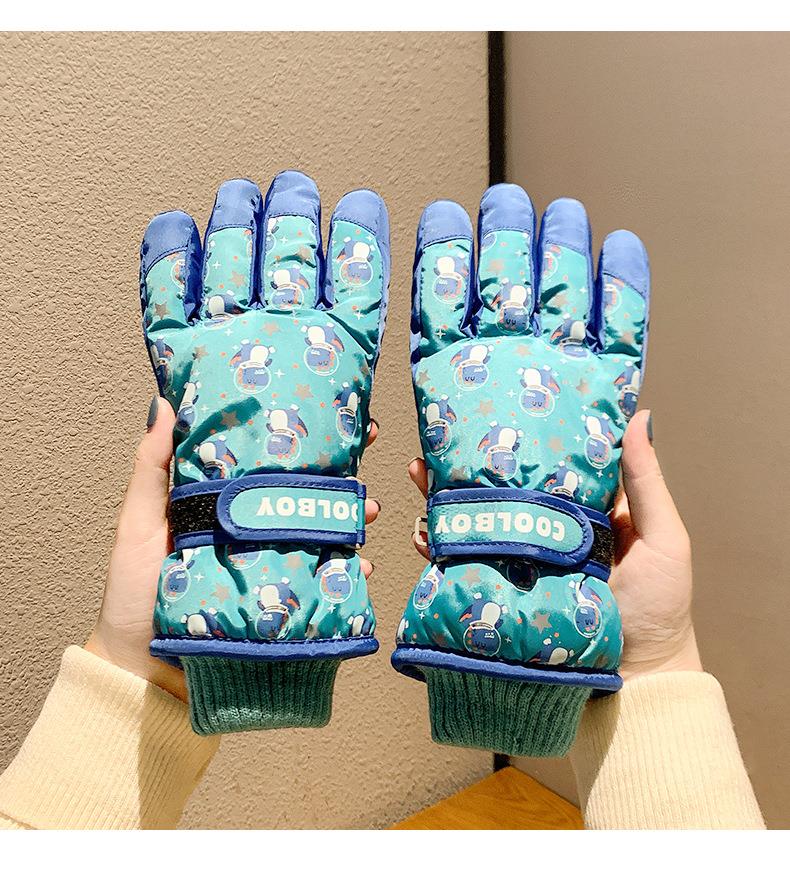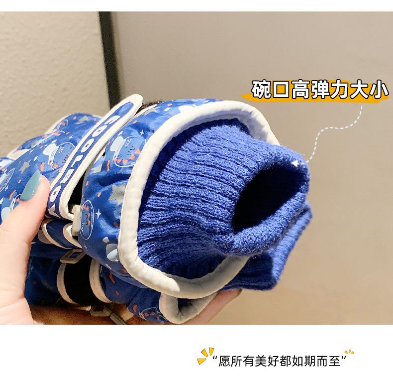儿童滑雪手套冬季保暖加绒加厚男女童玩雪防水防寒分指卡通棉手套