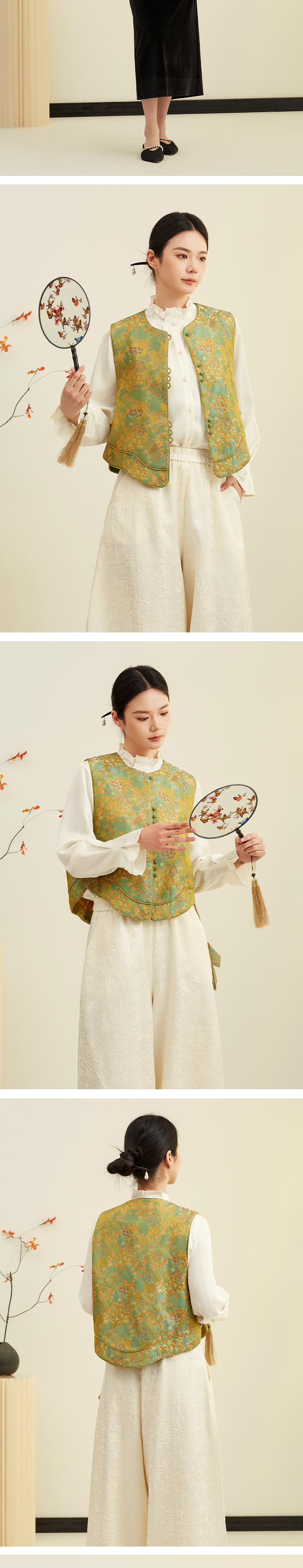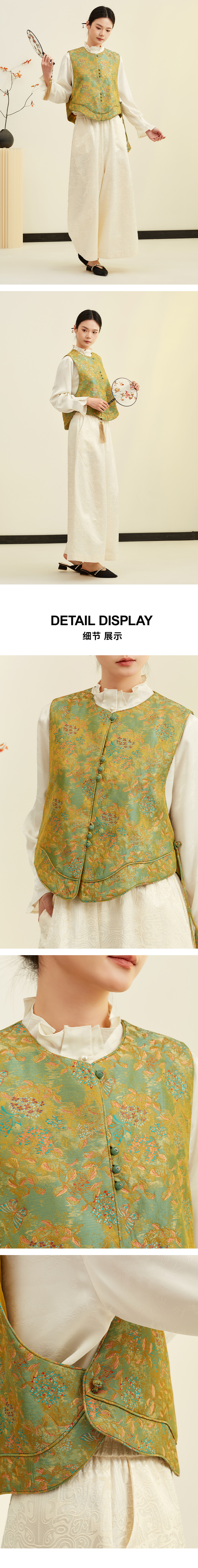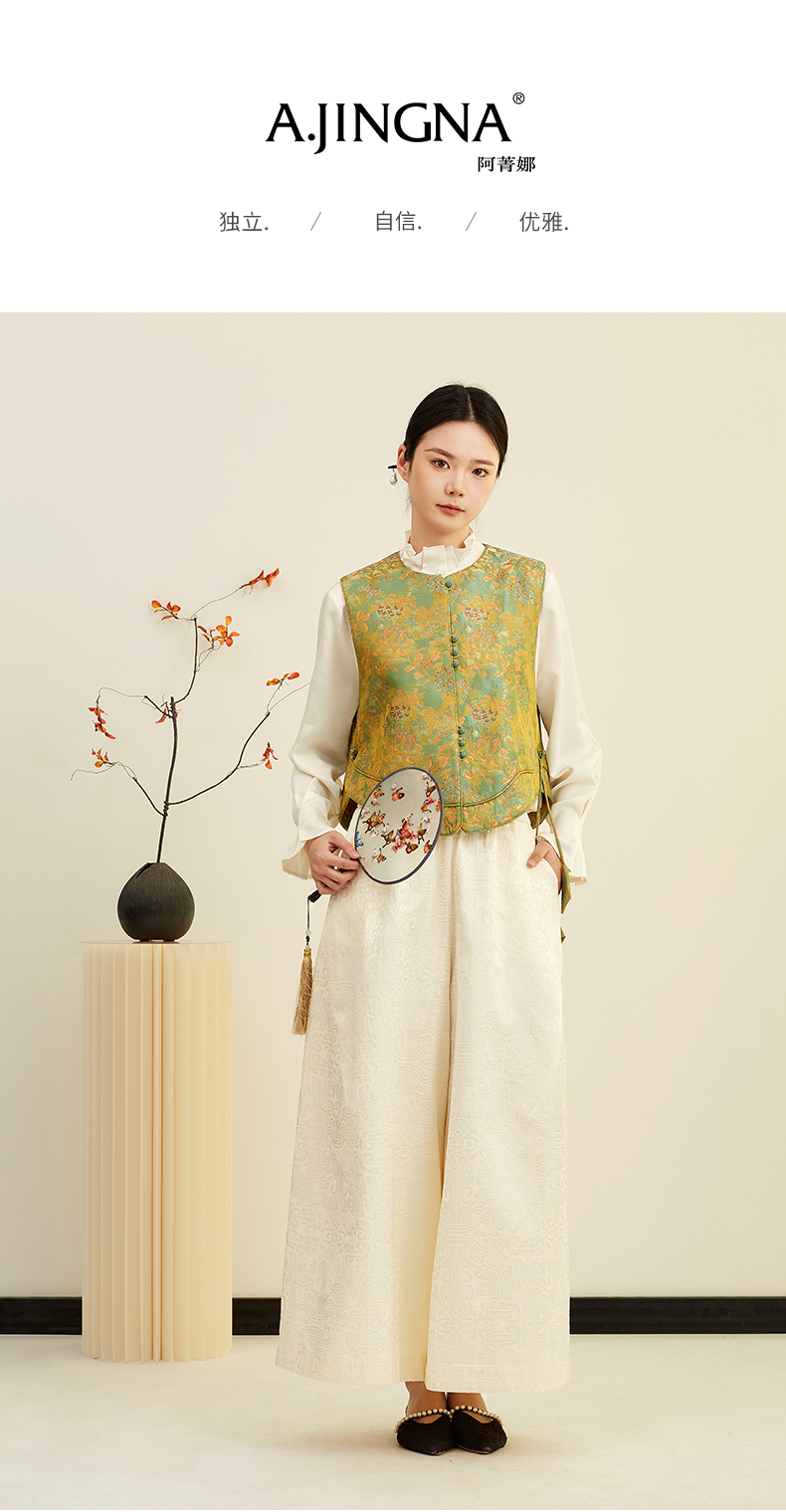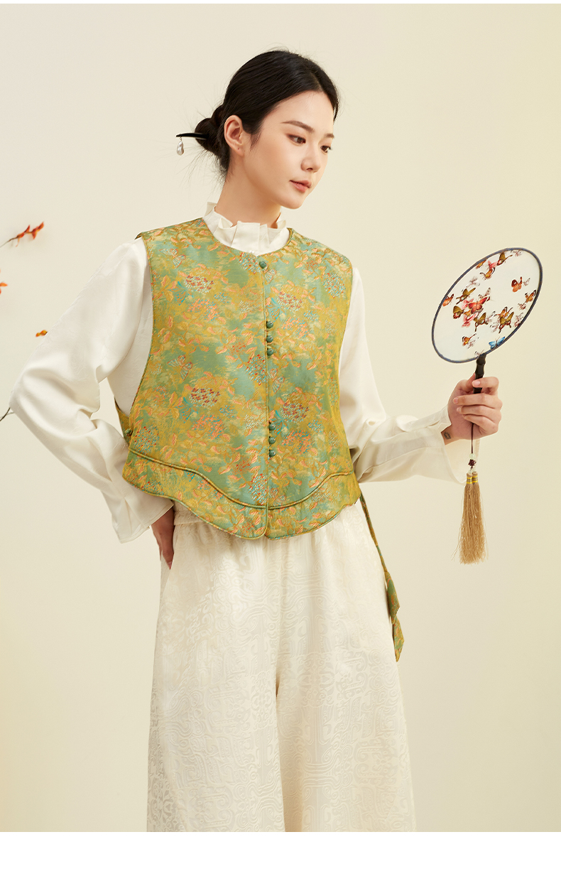 【东方诗意】阿菁娜春季新款松弛感新中式马甲桑蚕丝提花国风设计自带复古滤镜轻松穿出东方诗意氛围F31C203003