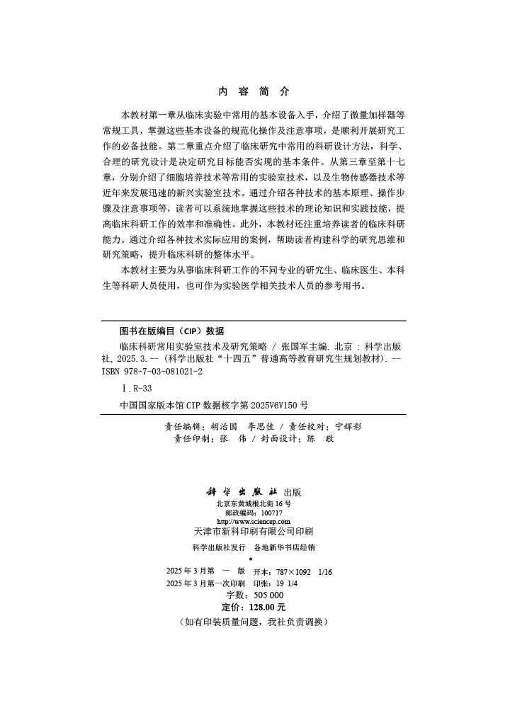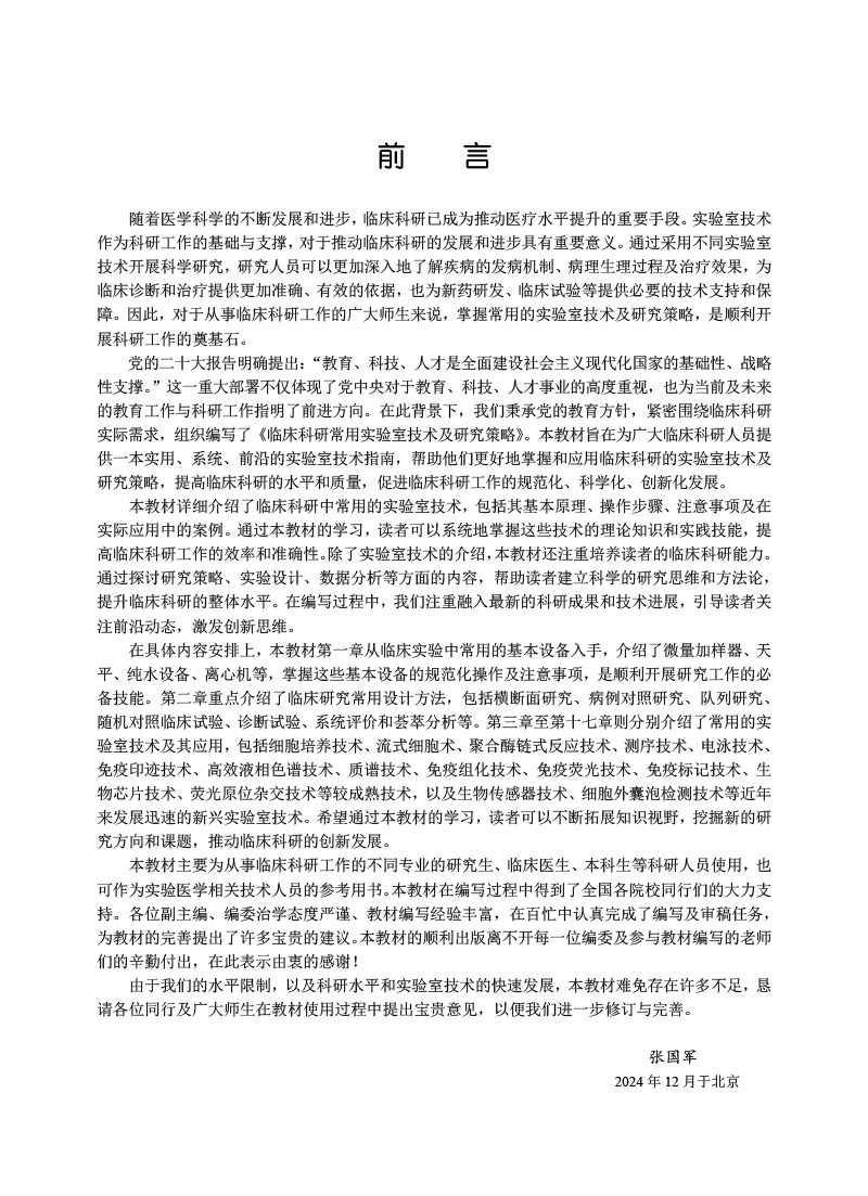 临床科研常用实验室技术及研究策略十四五普通高等教育研究生规划教材张国军供从事临床科研工作的不同专业的研究生等科研人员使用