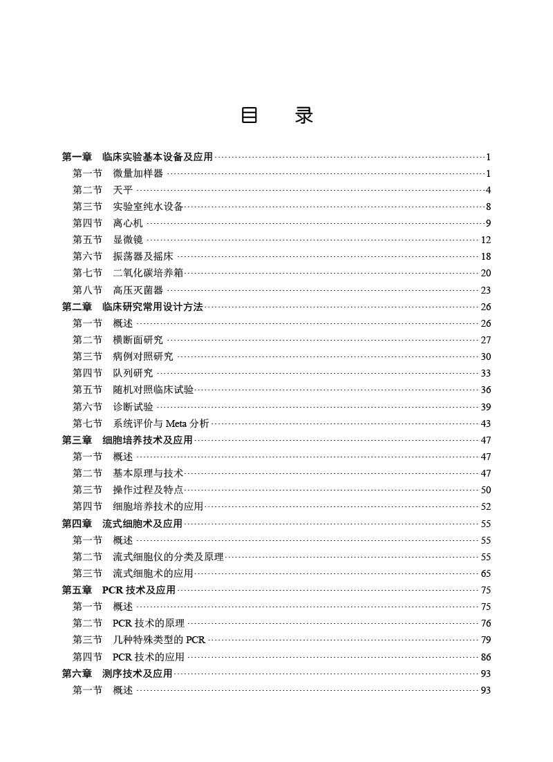 本教材第一章从临床实验中常用的基本设备入手,介绍了微量加样器等常规工具,掌握这些基本设备的规范化操作及注意事项,是顺利开展研究工作的必备技能。第二章重点介绍了临床研究中常用的科研设计方法,科学、合理的研究设计是决定研究目标能否实现的基本条件。从第三章至第十七章,分别介绍了细胞培养技术等常用的实验室技术,以及生物传感器技术等近年来发展迅速的新兴实验室技术。通过介绍各种技术的基本原理、操作步骤及注意事项等,读者可以系统地掌握这些技术的理论知识和实践技能,提高临床科研工作的效率和准确性。此外,本教材还注重培养读者的临床科研能力。通过介绍各种技术实际应用的案例,帮助读者构建科学的研究思维和研究策略,提升临床科研的整体水平。