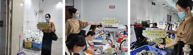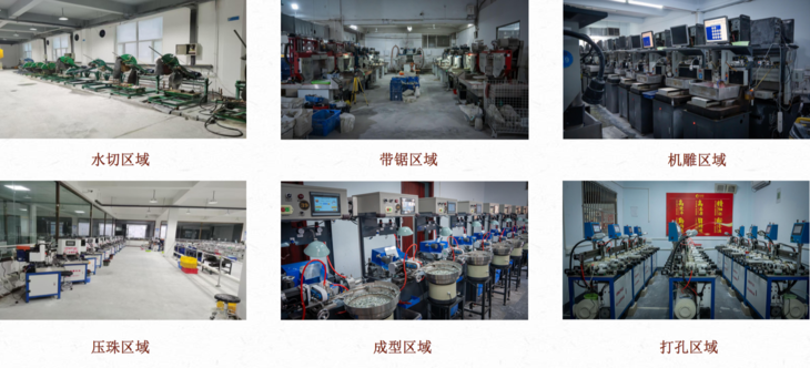 ◎拥有专业现代化玉石首饰加工厂,从原石切割到制作玉镯、吊坠、玉珠玉串一条龙生产链条,对玉石瑕疵0容忍。