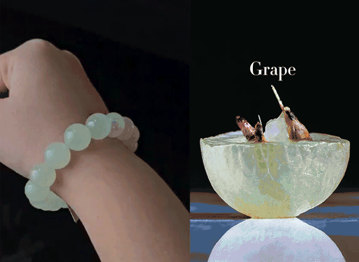 在夏天翠青葡萄肉能爆火真的是有原因的,在腕间泛起薄荷色的涟漪,举手投足皆是清丽,一颦一笑皆藏温婉。