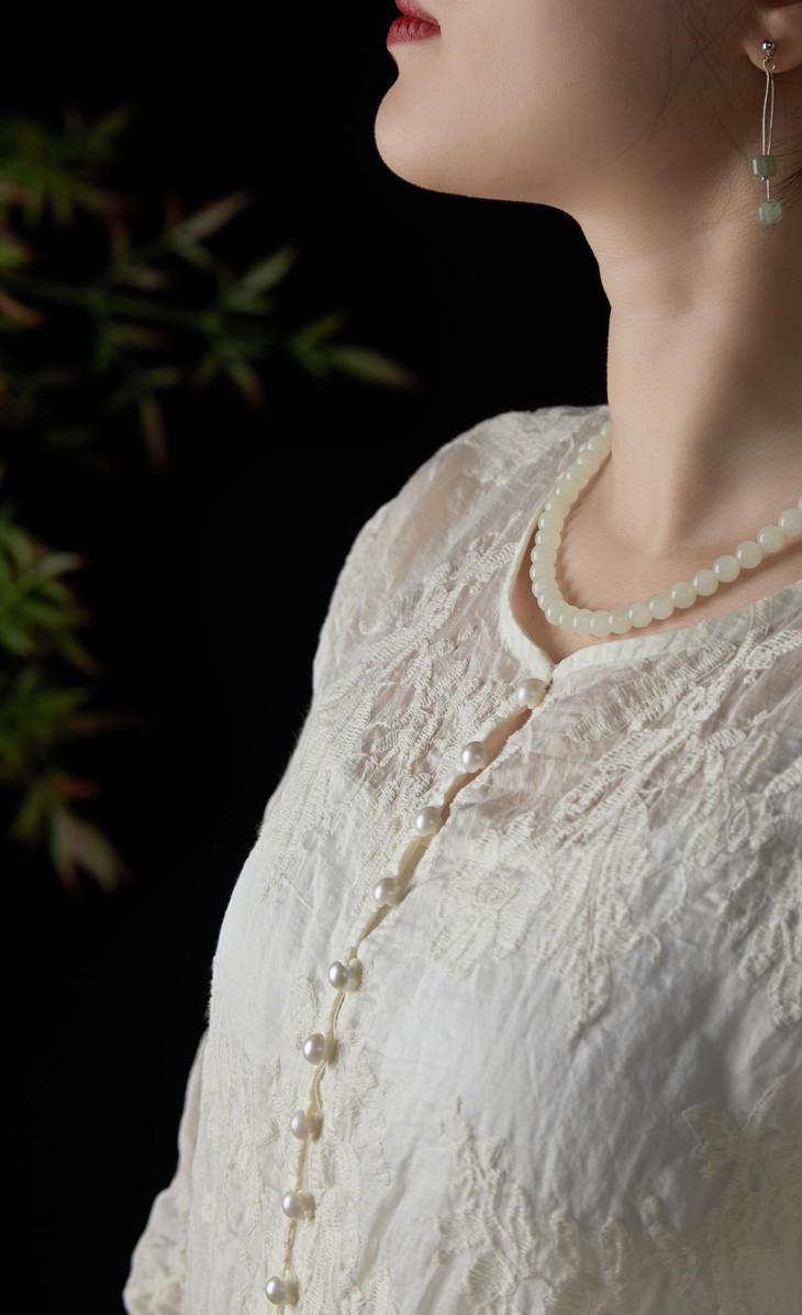 搭配新中式穿搭,其温润的美与东方美学相得益彰;与亚麻衣物相搭配,清新如湖畔微风。