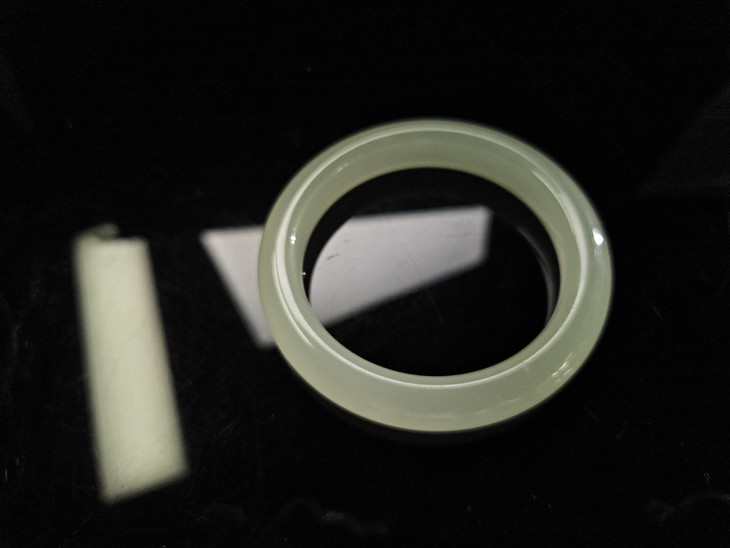 那玉色水头犹如烟雨朦胧的山影,更像是一汪被山泉沁透的湖水,清透中带着温润的油脂光。