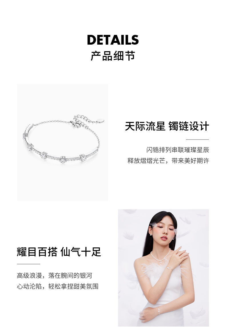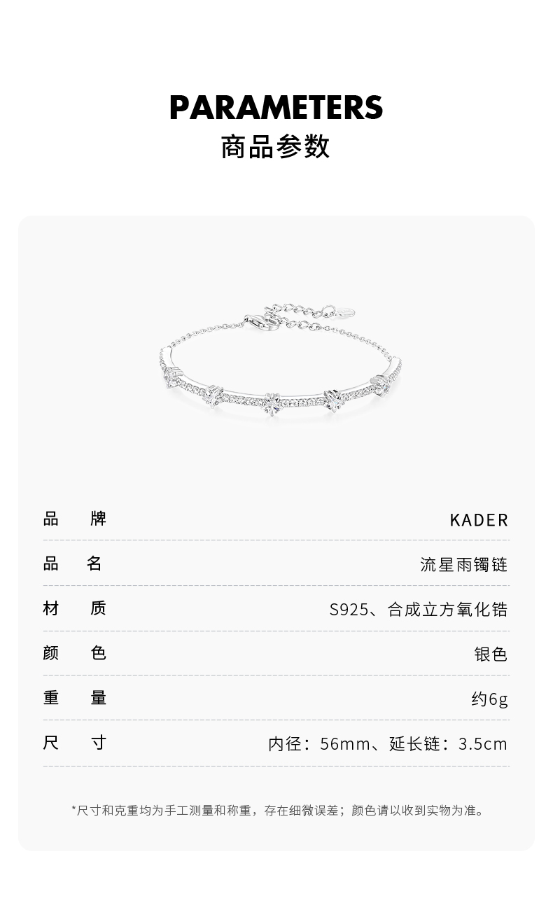 KADER卡蒂罗 流星雨镯链 S925银璀璨星辰耀目设计配饰 浪漫甜美高级感首饰精致闪耀百搭款 闺蜜同款女生款 礼盒