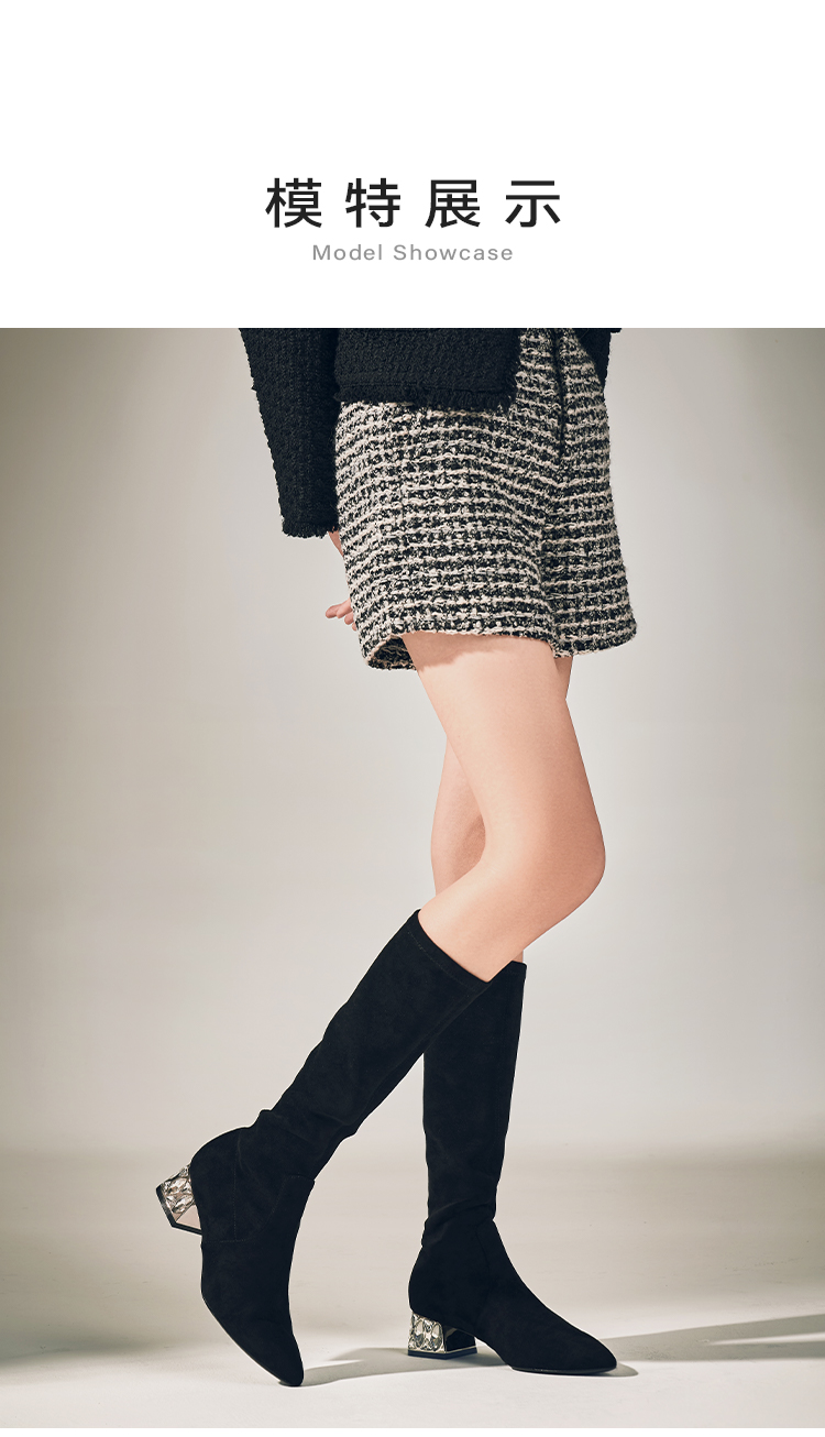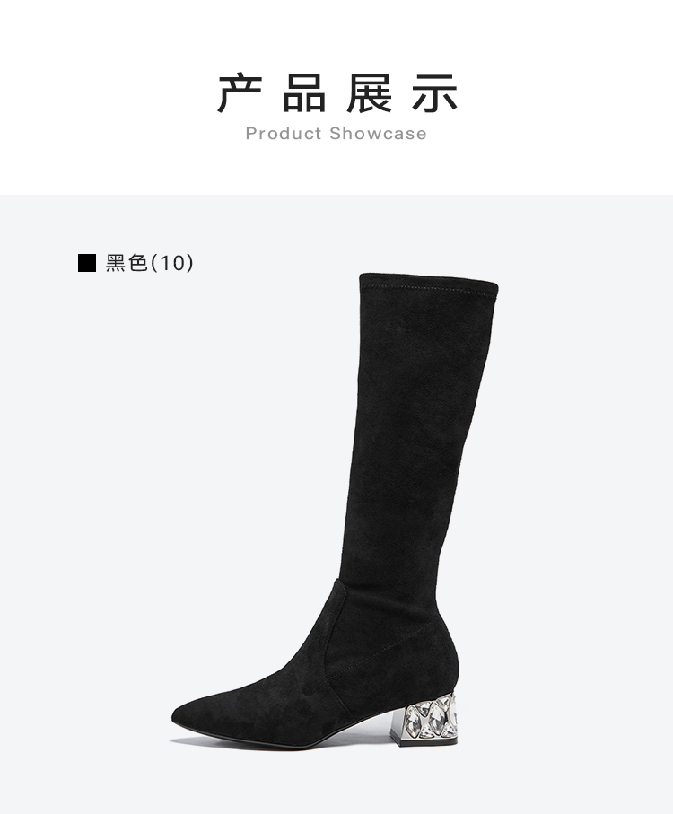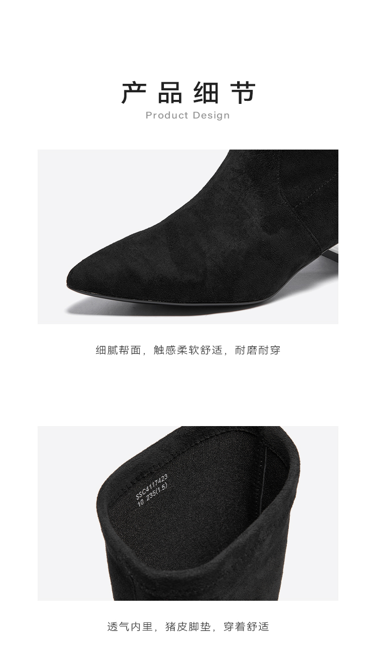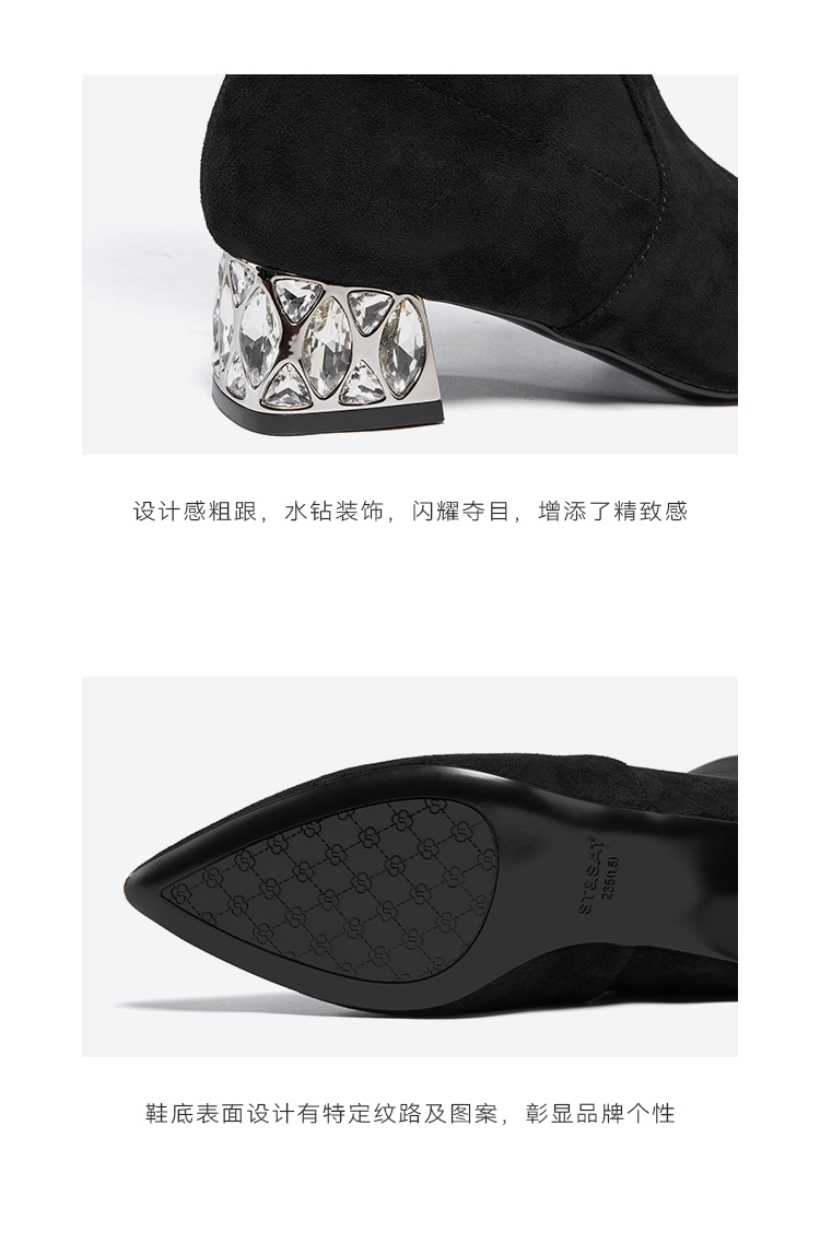 星期六高级感尖头显瘦闪钻粗跟瘦瘦靴SSC4117423