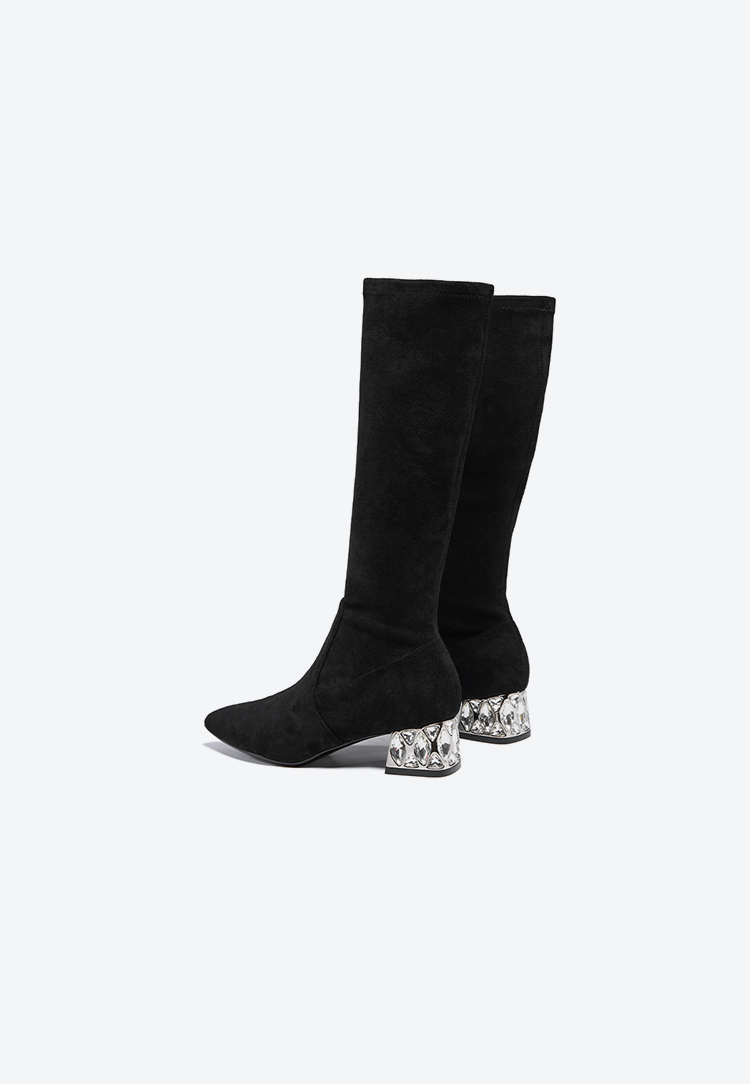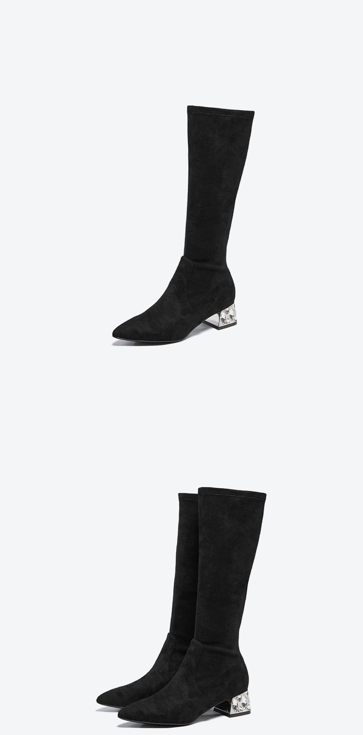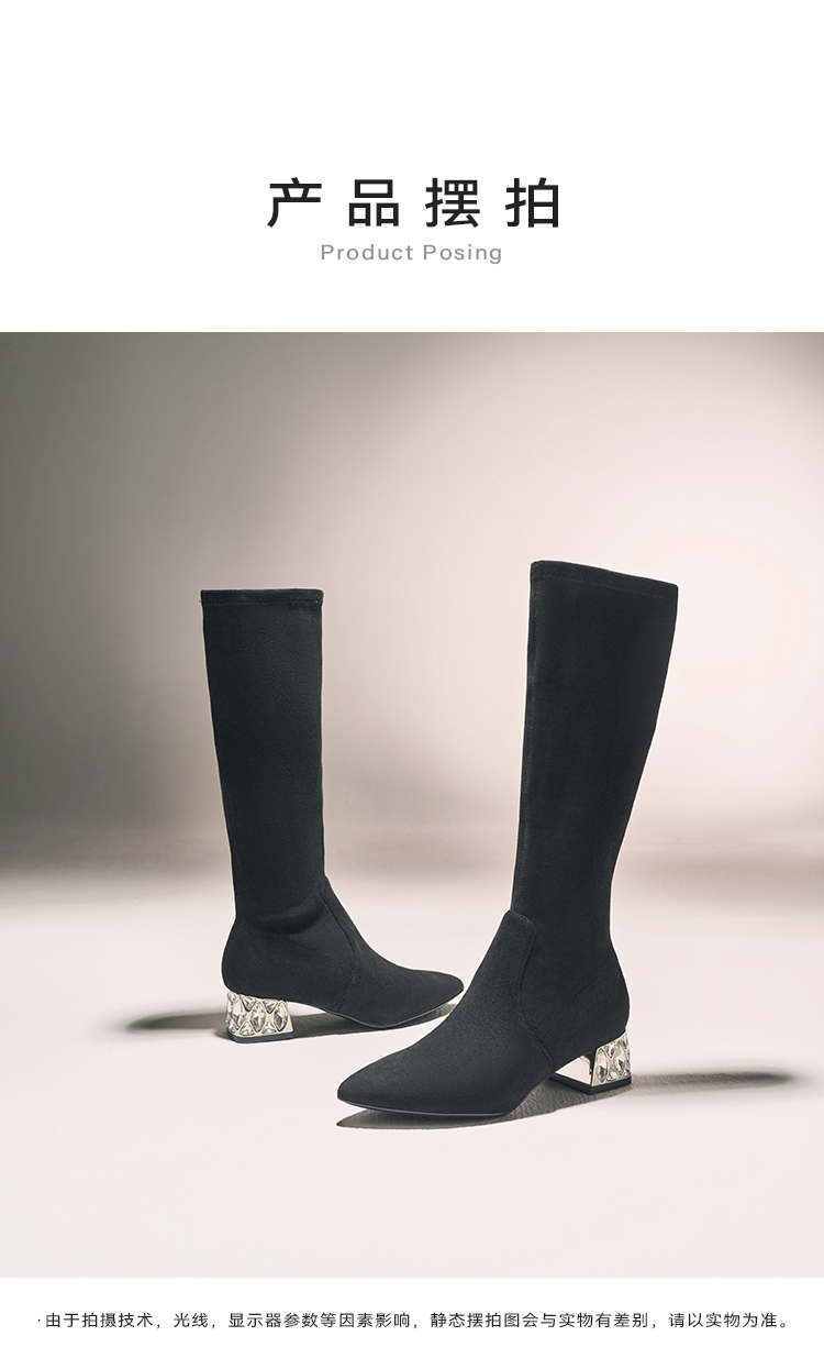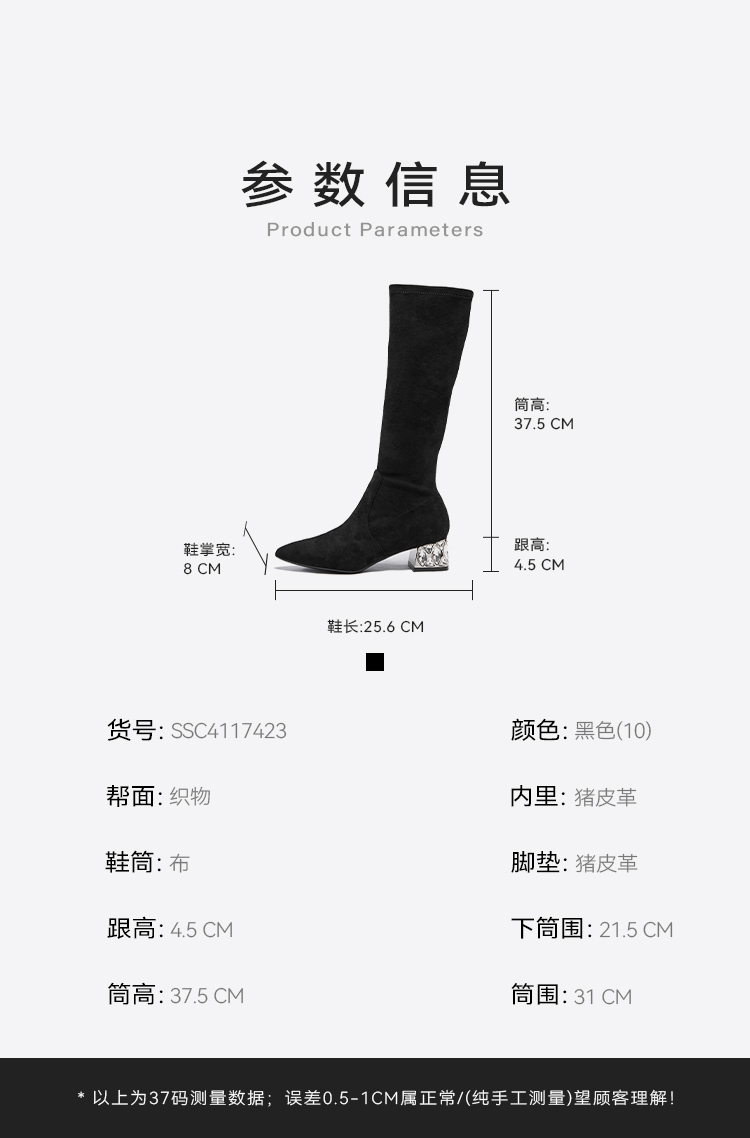 星期六高级感尖头显瘦闪钻粗跟瘦瘦靴SSC4117423