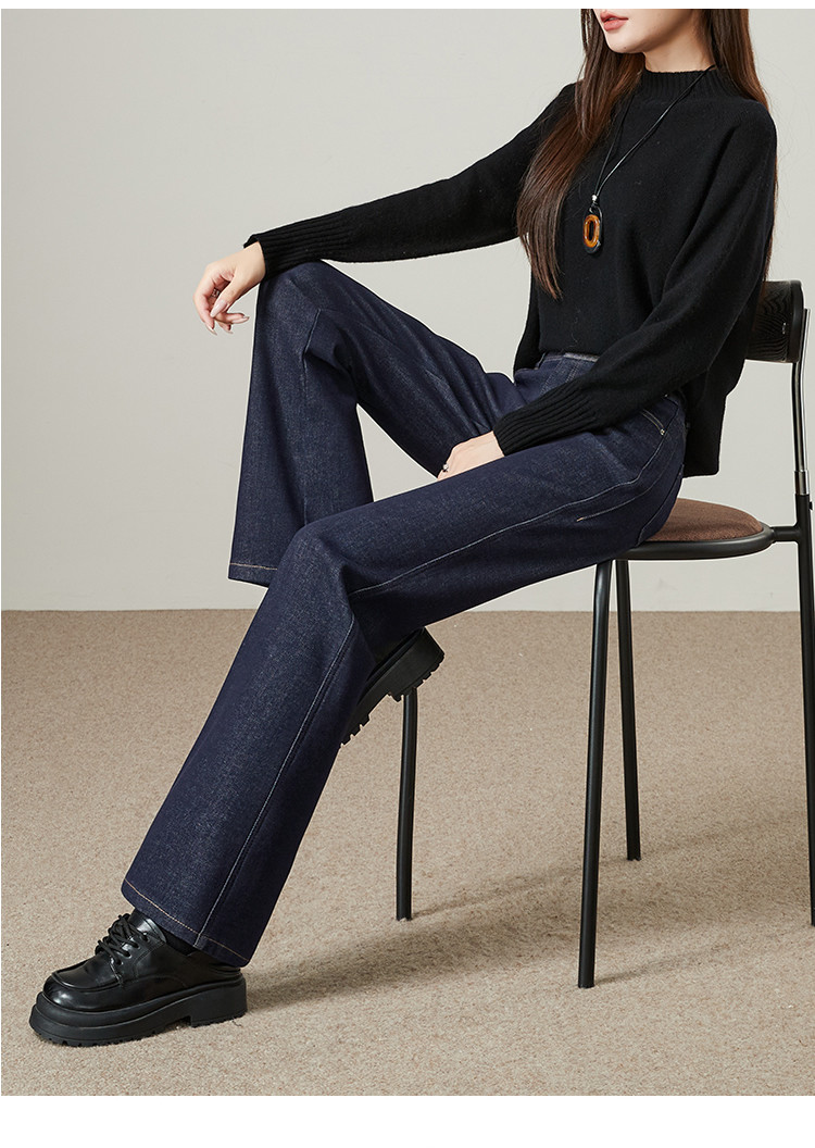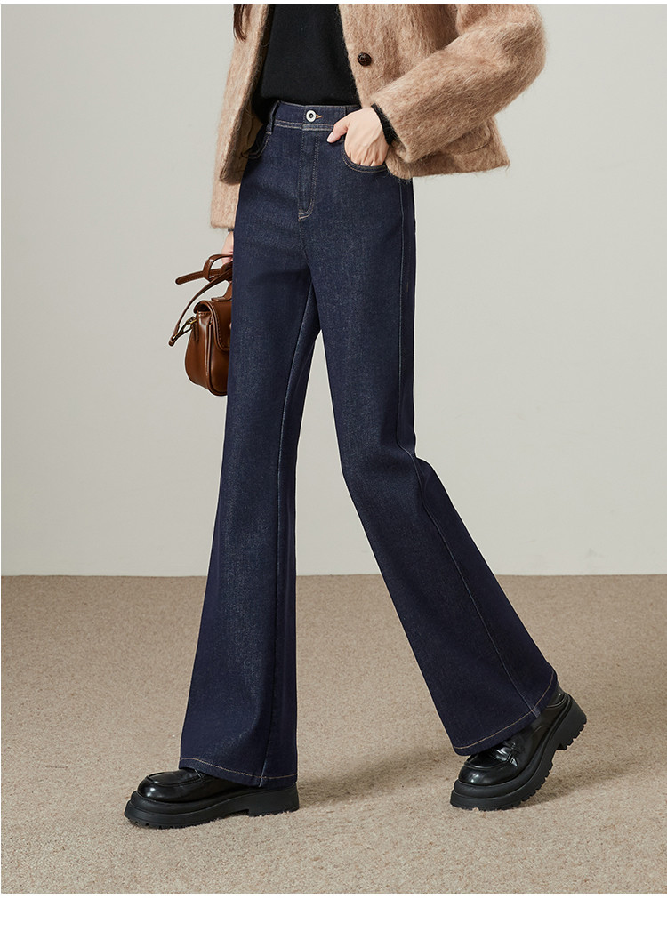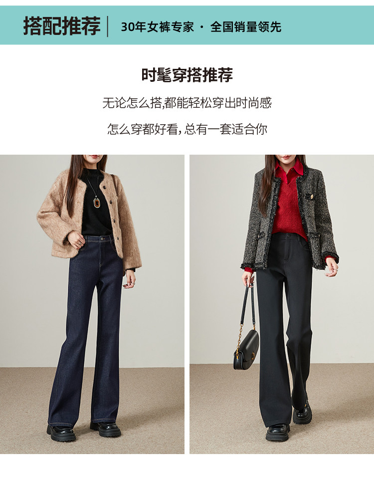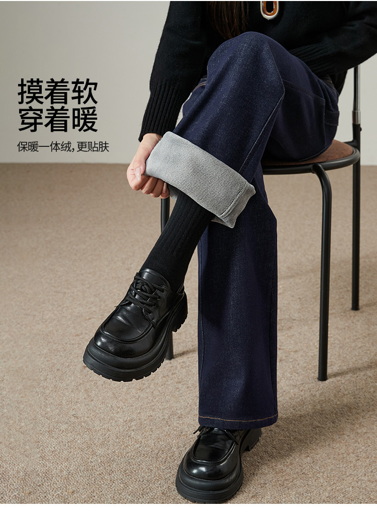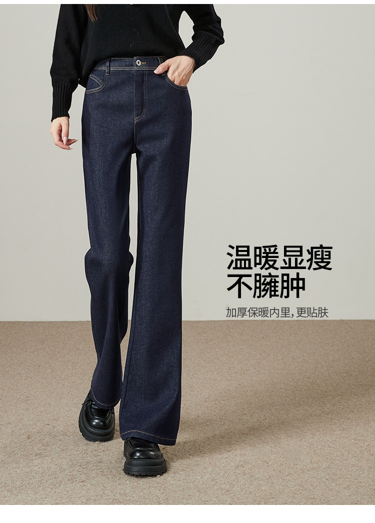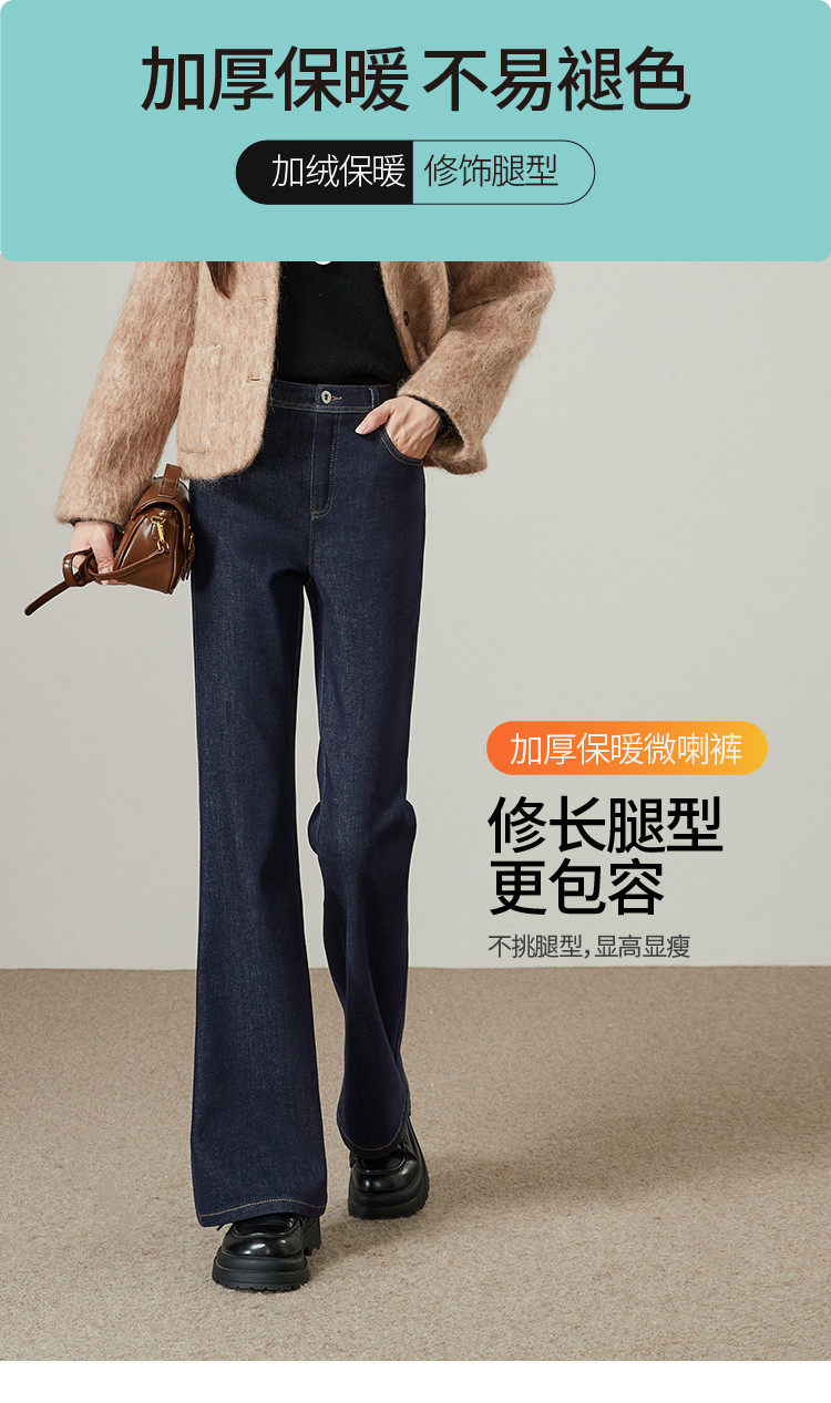【厚绒-微喇牛仔】逸阳冬加绒加厚不易褪色微喇叭牛仔裤8757V