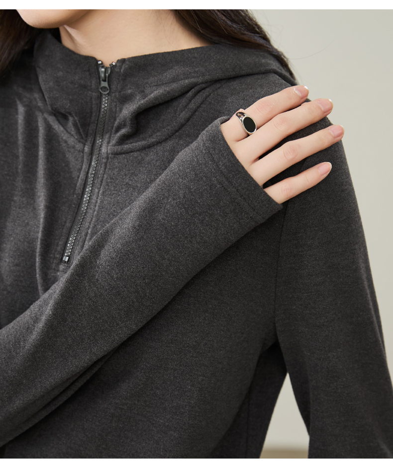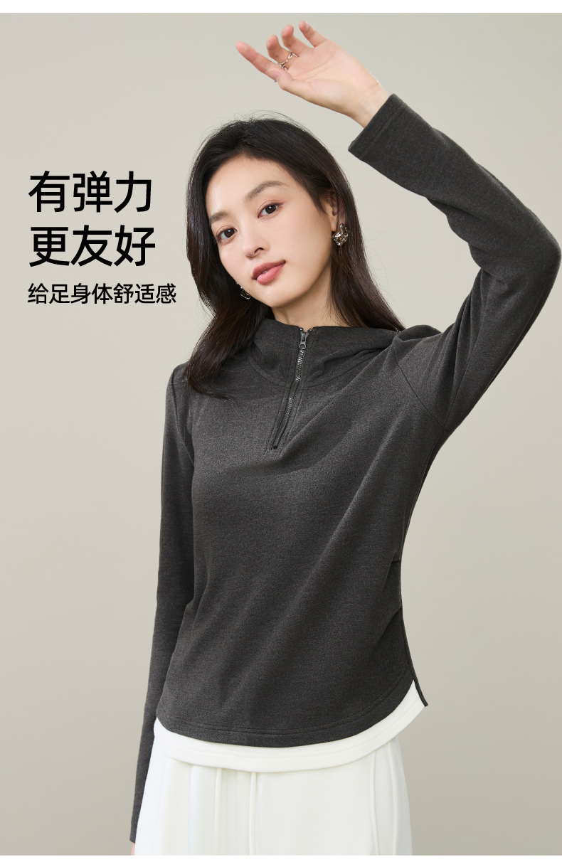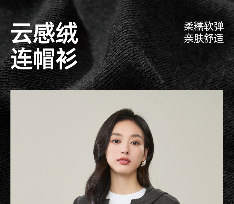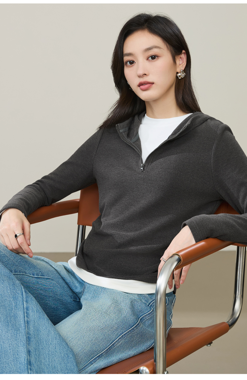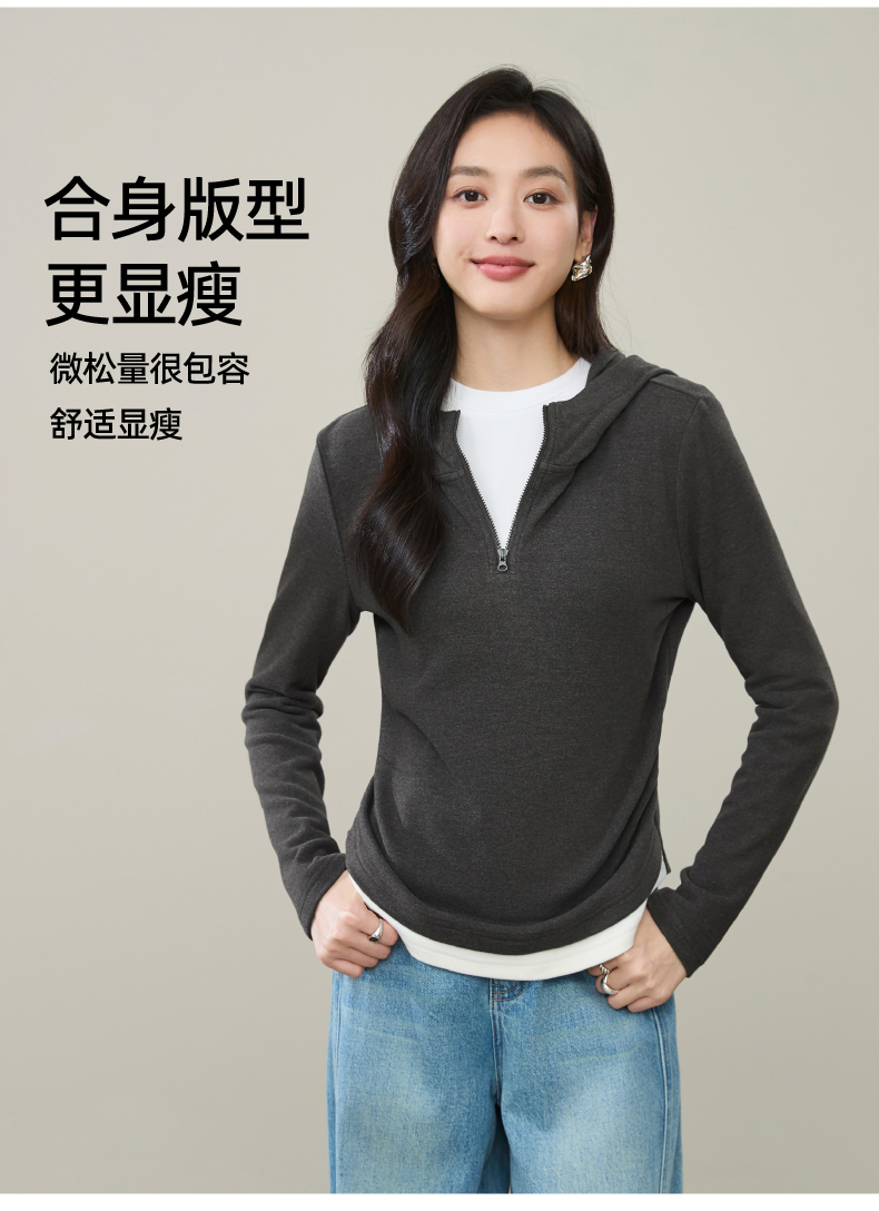 【云感绒-连帽衫】逸阳秋高级灰连帽衫抽褶收腰正肩显瘦打底卫衣5269