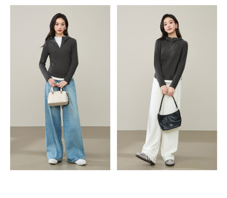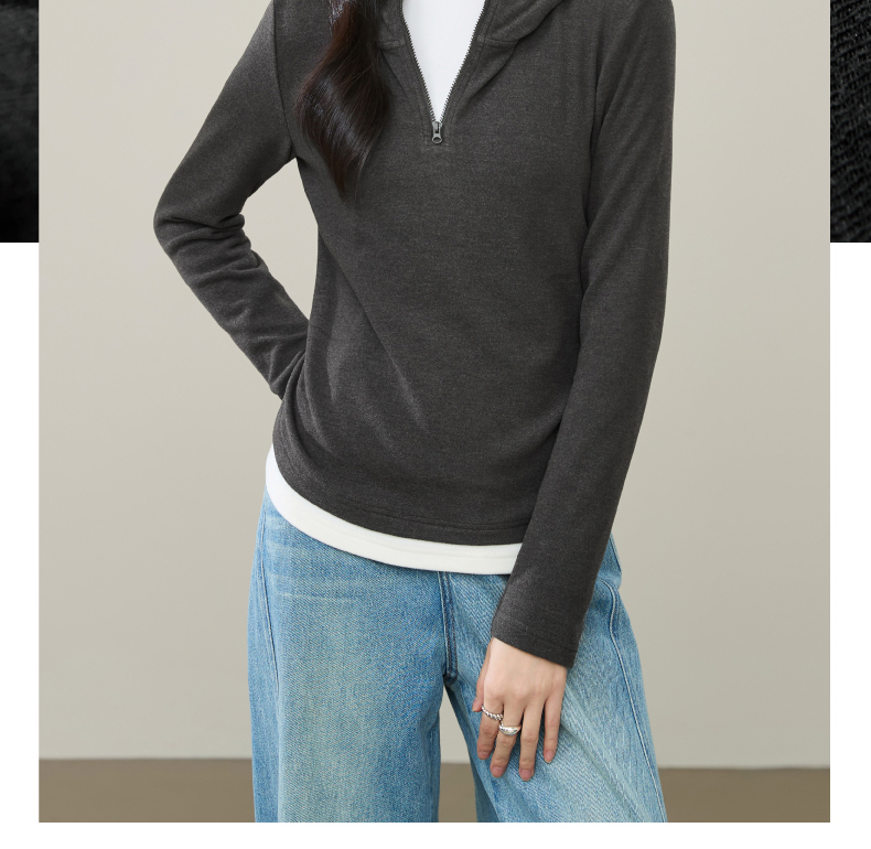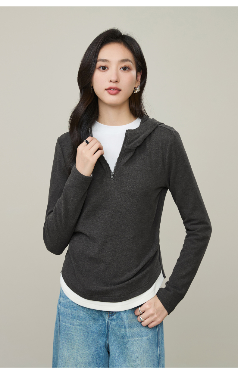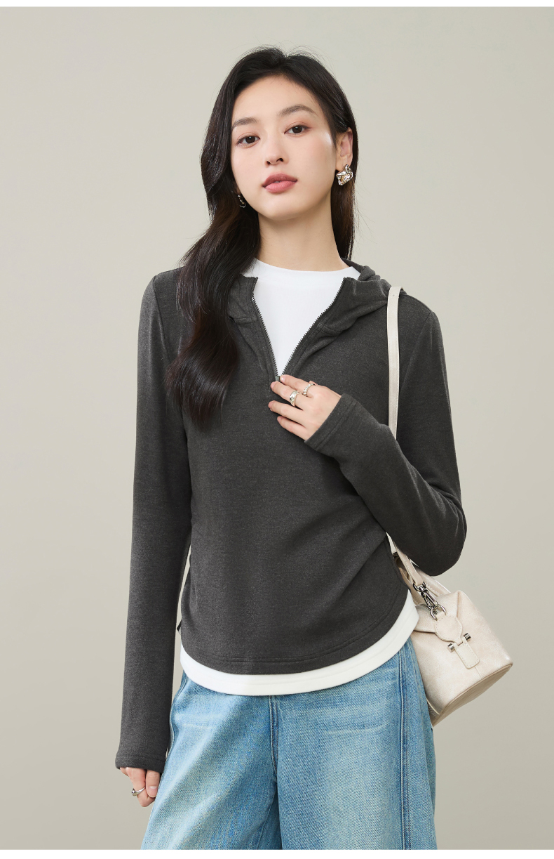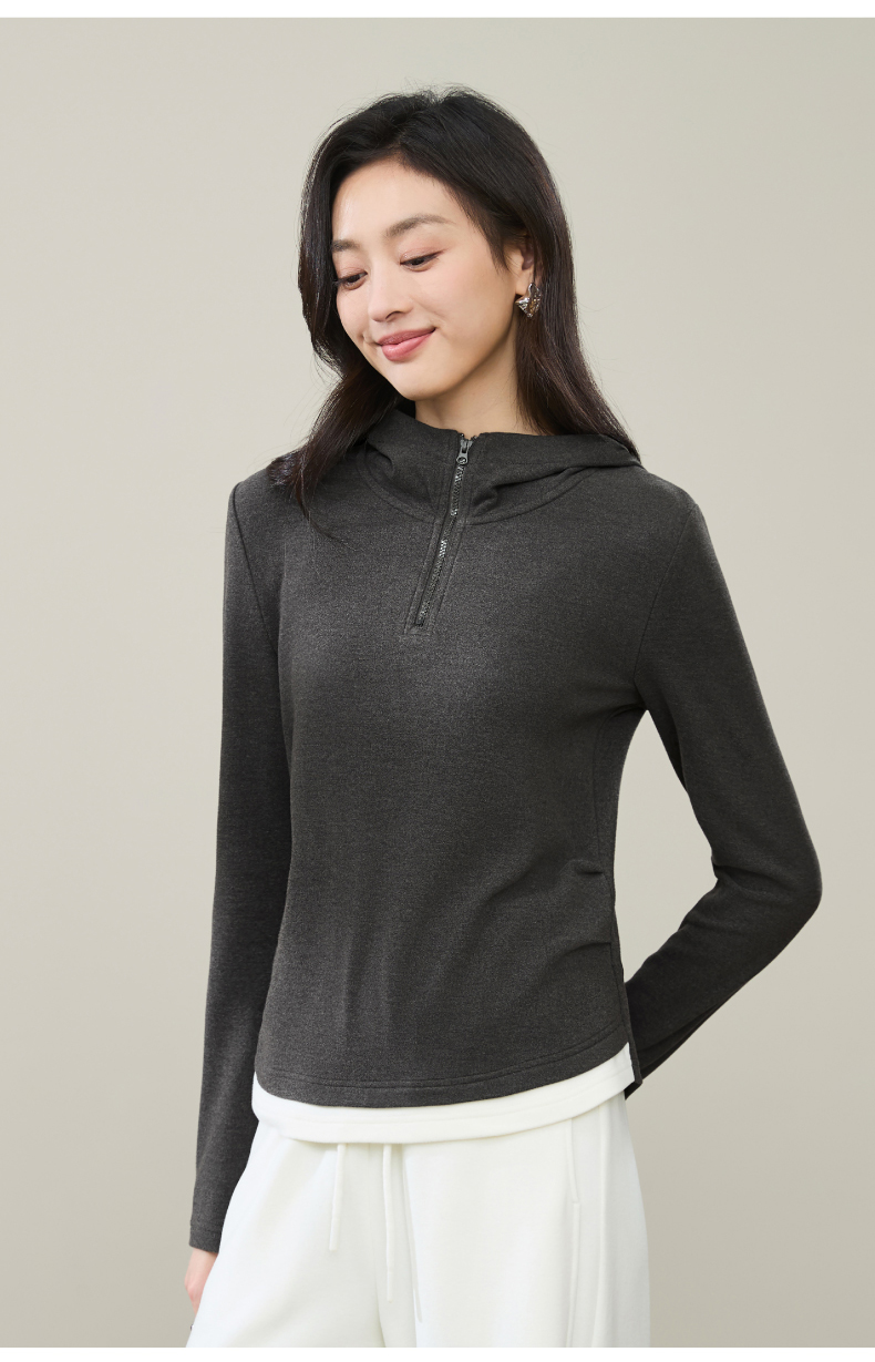 【云感绒-连帽衫】逸阳秋高级灰连帽衫抽褶收腰正肩显瘦打底卫衣5269