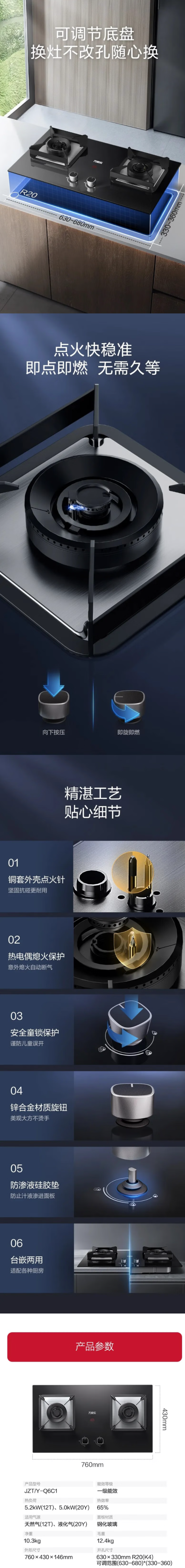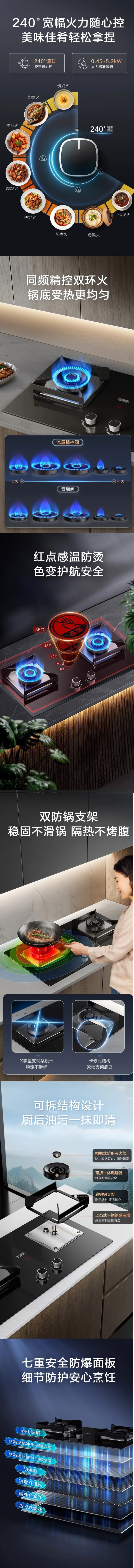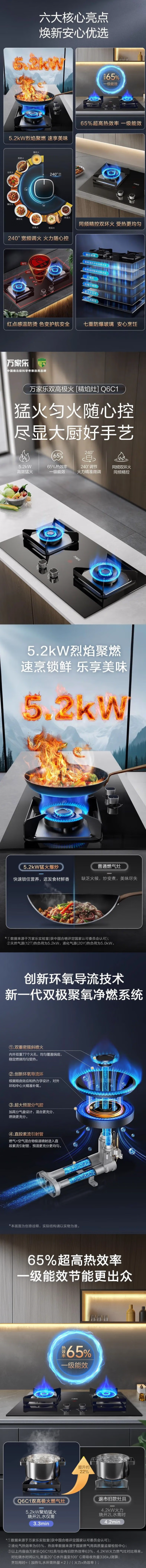 万家乐(510794)一级能效5.2KW燃气灶隔热防滑高效节能 新品5.2KW不锈钢JZT-Q6C1G天然气