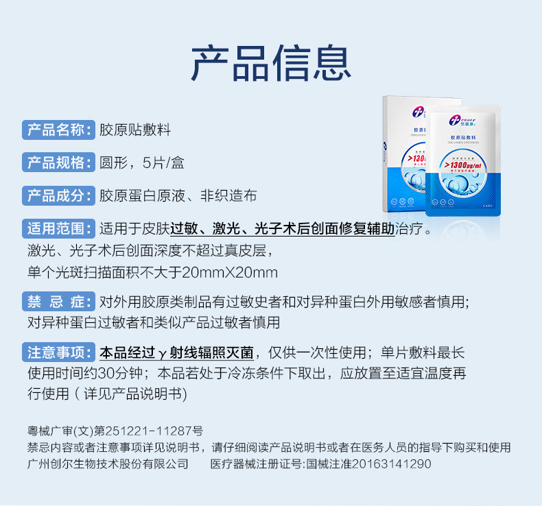 【 械字号】创福康1300浓度胶原贴5片一盒,exp2026-11