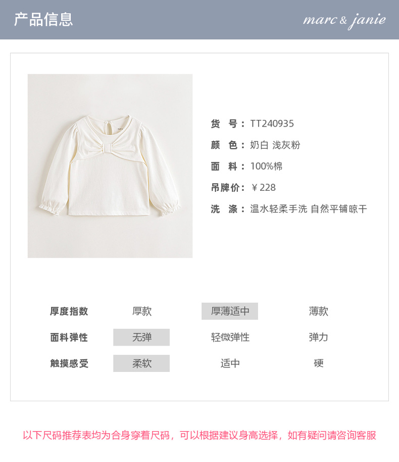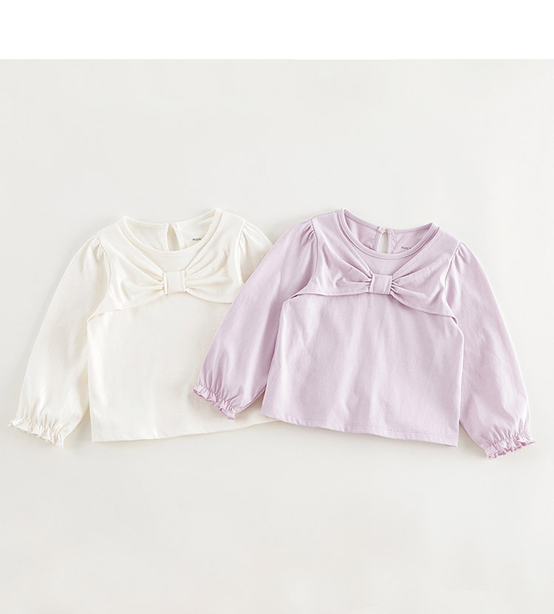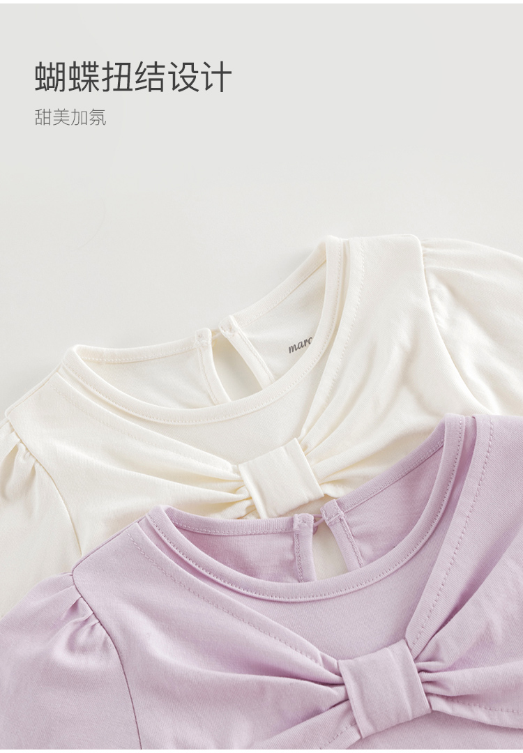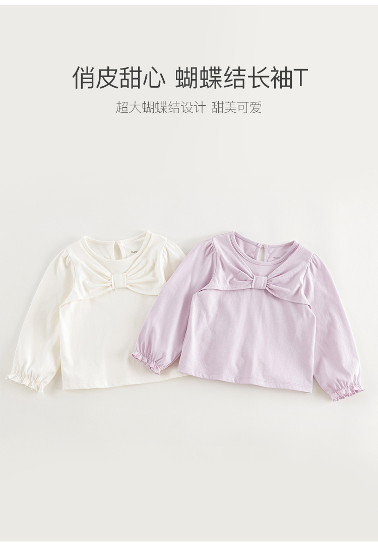 马克珍妮2024年秋装新款 女童甜美蝴蝶结纯棉长袖T恤 240935