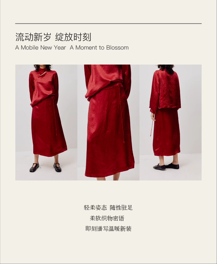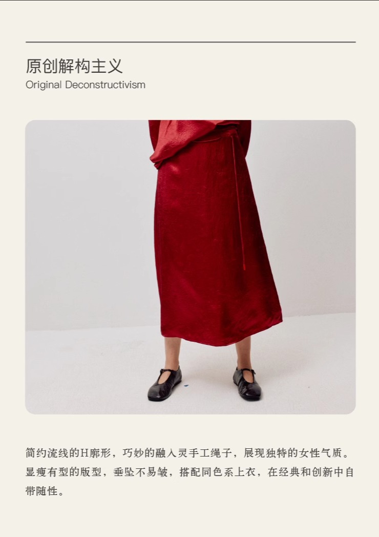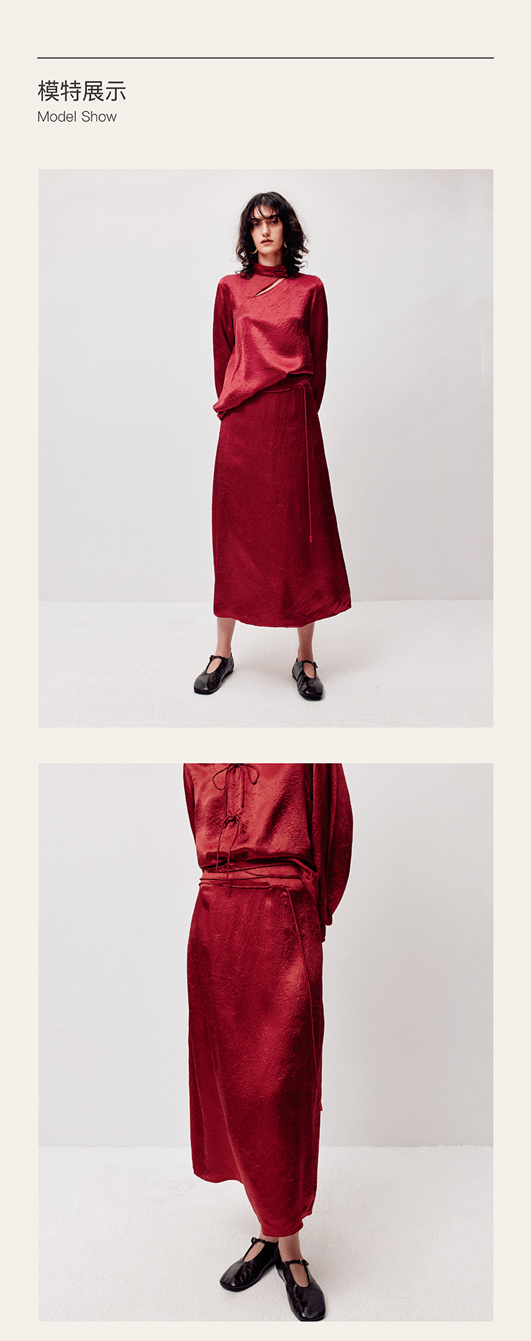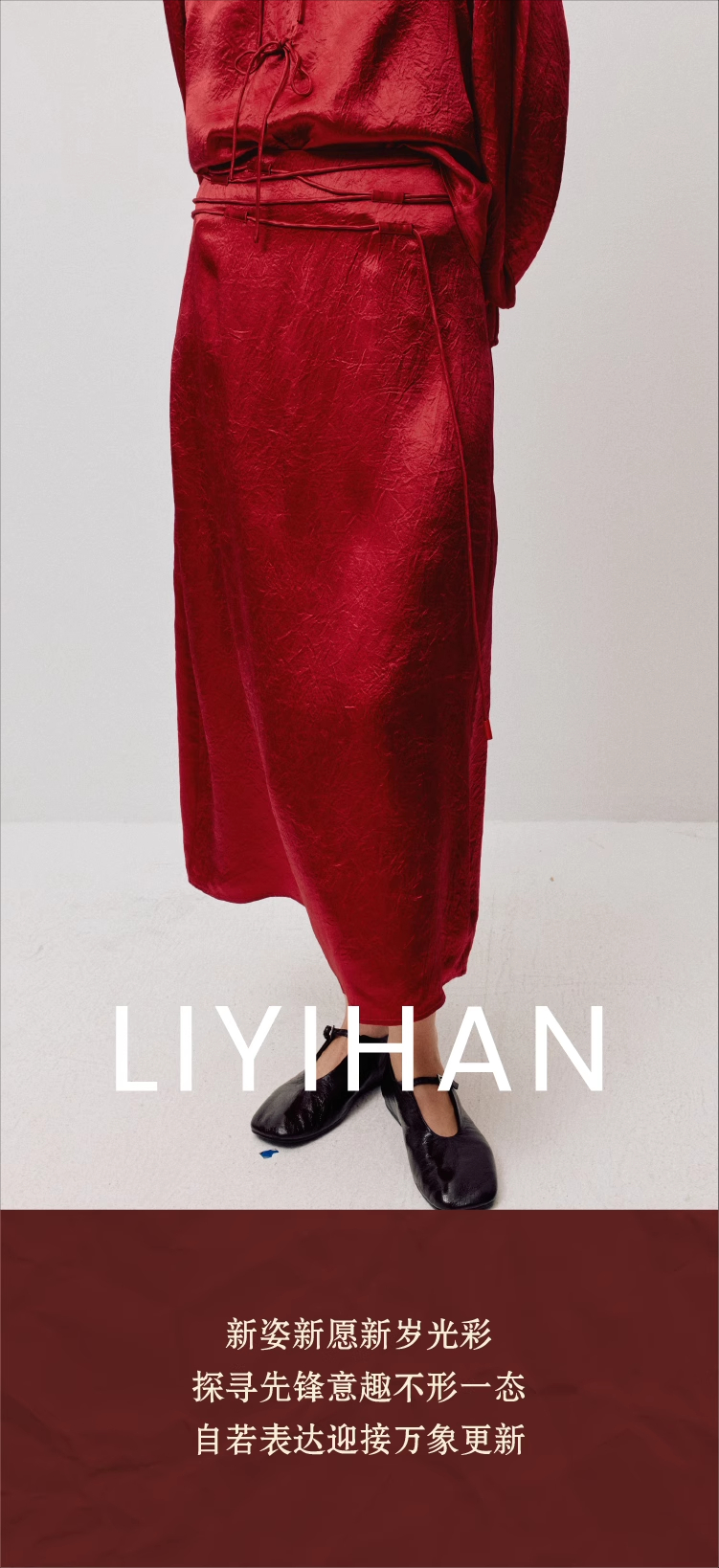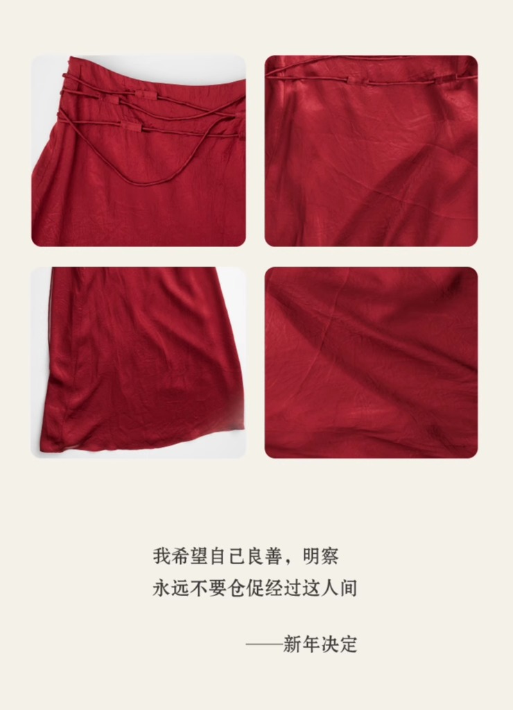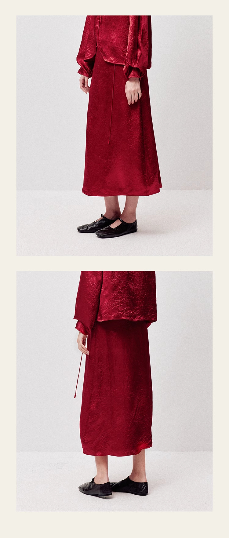 LIYIHAN红之绸丨25春新年醋酸缎面压褶半身裙女显瘦直筒包臀长裙