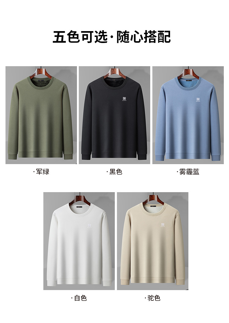 【含棉&加绒加厚】圣得西男士圆领卫衣2025秋季新款胸前logo印花T恤