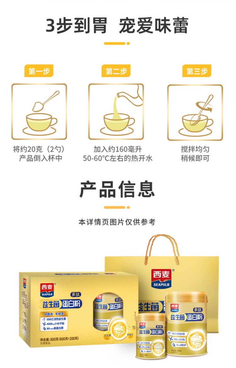 益生菌蛋白粉800g礼盒内含600g+200g独立小罐三重吸收500亿活性菌+双蛋白+小分子肽家庭健康装