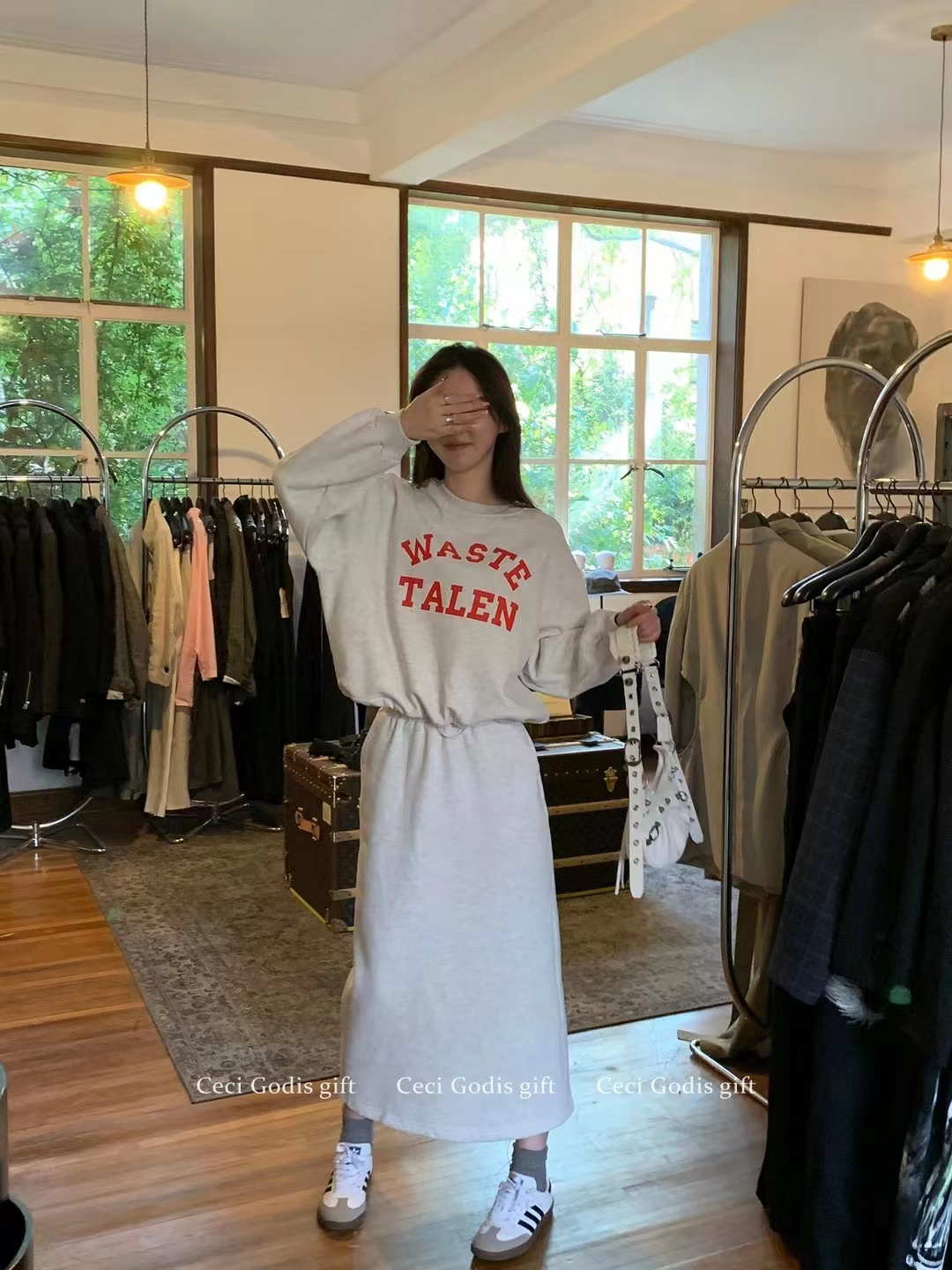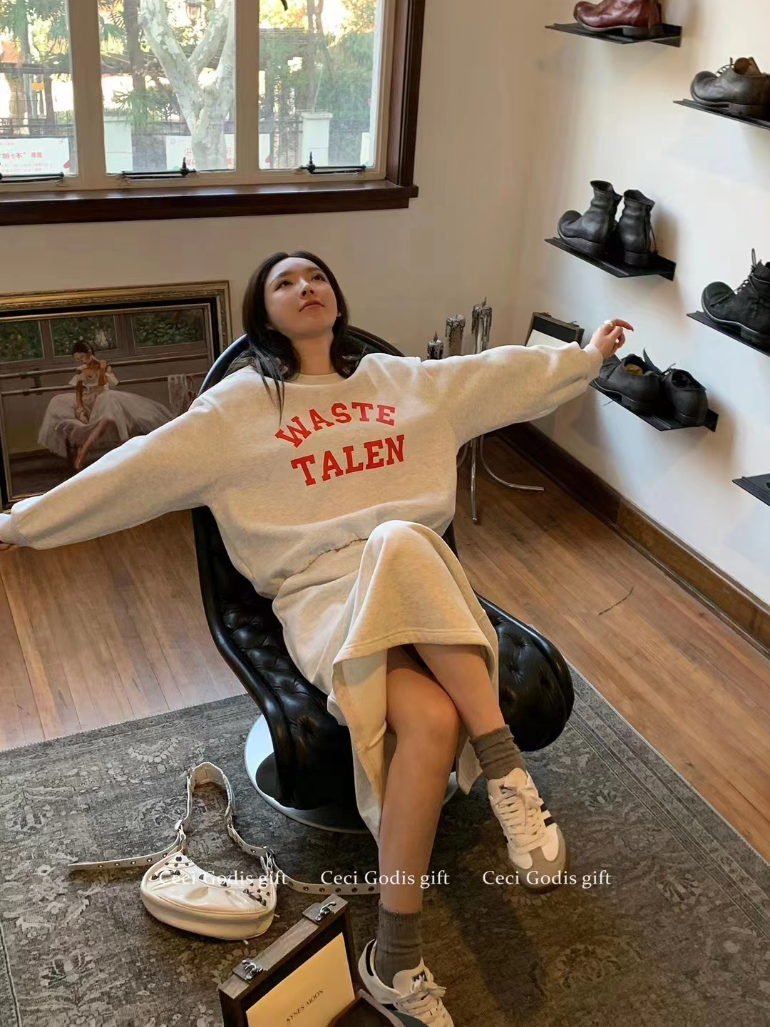 {爆款捡漏}【YW】无忧购春季闺蜜款韩系甜美风字母印花卫衣+半身裙套装99371(2.9截单后7天发货)25年清仓捡漏