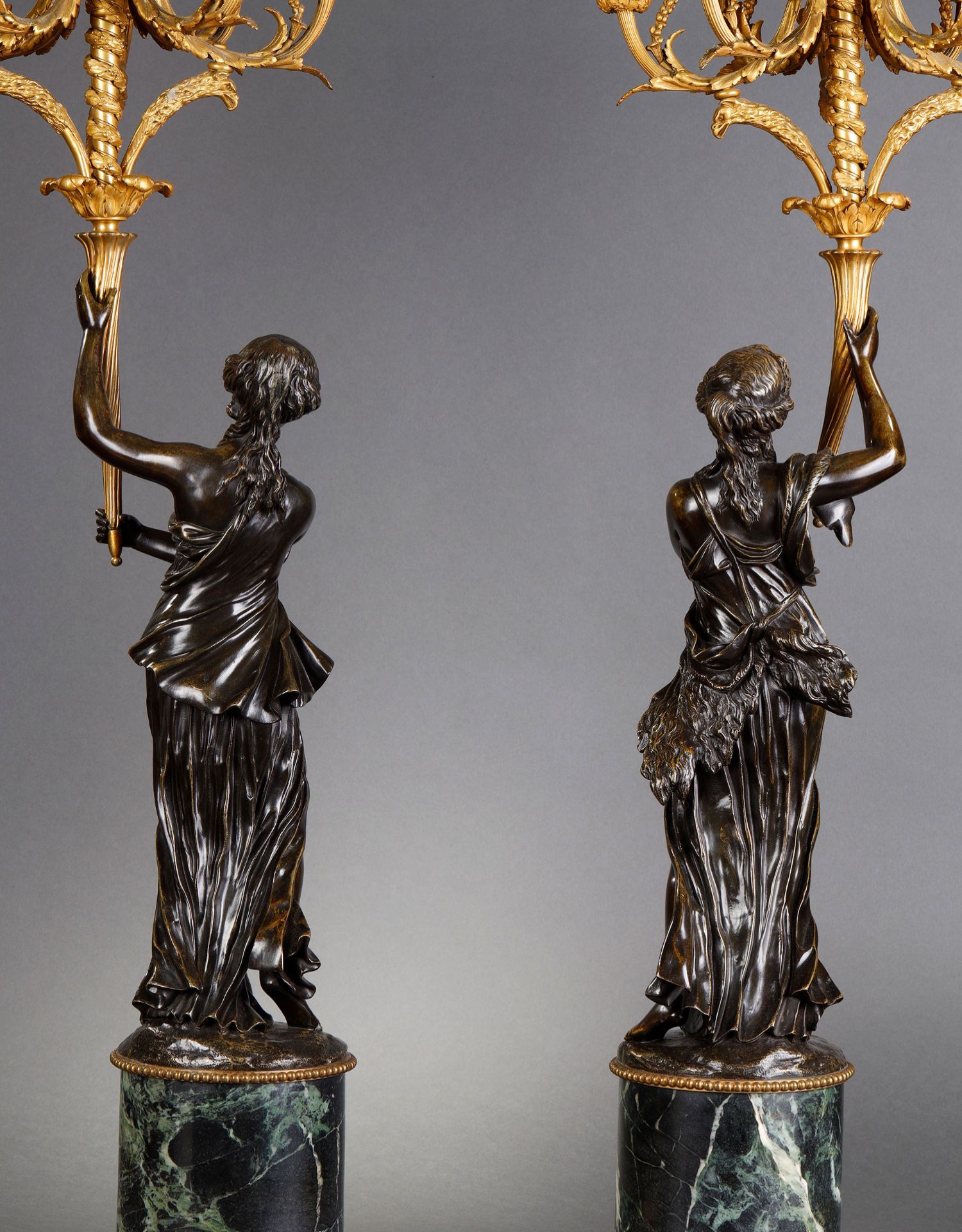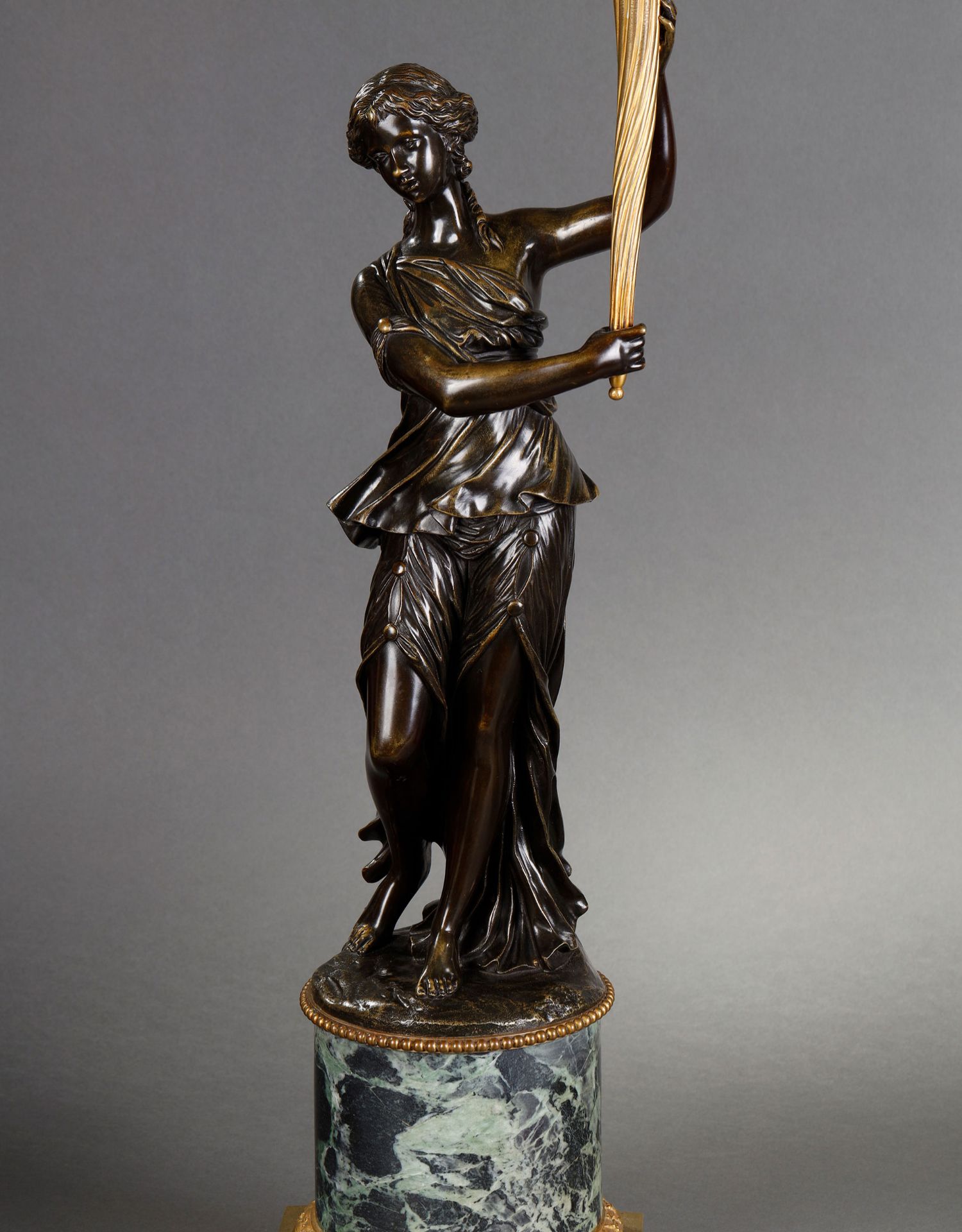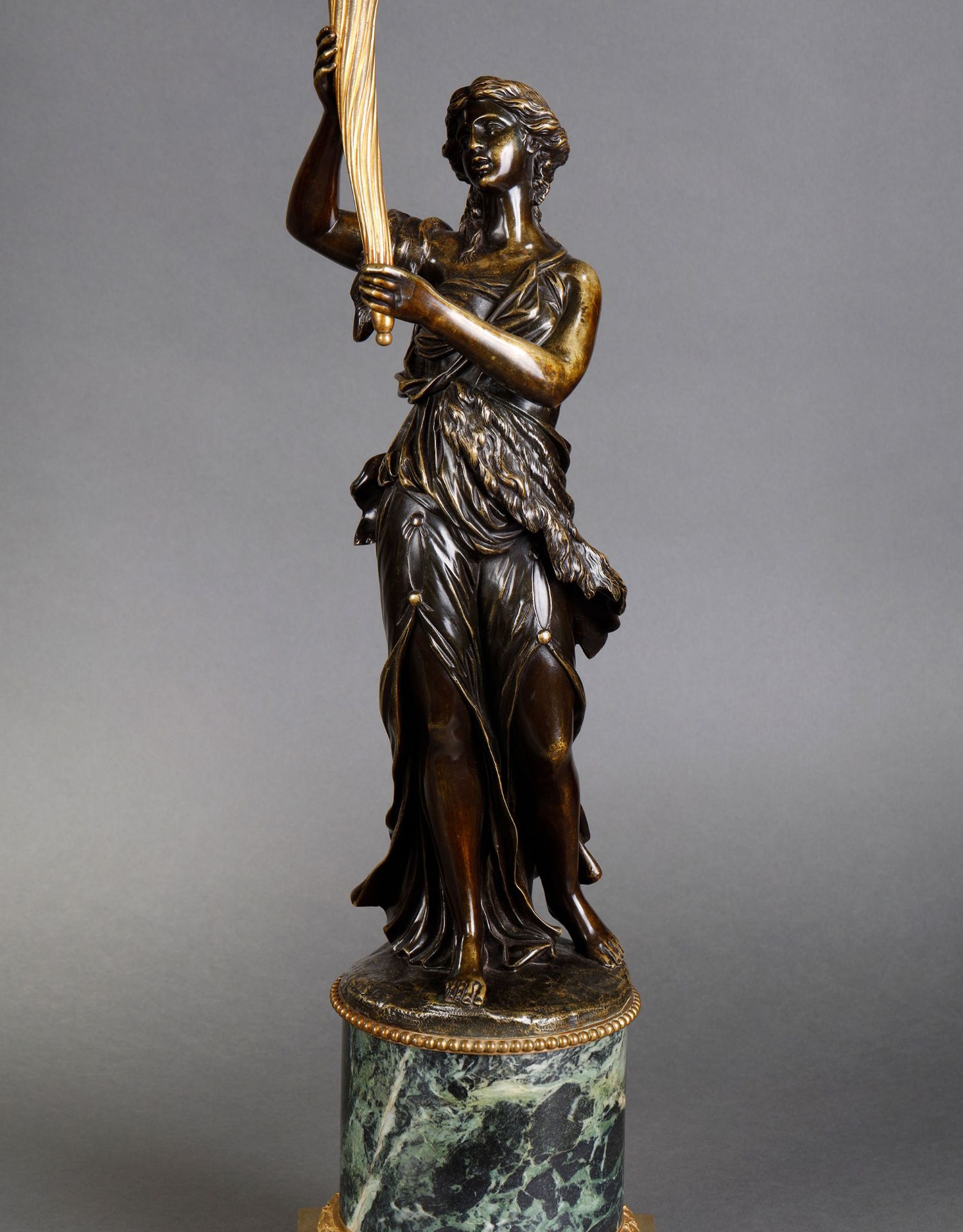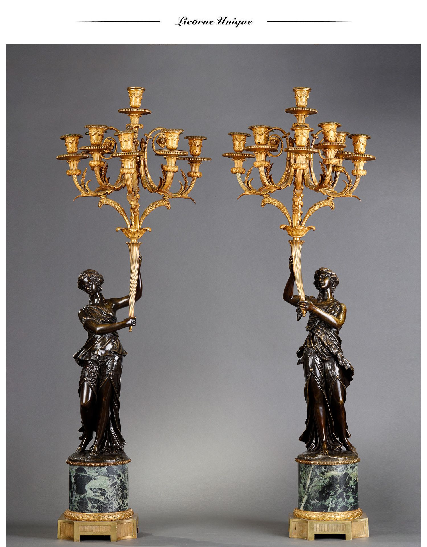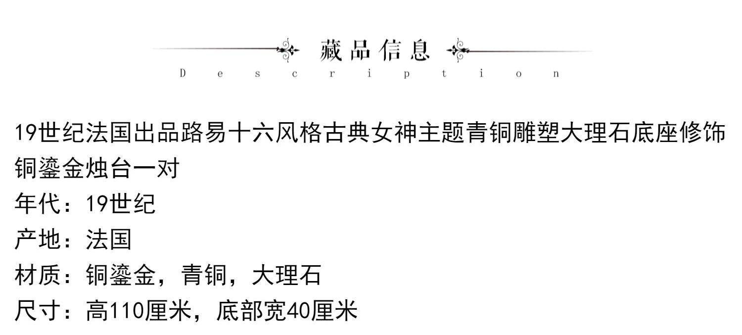 独角鹿西洋古董路易十六风古典女神青铜雕塑大理石底座铜鎏金烛台