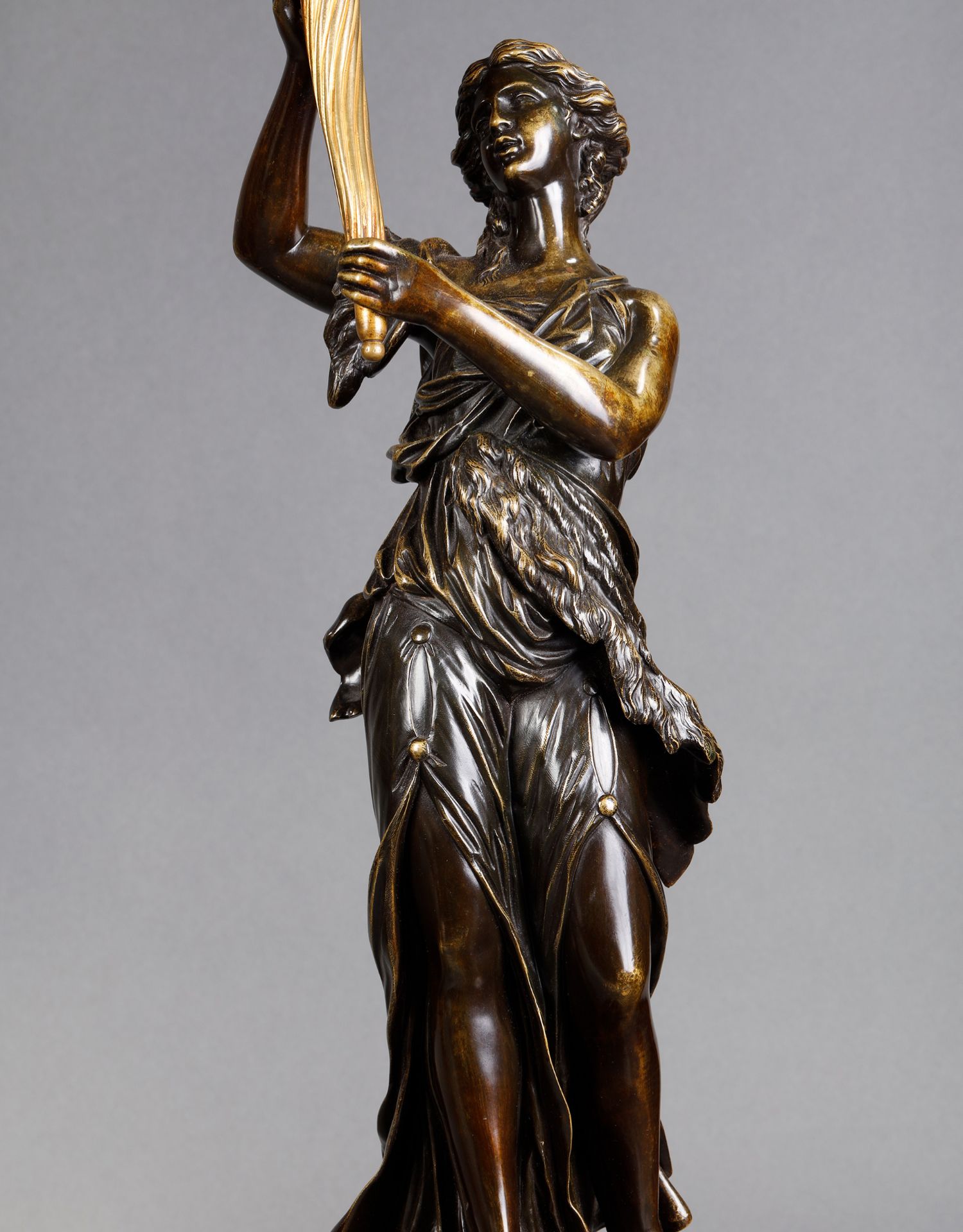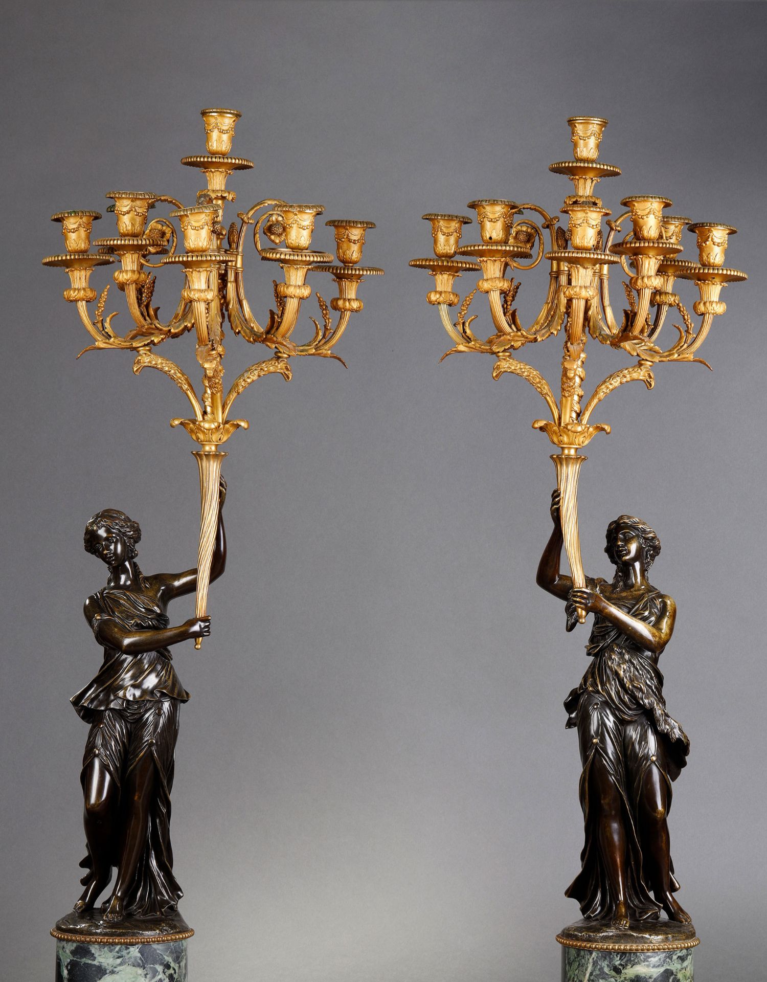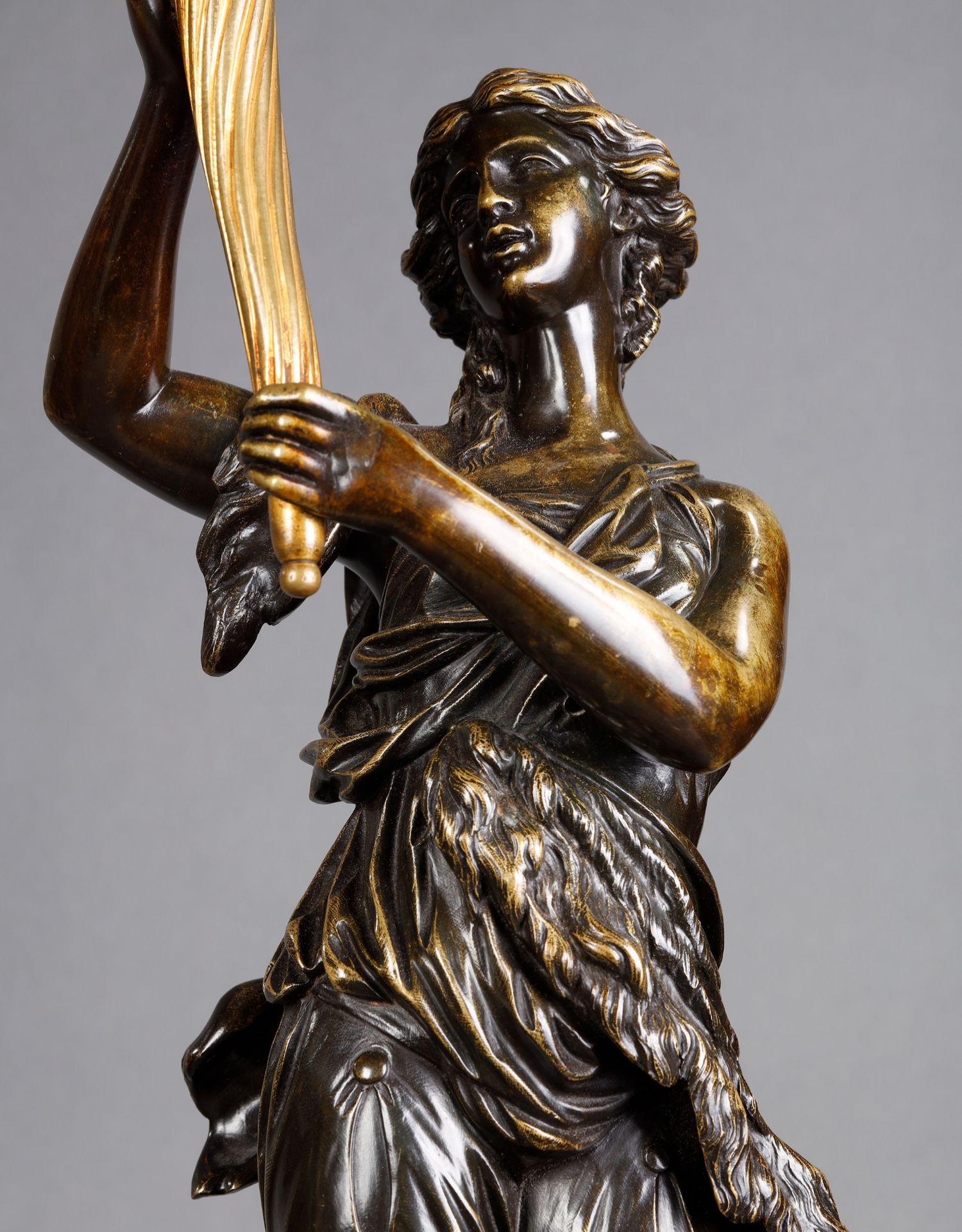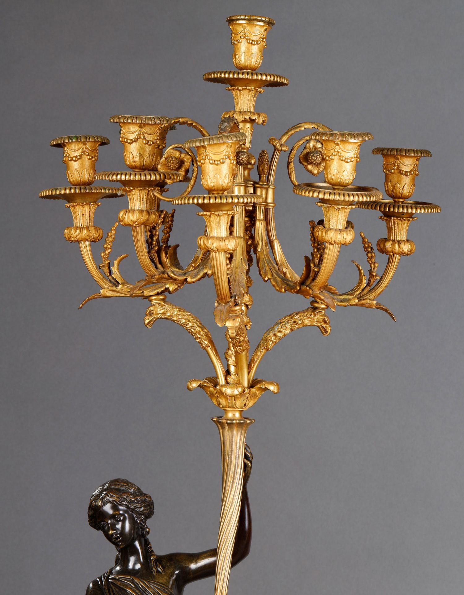 独角鹿西洋古董路易十六风古典女神青铜雕塑大理石底座铜鎏金烛台