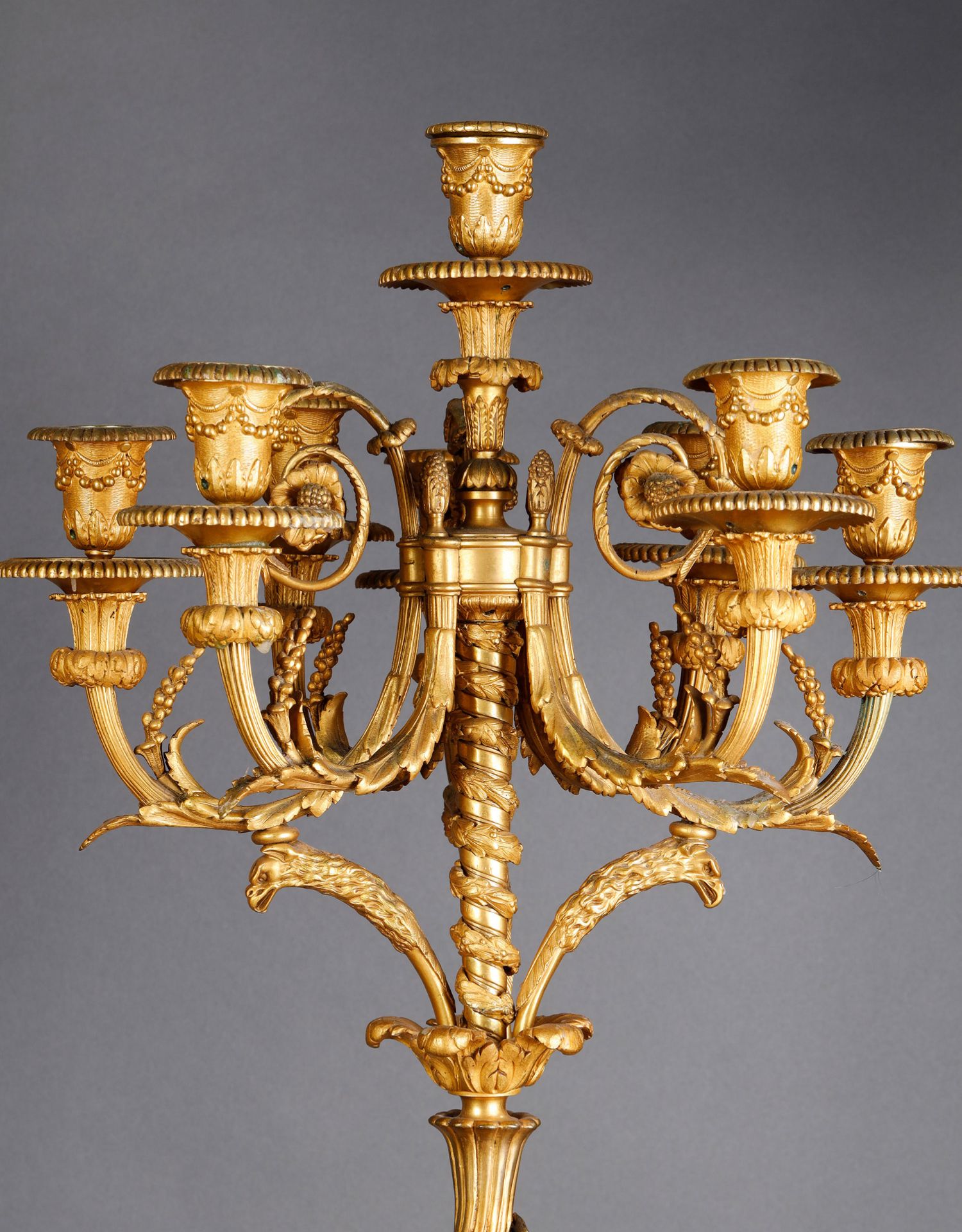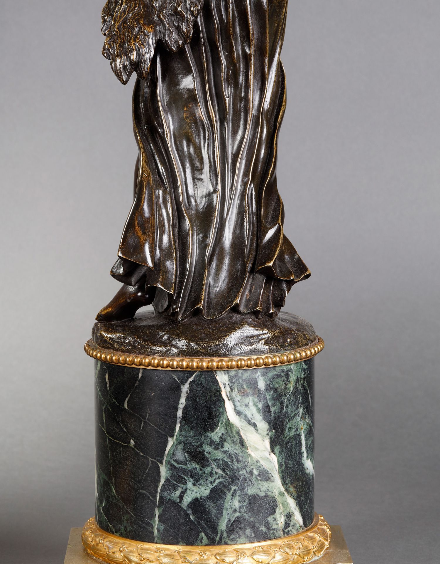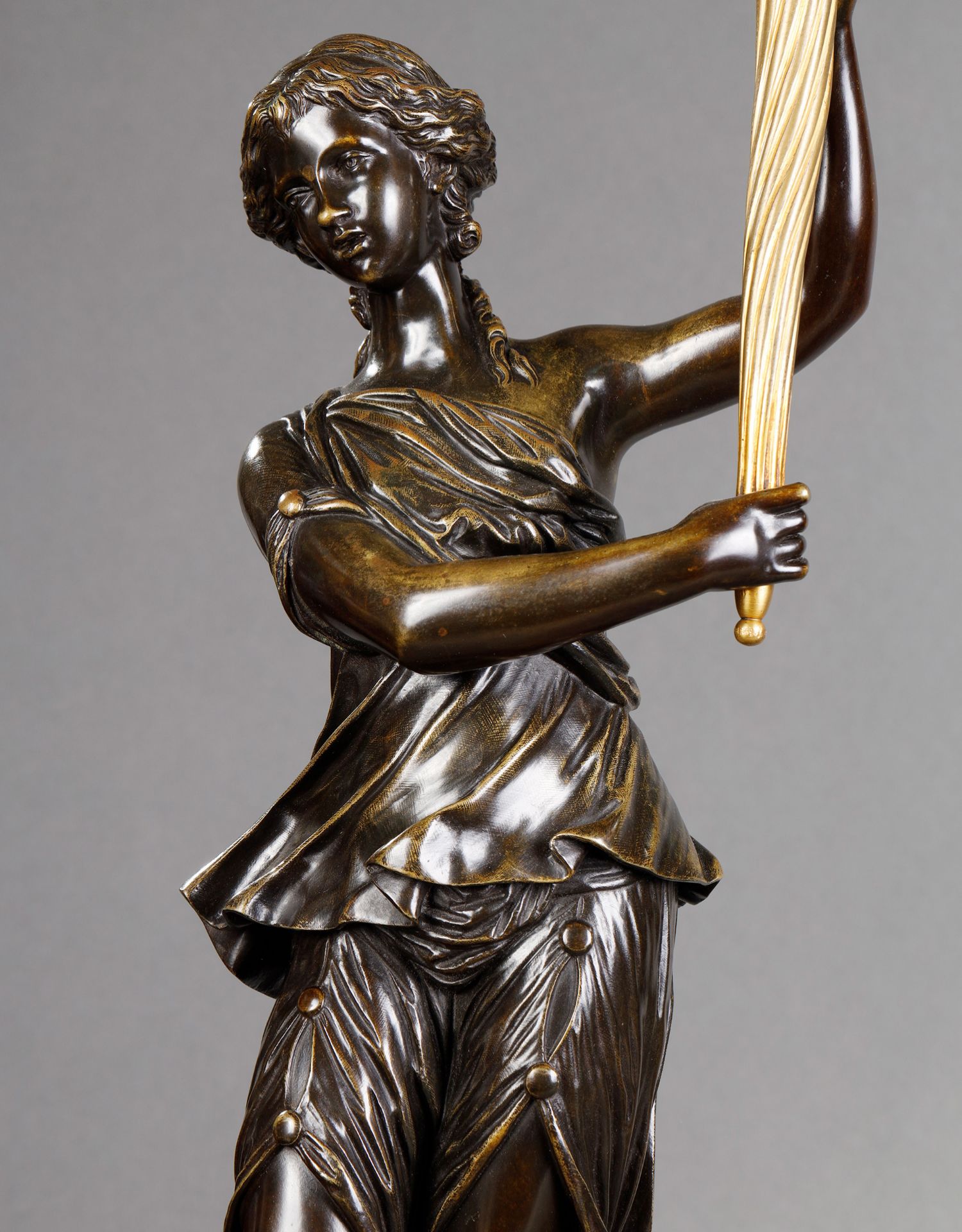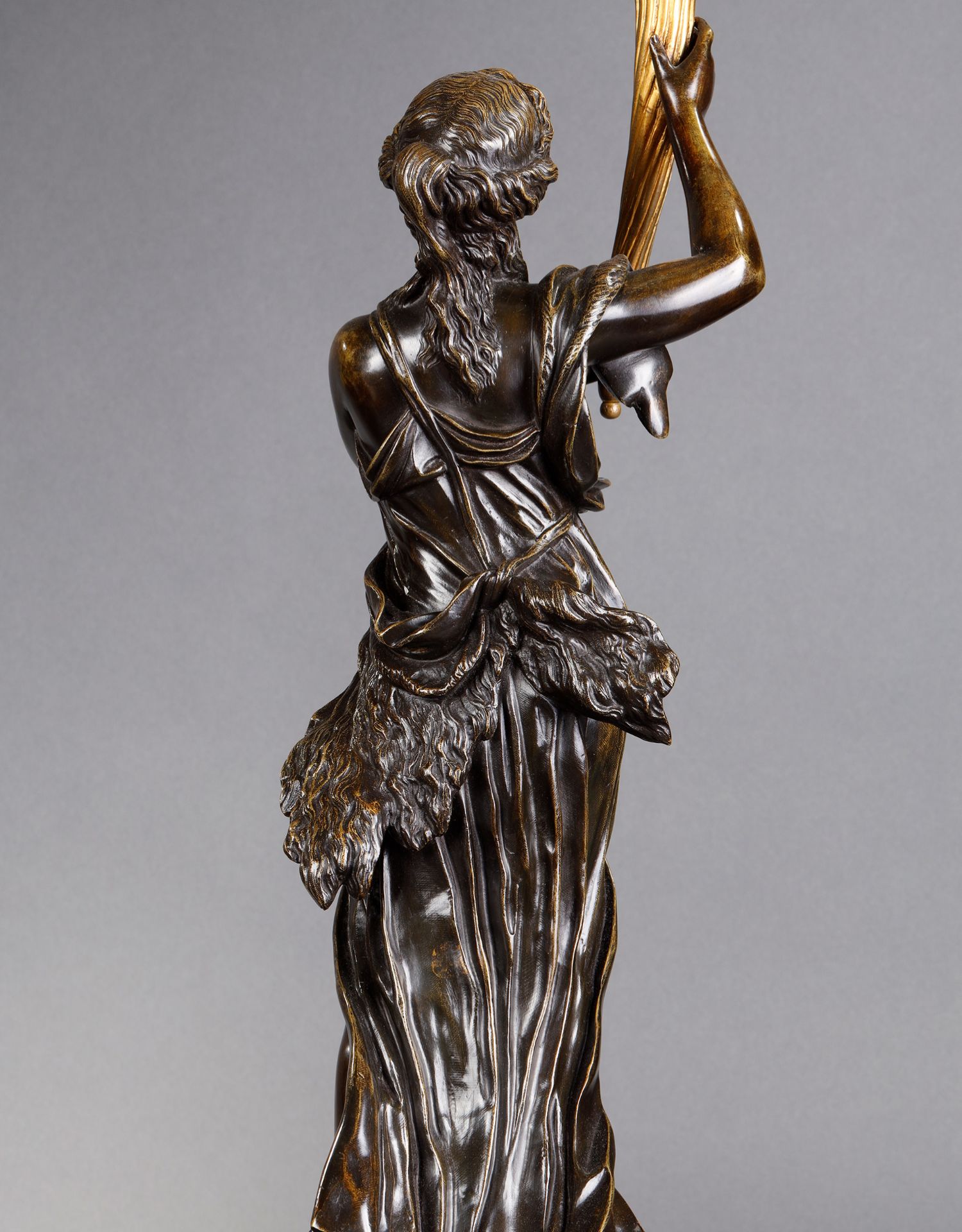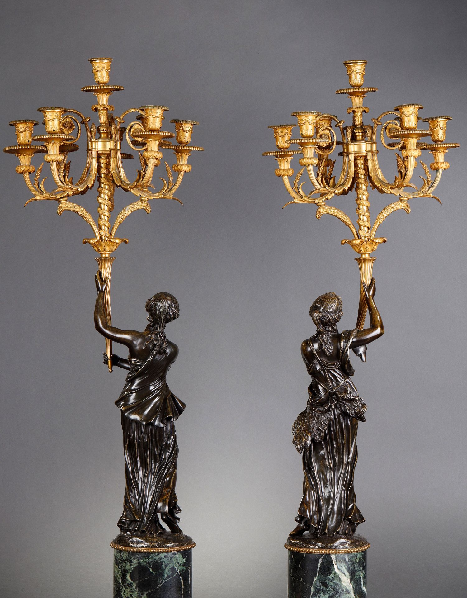 独角鹿西洋古董路易十六风古典女神青铜雕塑大理石底座铜鎏金烛台