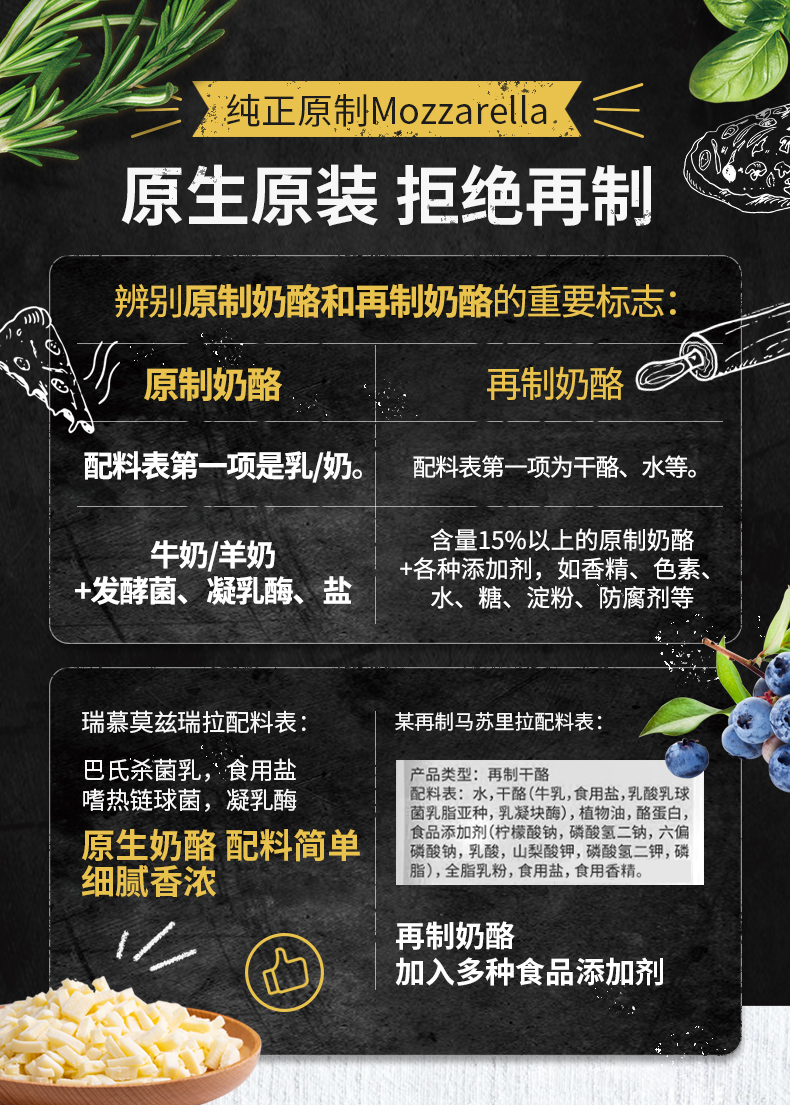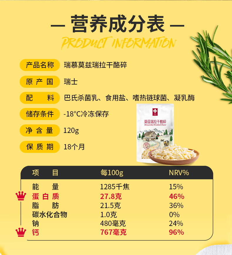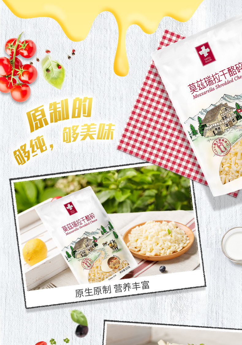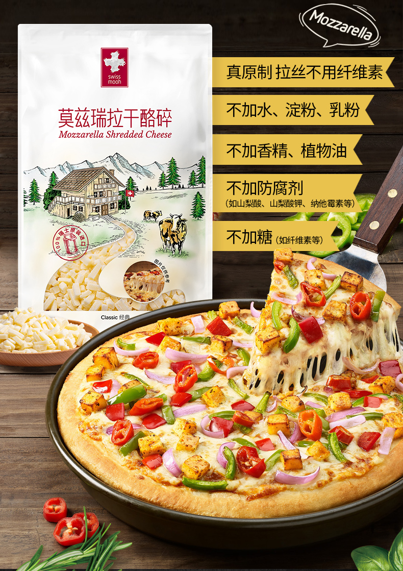 【真正原制奶酪!】瑞士原装进口瑞慕原制马苏里拉芝士碎披萨拉丝奶酪120g*5