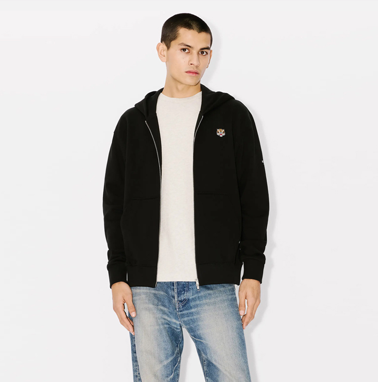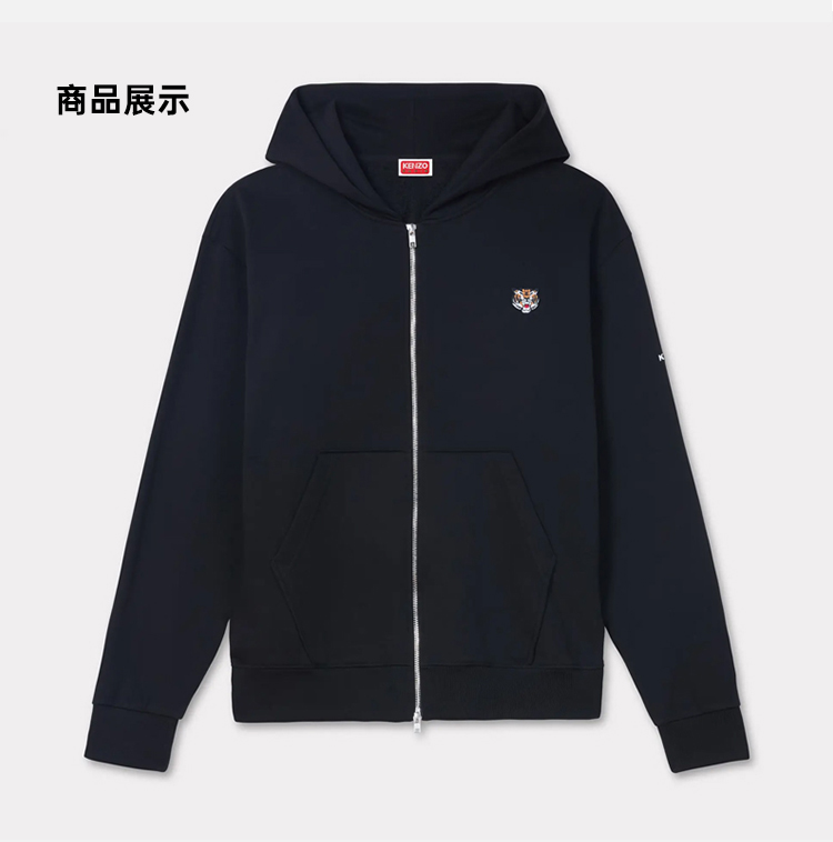 KENZO 高田贤三 男士小虎头刺绣徽标拉链连帽卫衣 黑色 FE55 SW196 4MF 99J
