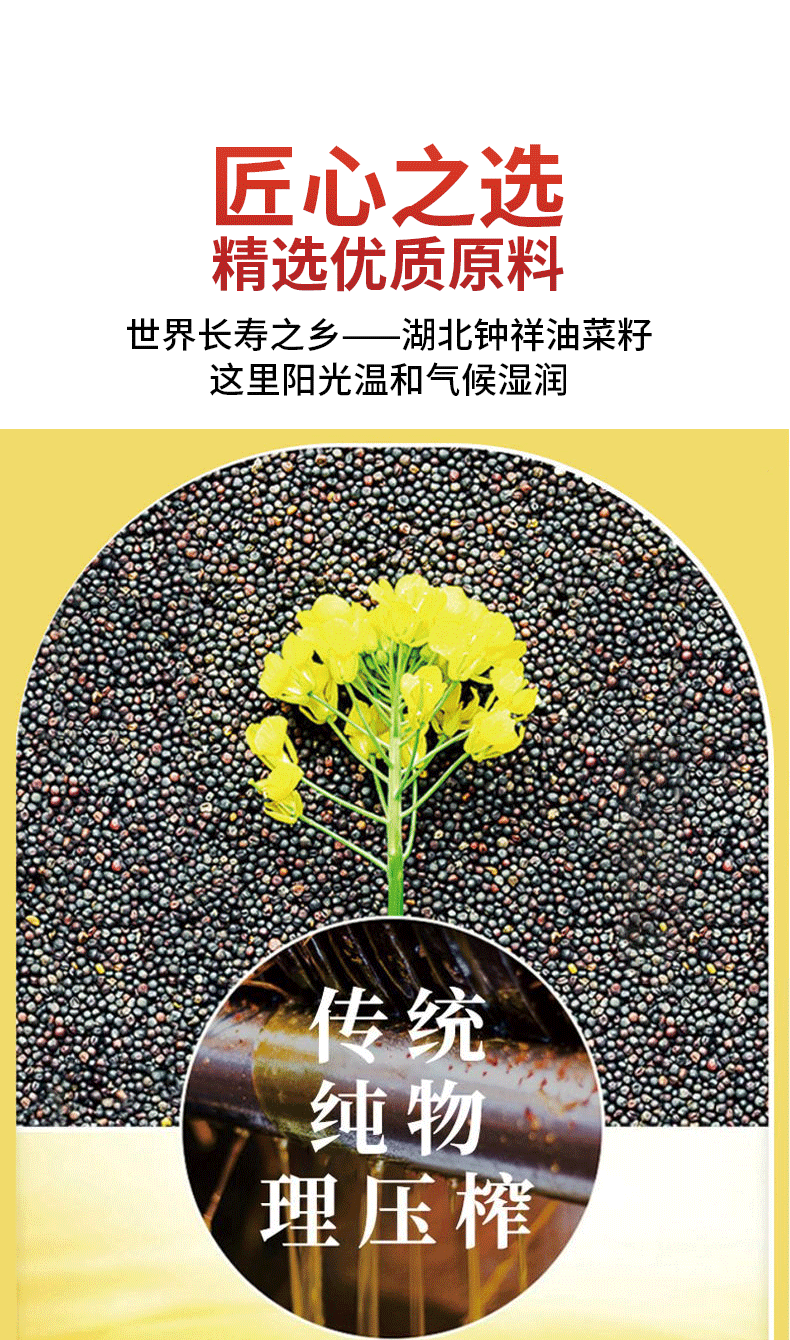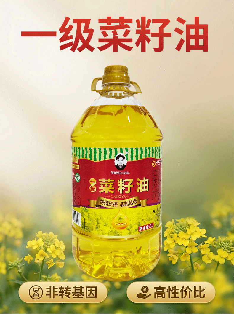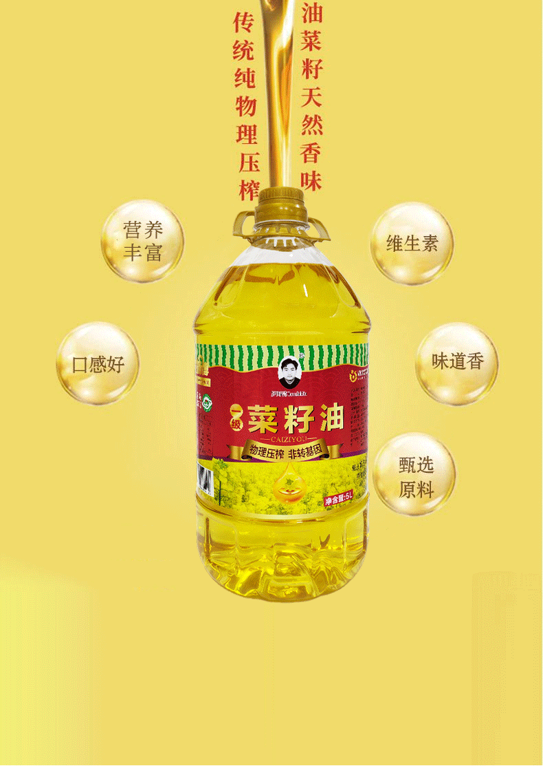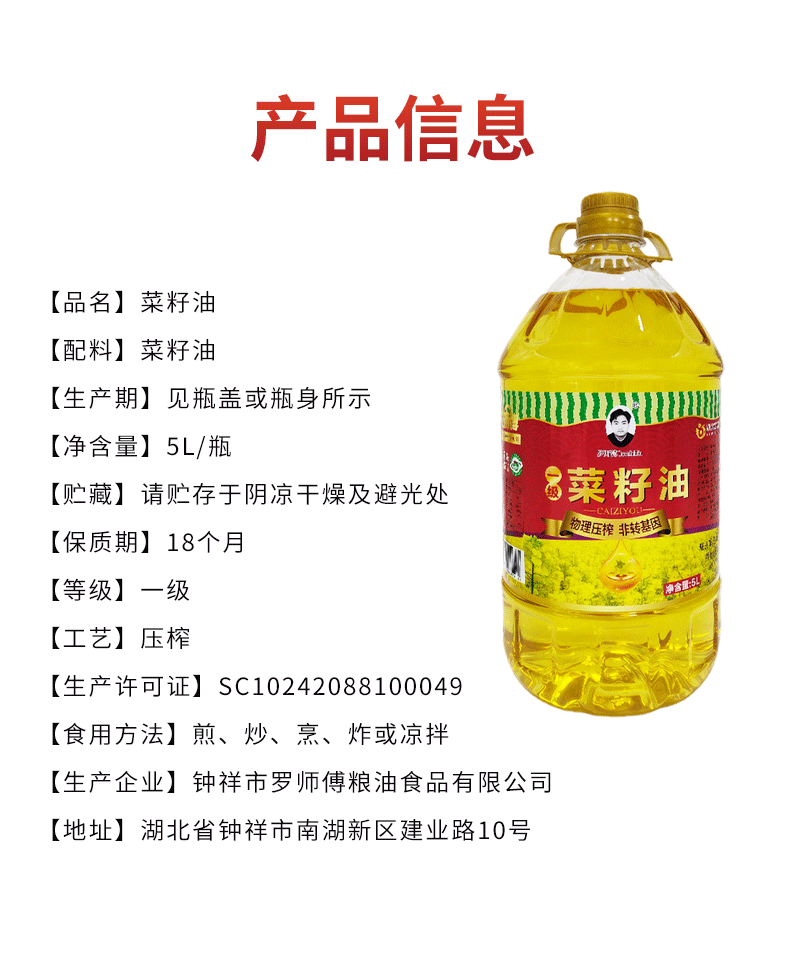 【严选】荆楚好粮油 物理压榨非转基因罗师傅一级菜籽油5L (厂家直发)