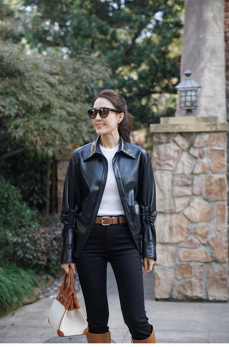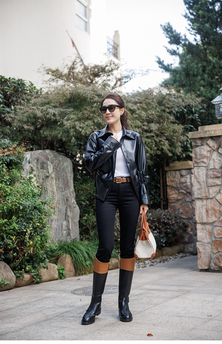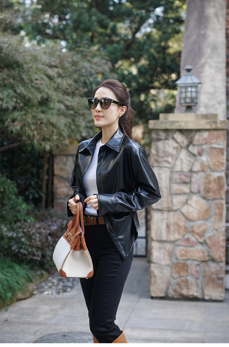 “仿生胶原蛋白皮” 环保弹力仿小羊皮手感皮衣衬衫