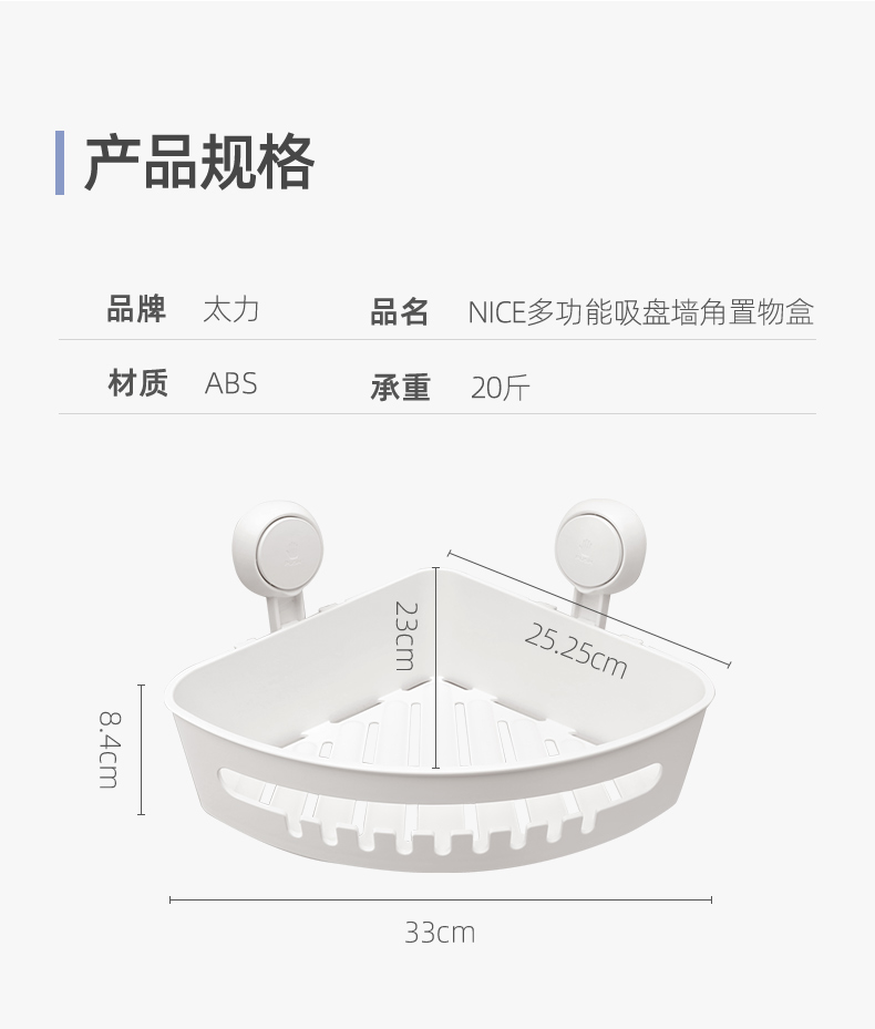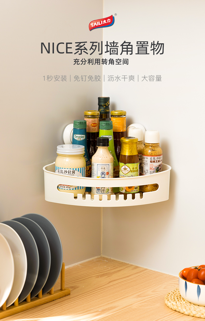 太力(TAILI)多功能吸盘墙角置物盒AW557