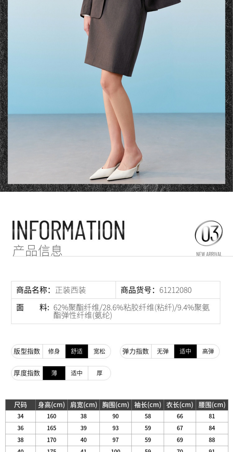 G2000女装SS26商场新款【凉感/防紫外线/可机洗/配胸针】通勤西装61212080