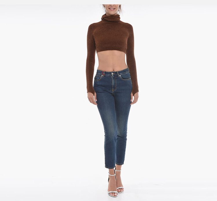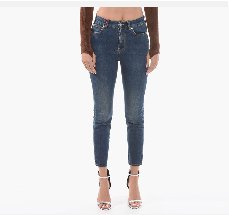 ALEXANDER MCQUEEN 亚历山大.麦昆 女士徽标贴花棉质休闲牛仔裤 深蓝色 658059 QMABH 4098