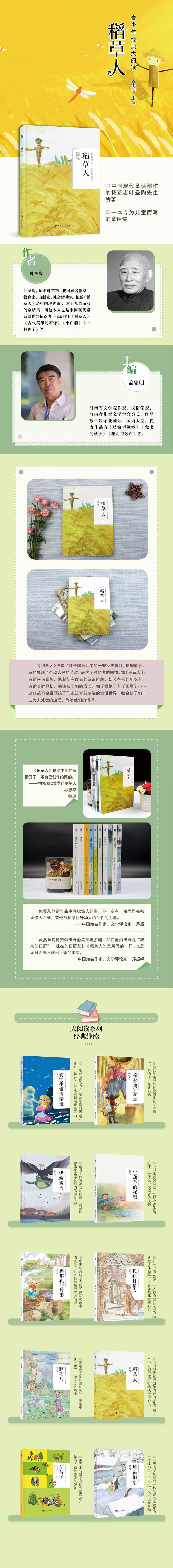 叶圣陶是我国名的作家、教育家、编辑家,也是中国现代童话创作的拓荒者。他写的童话语言朴实而活泼,内涵深厚又浅显易懂。这本《稻草人》收录了叶圣陶童话中的一些经典篇目。这些故事,有的展现了劳动人民的苦难,表达了对弱者的同情,如《稻草人》;有的诙谐睿智,讽刺徒有虚名的统治阶级,如《皇帝的新衣》;有的言辞恳切,关注孩子们的成长,如《梧桐子》《画眉》……这些故事会带领孩子们走进奇幻多姿的童话世界,教会孩子们一些为人处世的道理,陶冶他们的情操。
