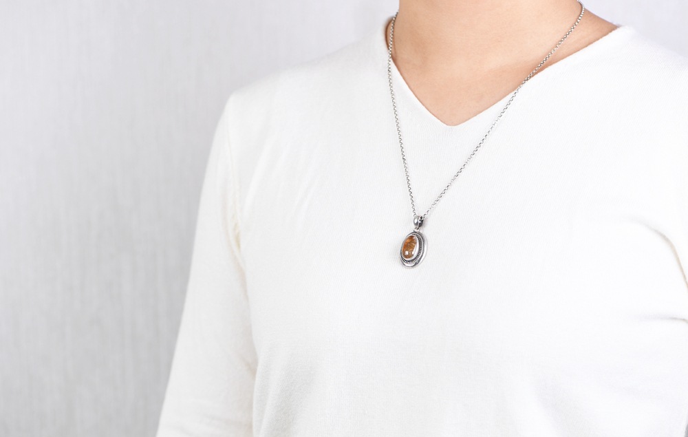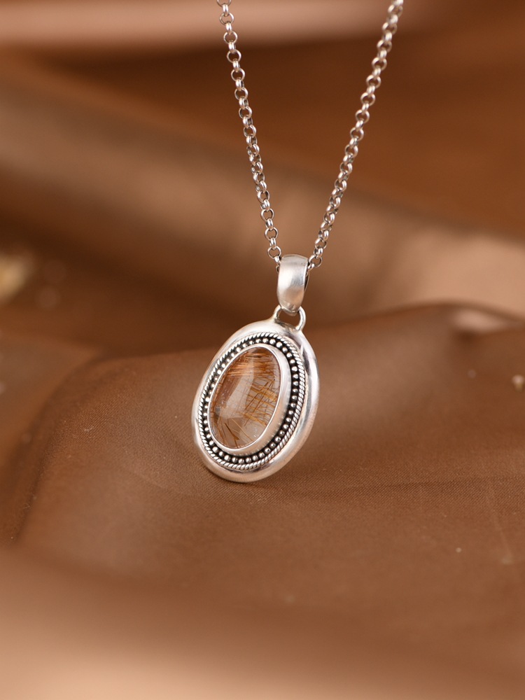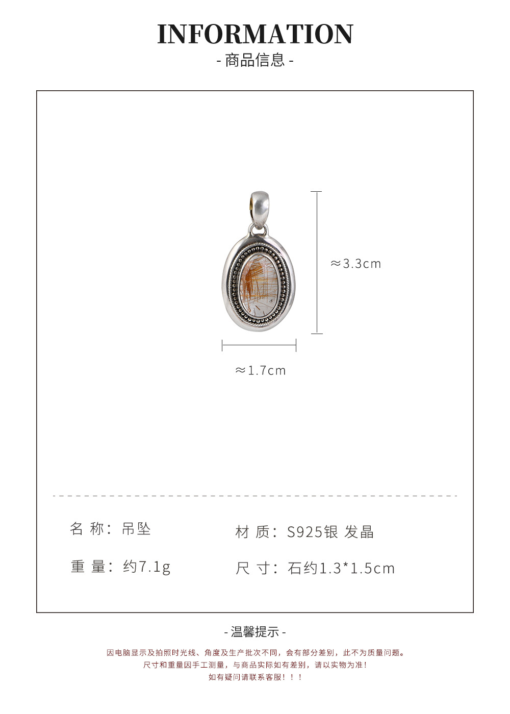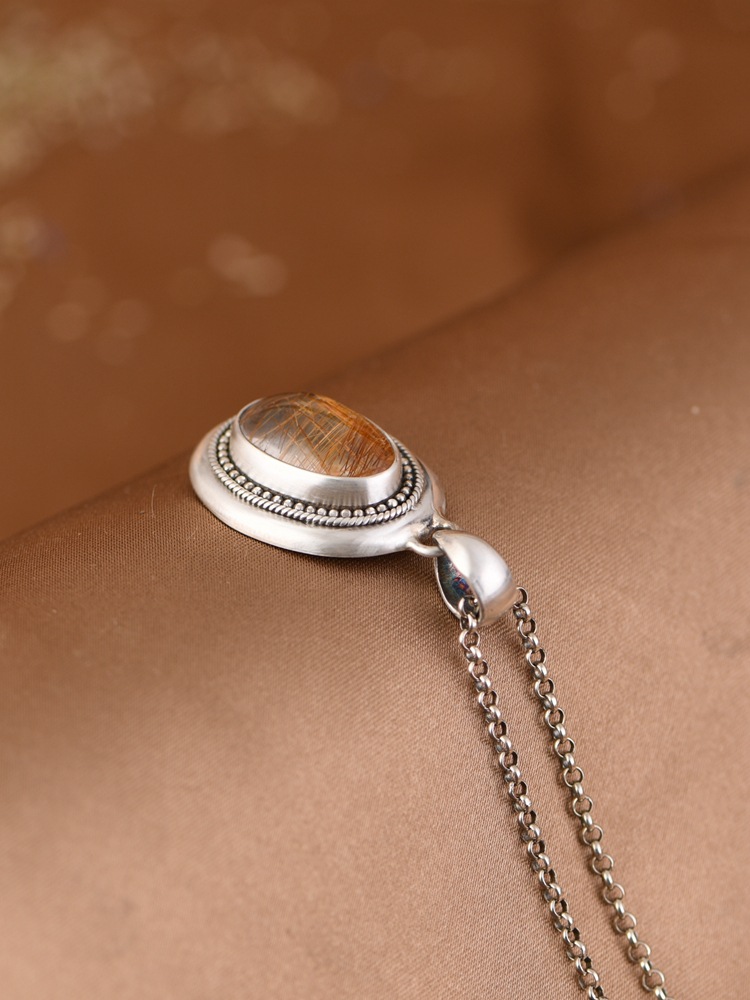 【春晖丽影】S925银复古做旧镶嵌发晶水晶吊坠【SCH-TRS13034】