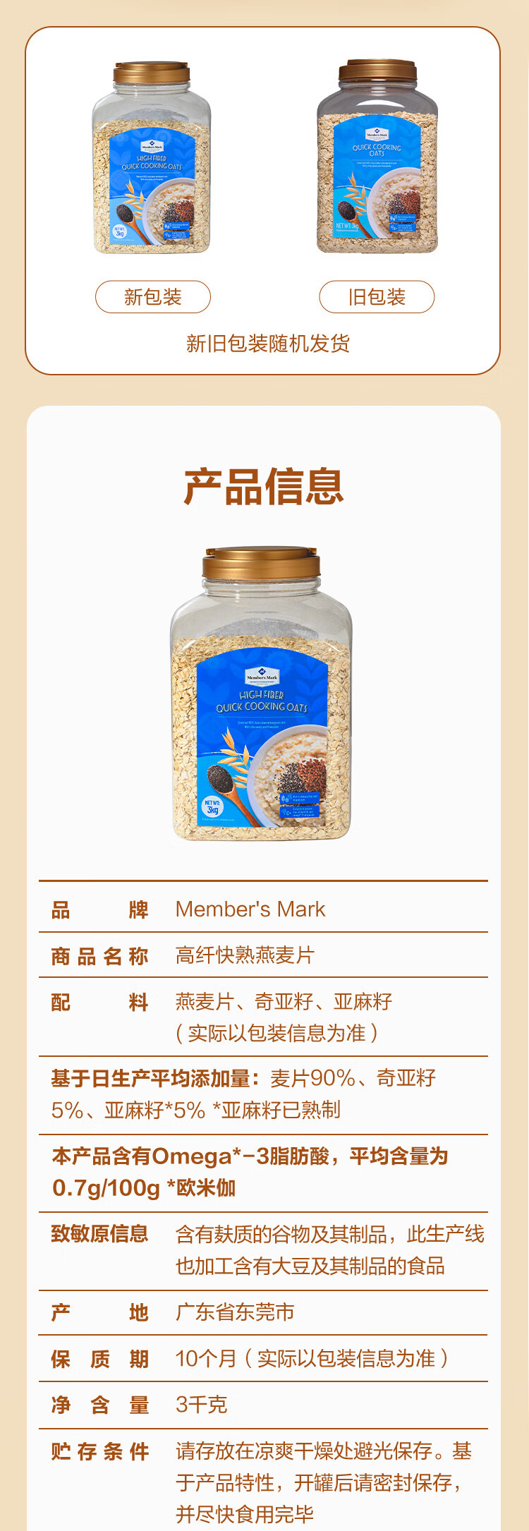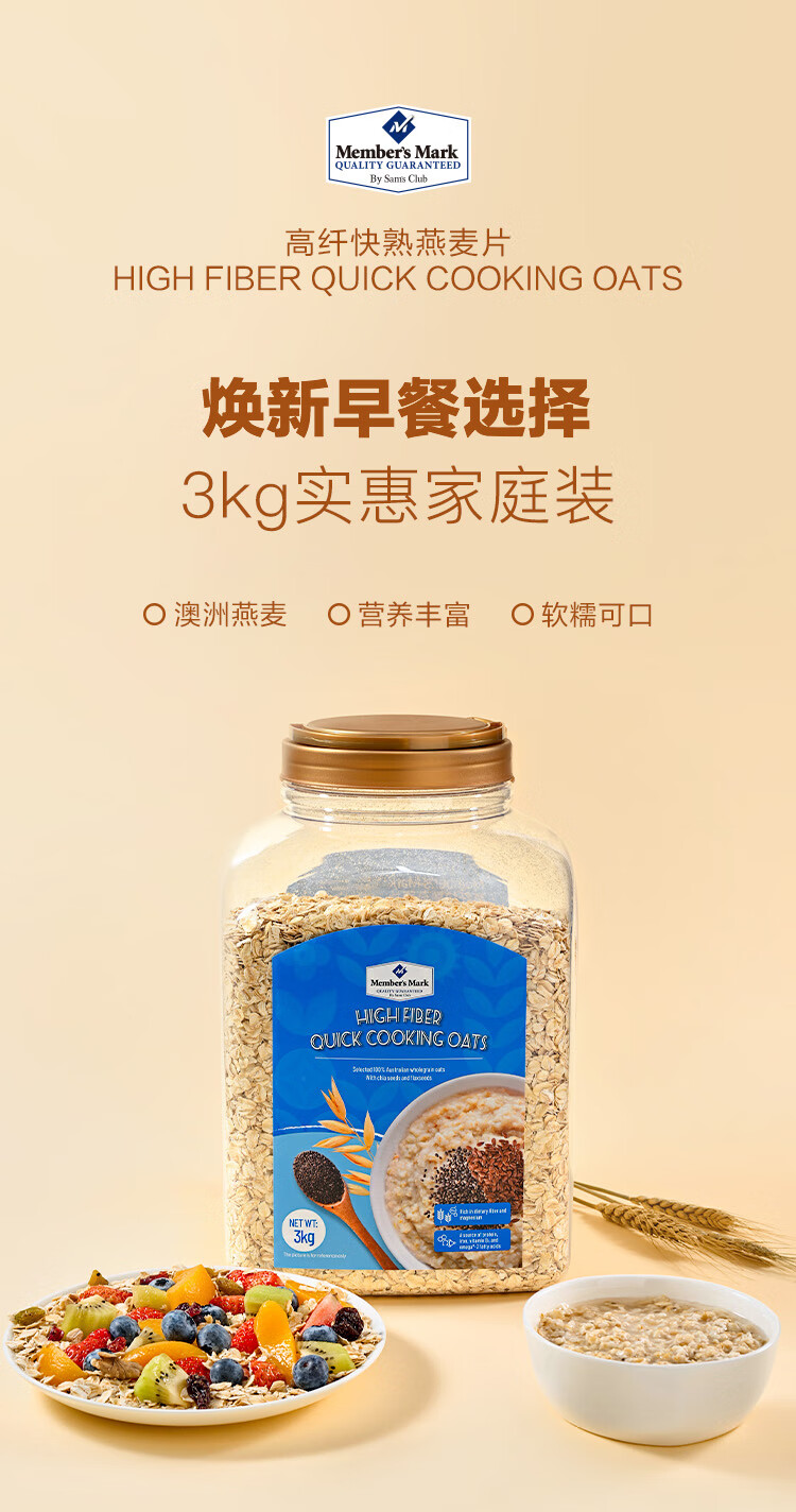 【山姆】Member's Mark 高纤快熟燕麦片 3kg