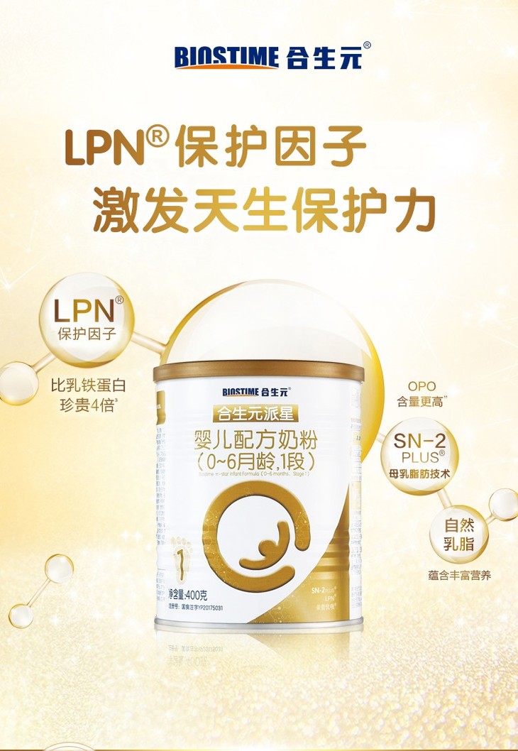 合生元派星婴儿配方奶粉400g1段