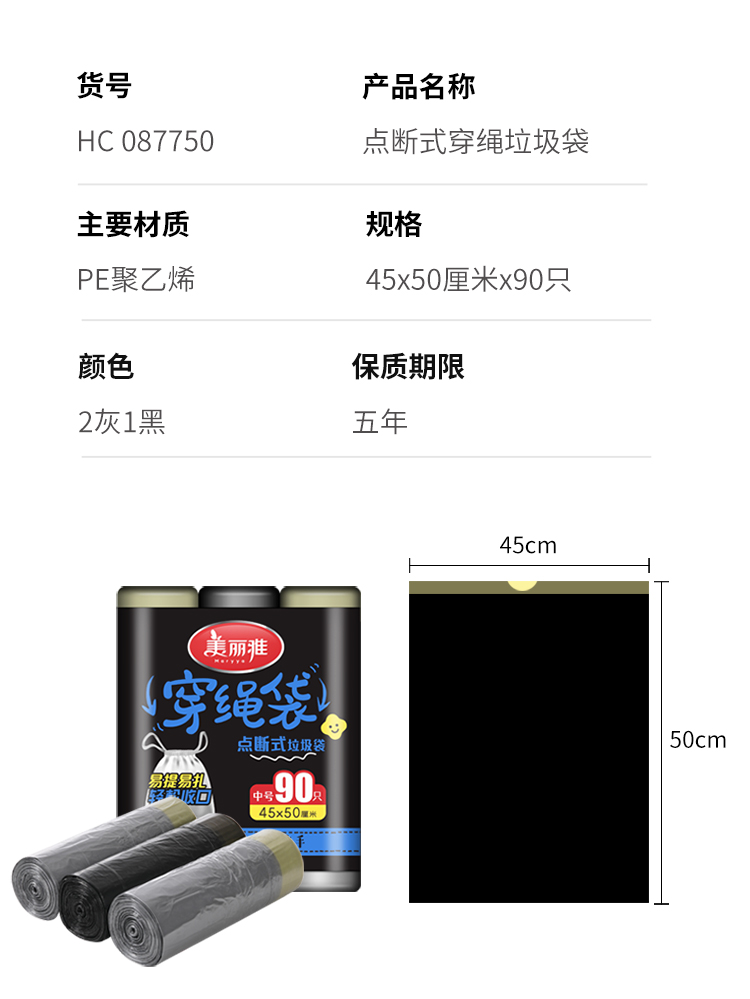 【批发】美丽雅穿绳点断式垃圾袋45*50cm 90只