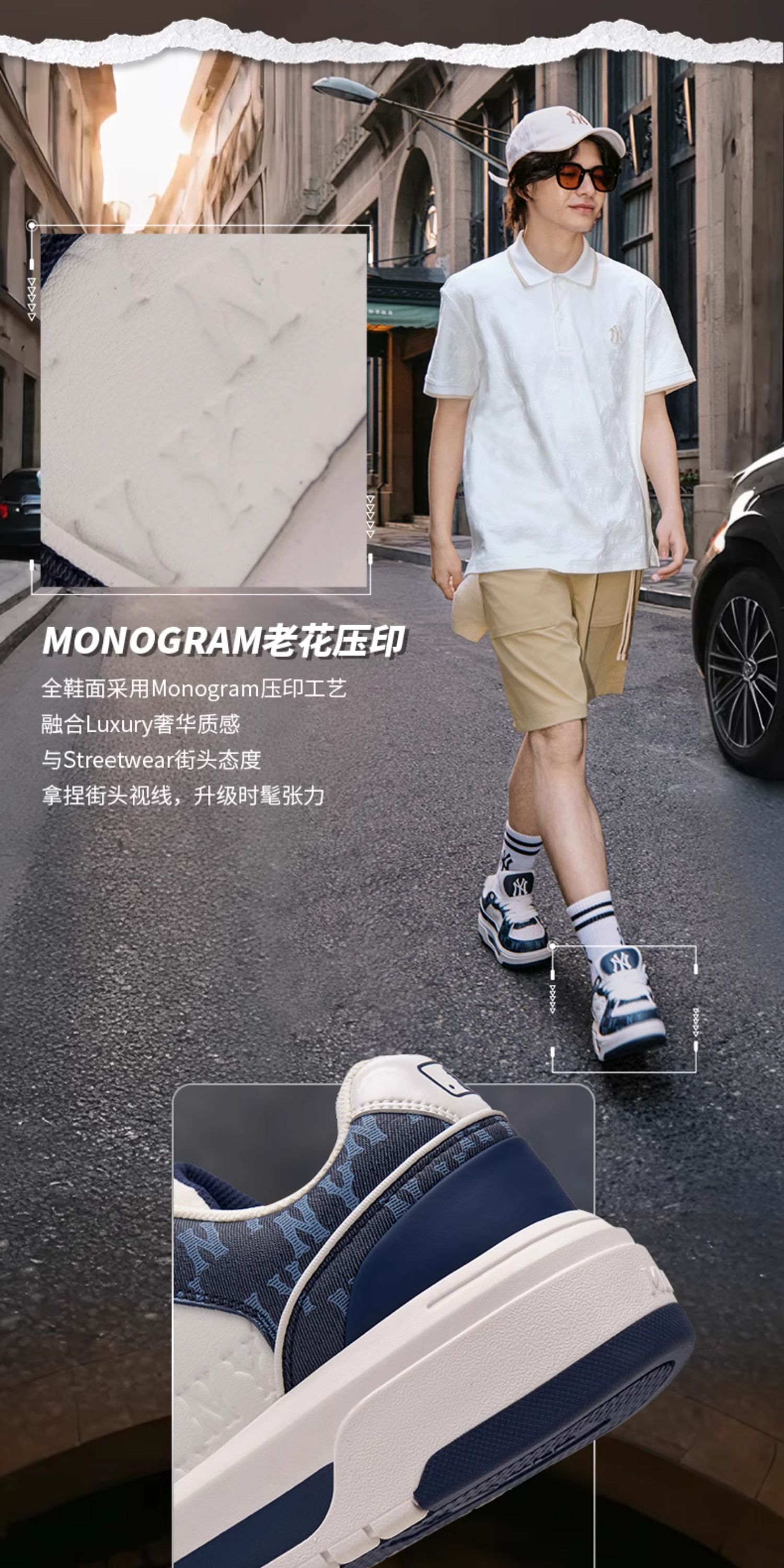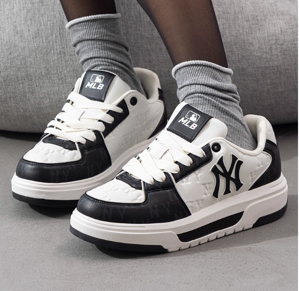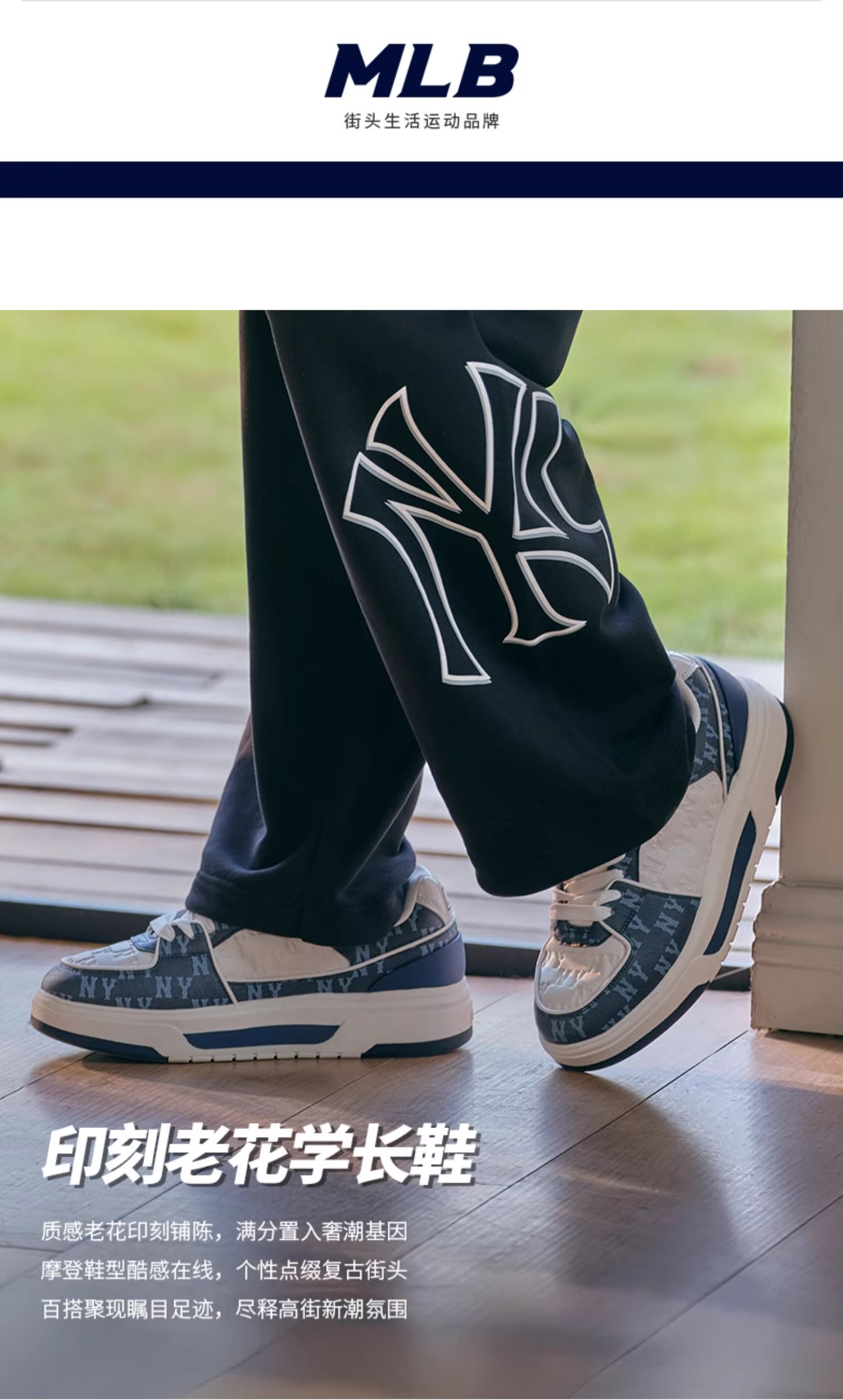 【奥莱直发 潮流百搭 】MLB 印刻老花鞋板鞋休闲鞋厚底鞋 暗纹立体印花 男女同款