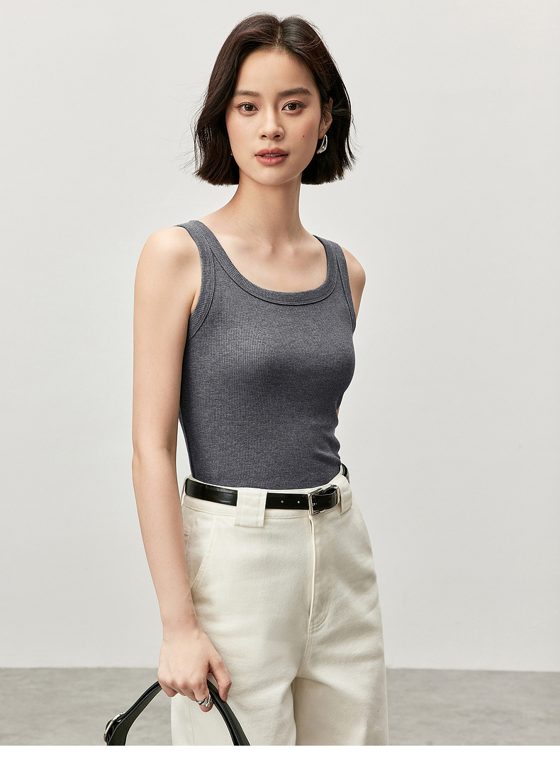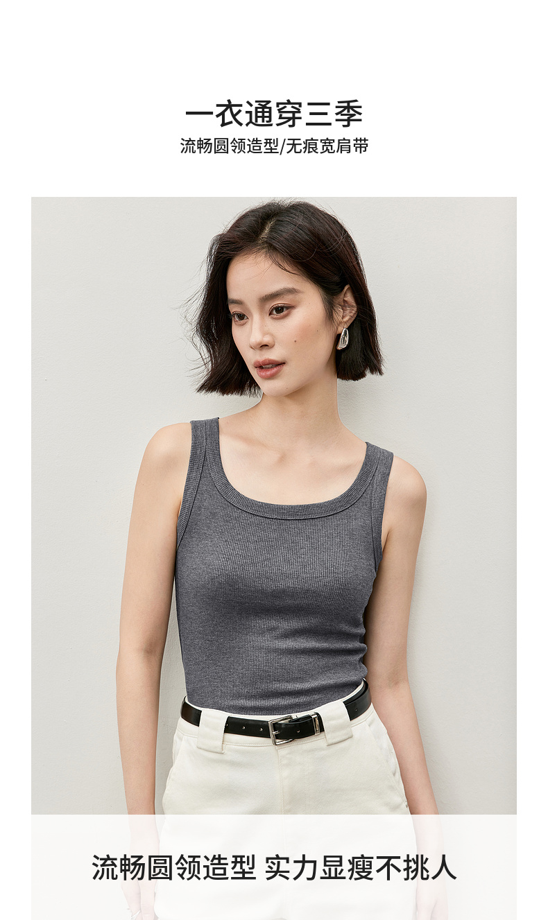 【内购】简约基础款圆领宽肩带无袖遮副乳清爽毛织宽吊带背心-W53IC3958X