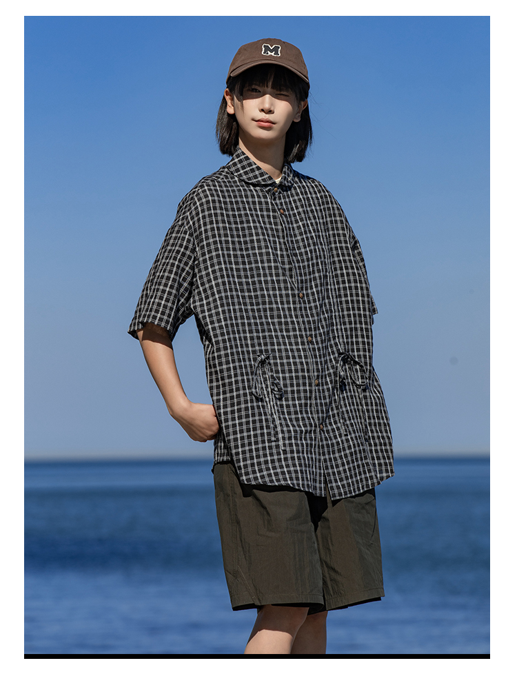 早乙女惠子saotome/STMCS242080/提花格纹青果领抽褶短袖衬衫