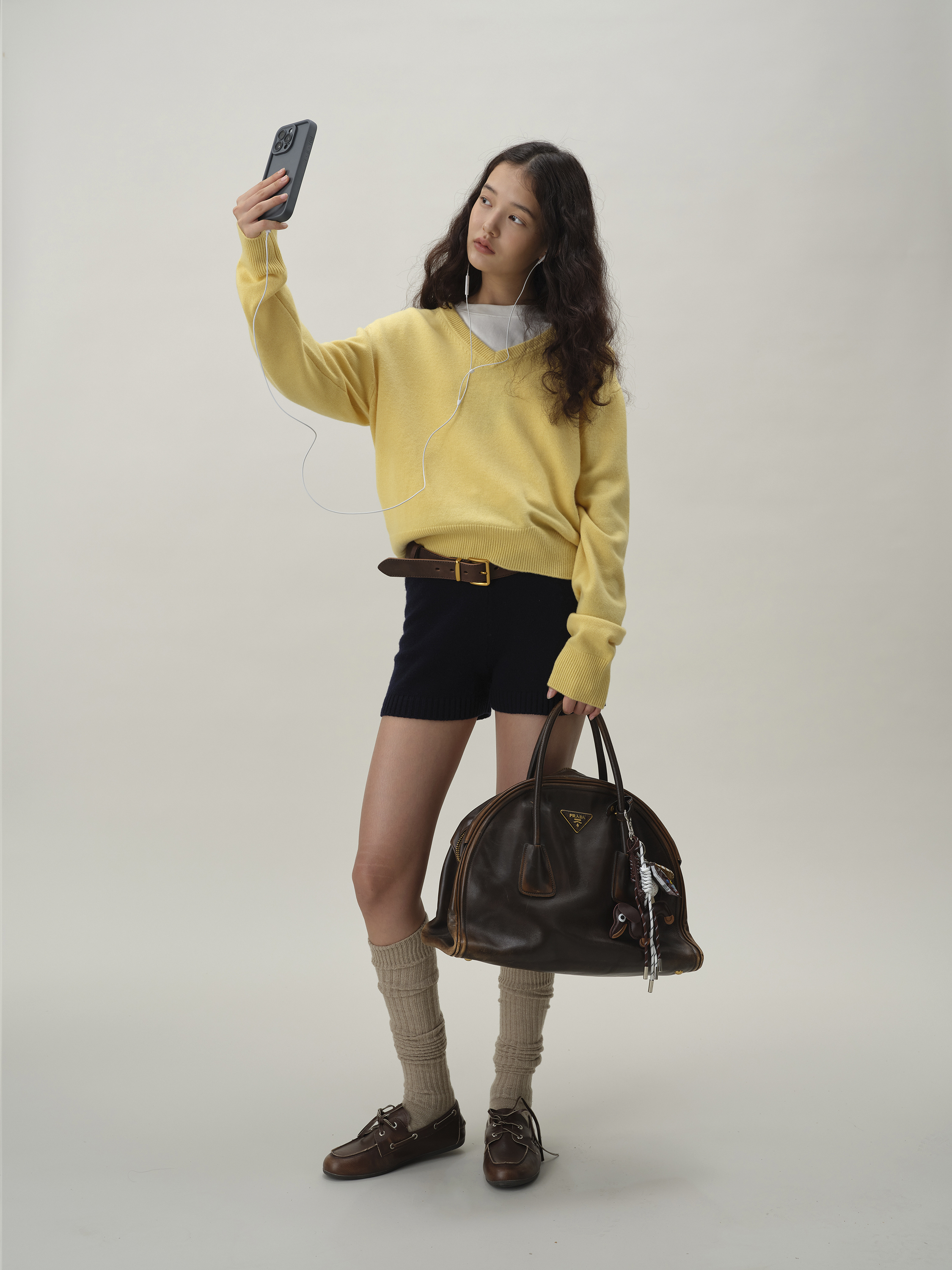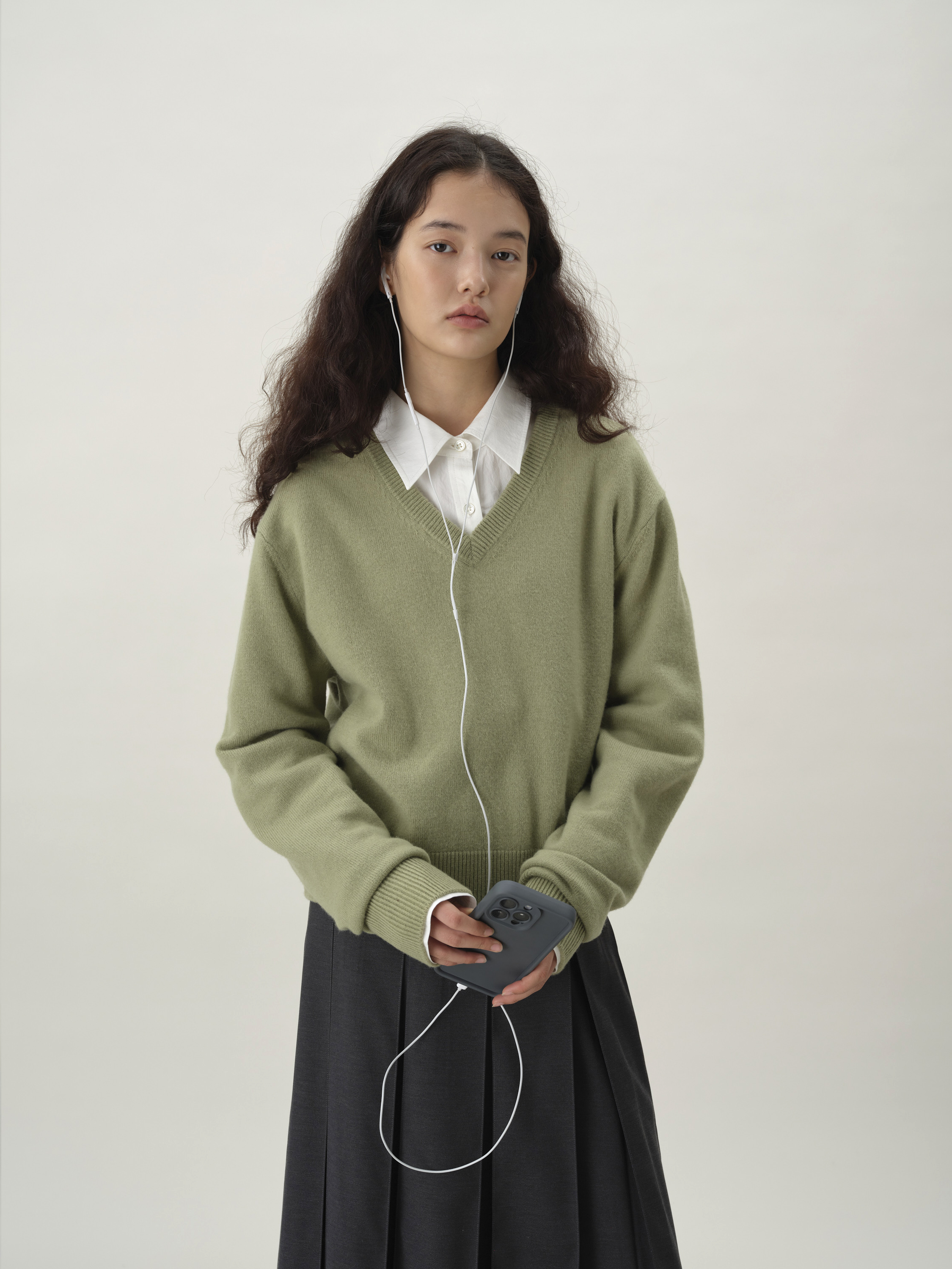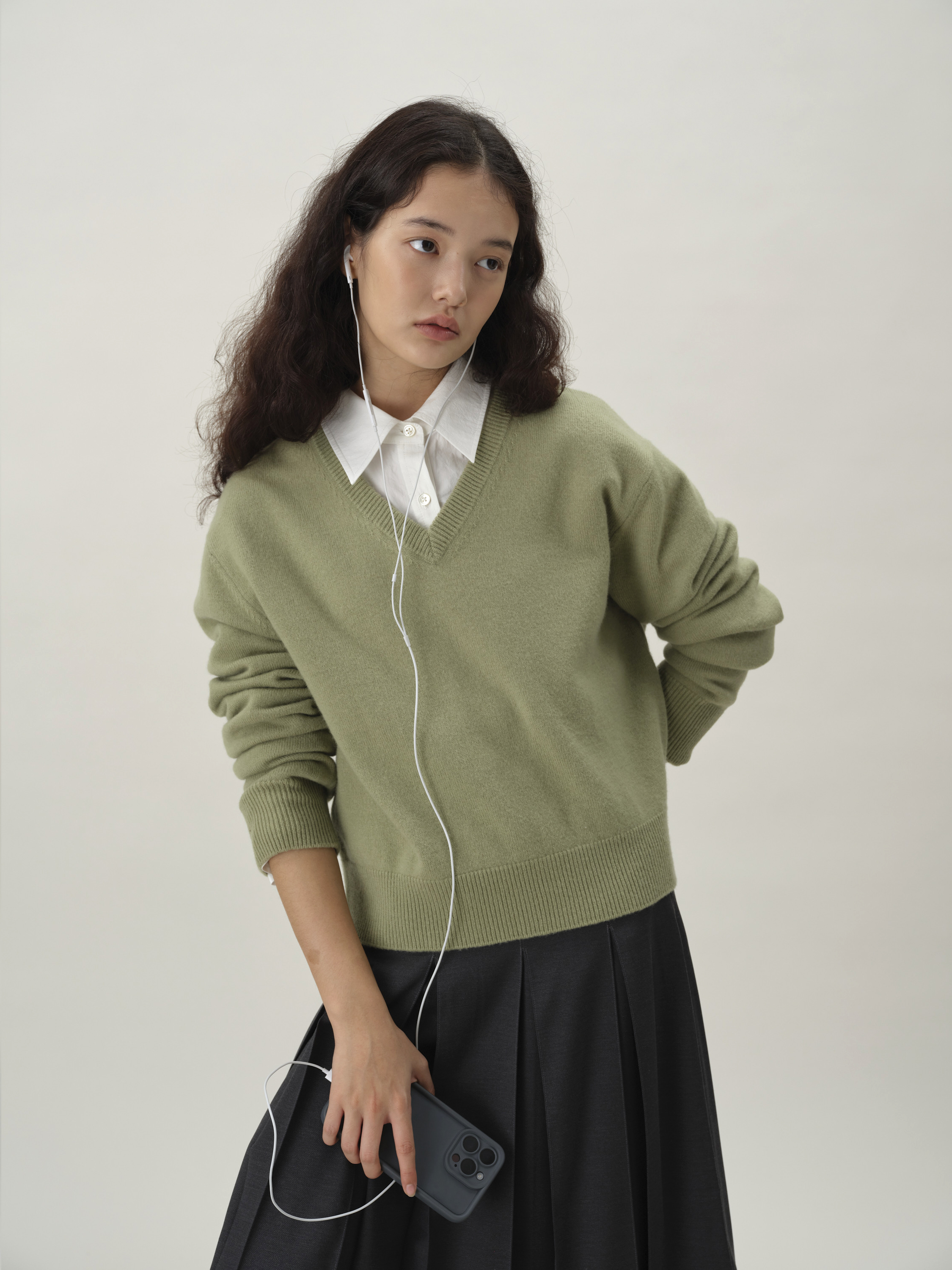 shyshystill/shy202408026/三色慵懒经典高品质v领全羊毛针织衫套头毛衣